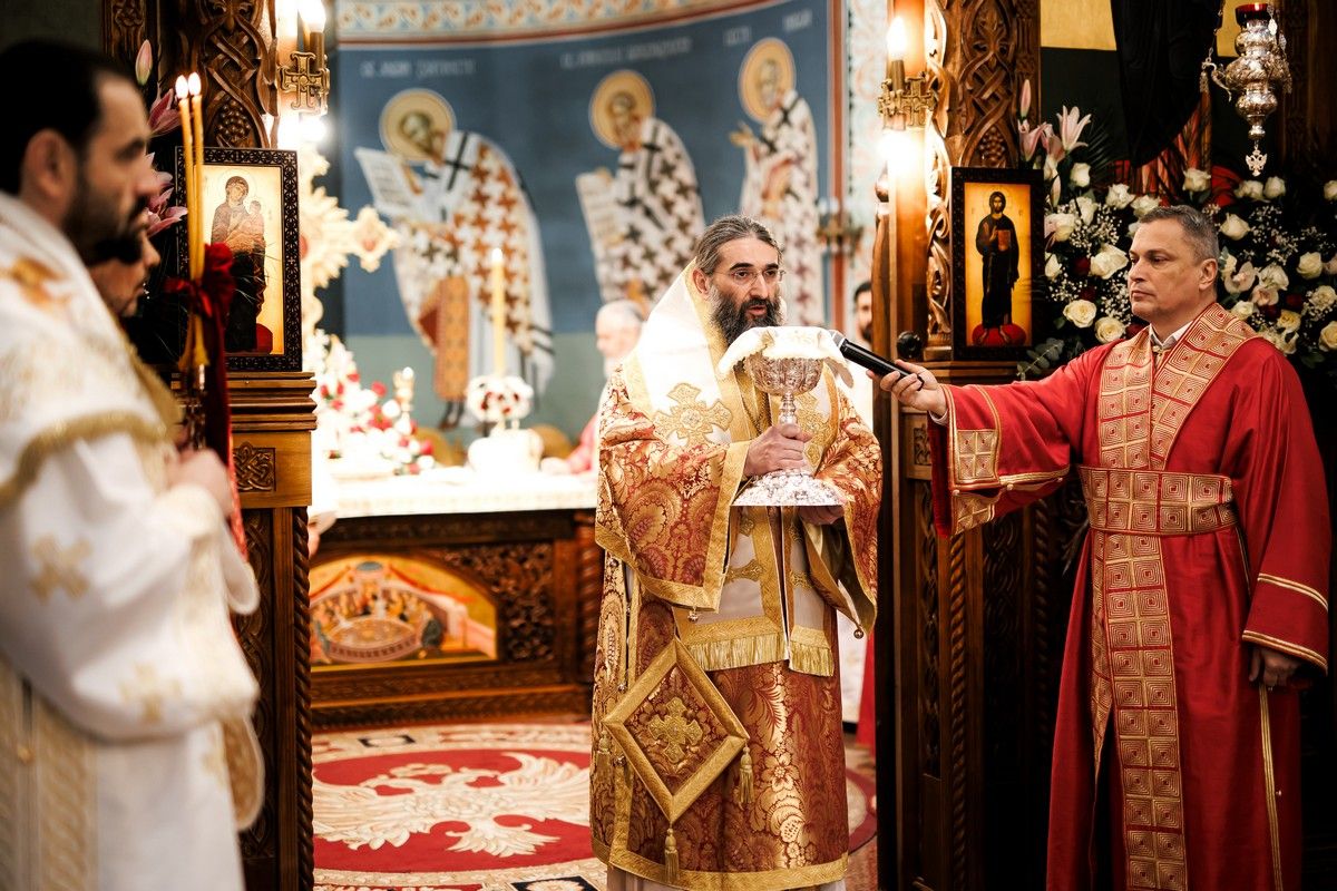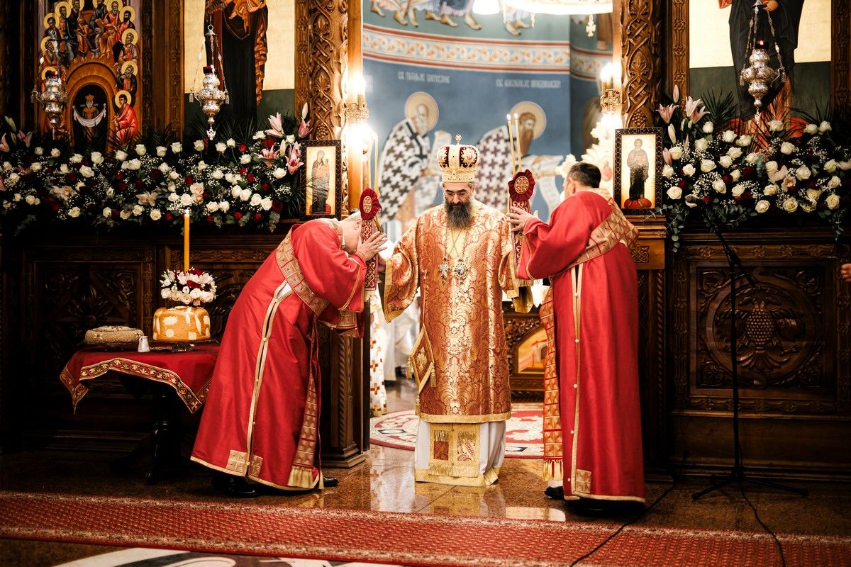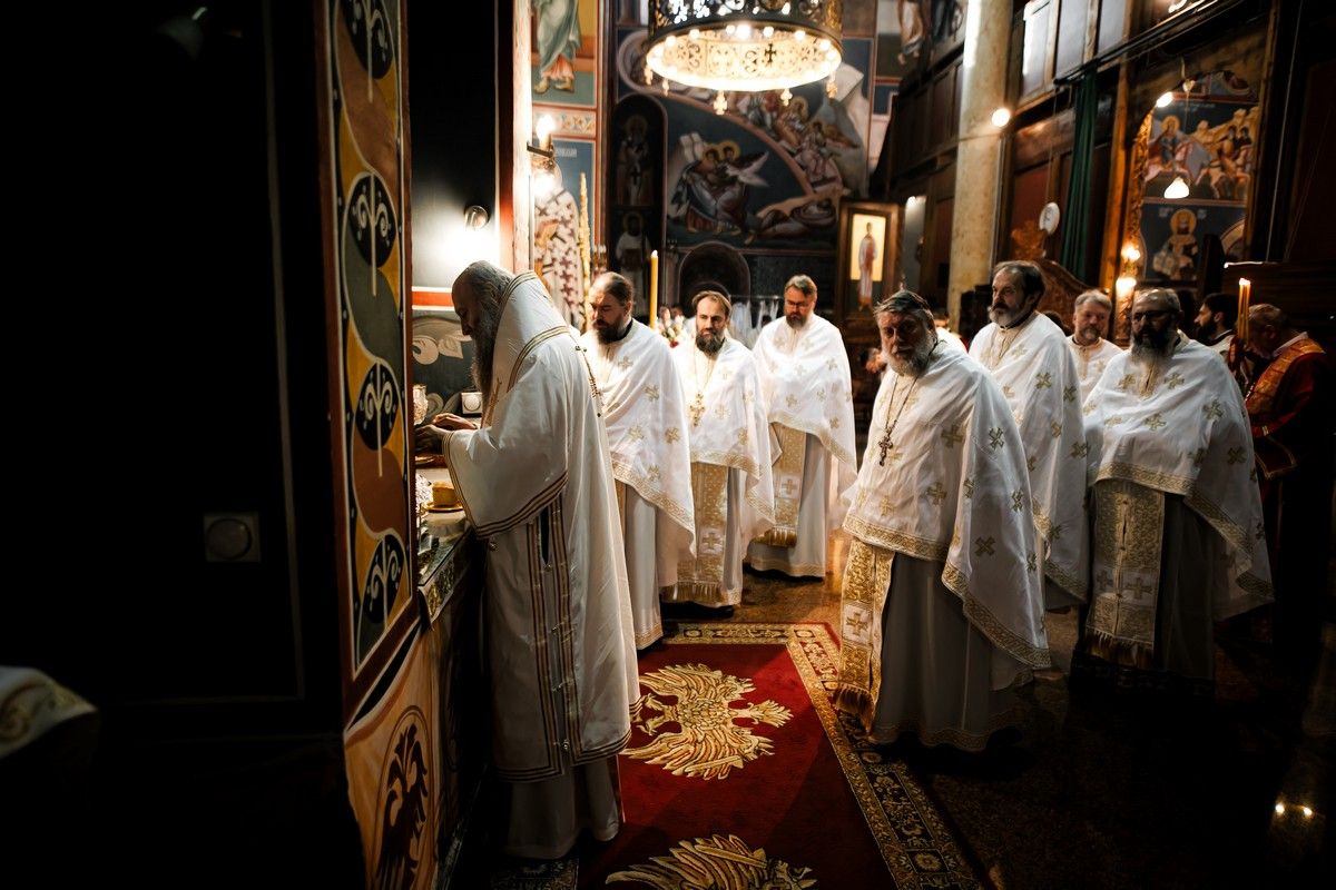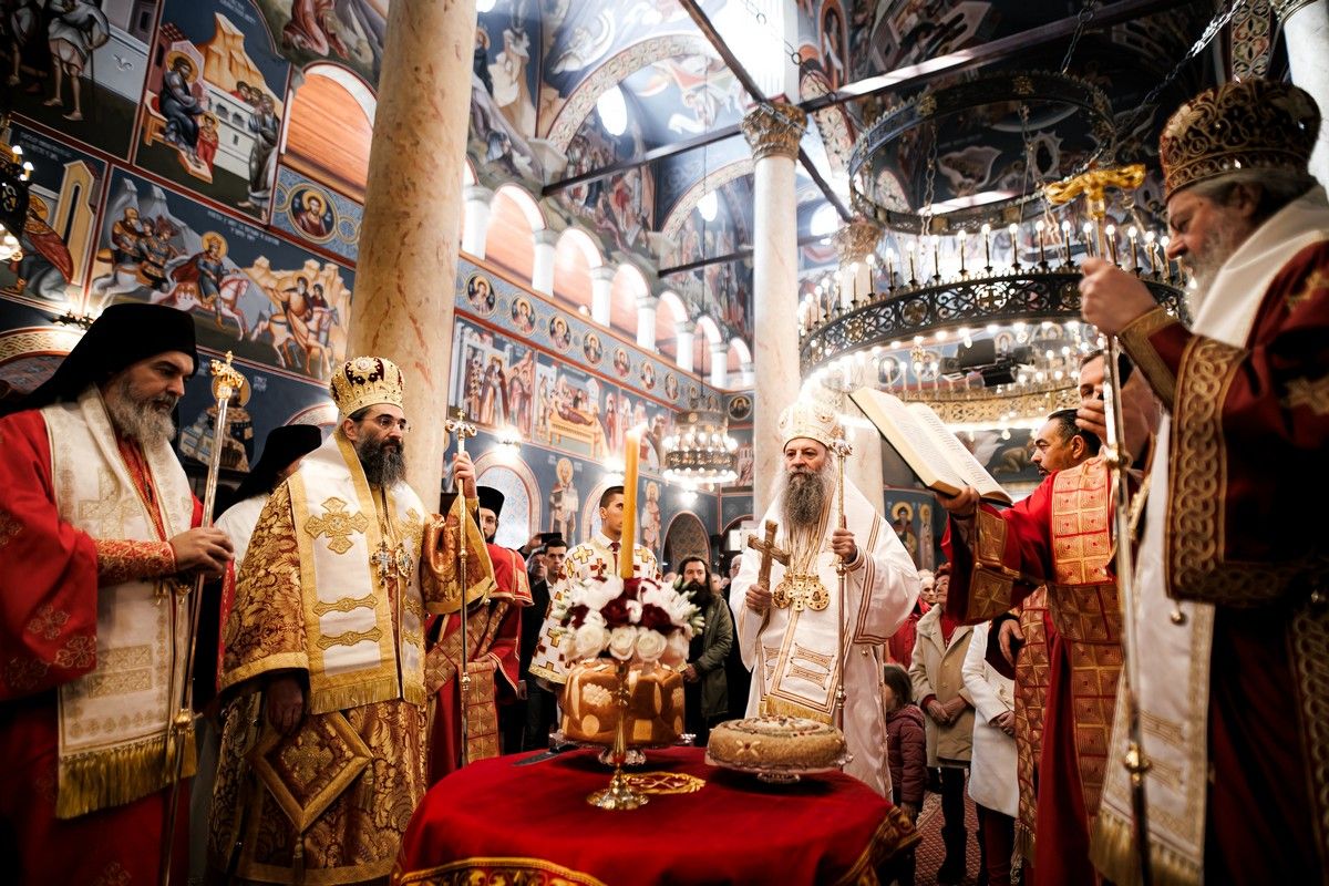 После заамвоне молитве, у славу и част Светог оца Николаја, Његова Светост г. Порфирије је осветио славске дарове и преломио славски колач заједно са Високопреосвећеним г. Арсенијем, домаћином славе.
