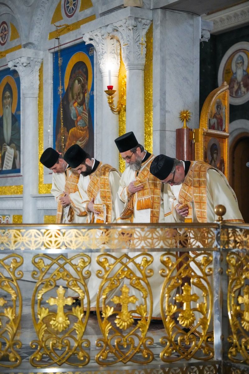 Његовој Светости Патријарху српском г. Порфирију су саслуживали: преосвећена господа викарни епископи новобрдски Иларион и топлички Петар; протојереји-ставрофори Радивоје Панић и Димитрије Касапис; протојереј Ђорђе Стојисављевић, шеф Кабинета Патријарха српског; протојереји Драган Шовљански, Иван Штрбачки, Предраг Протић и Бранислав Кличковић; јереји Мирослав Васић и Немања Калем; и протођакони Драган Радић и Радомир Врућинић.