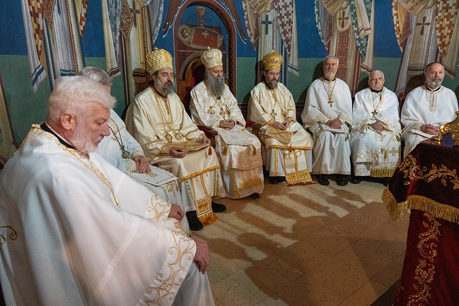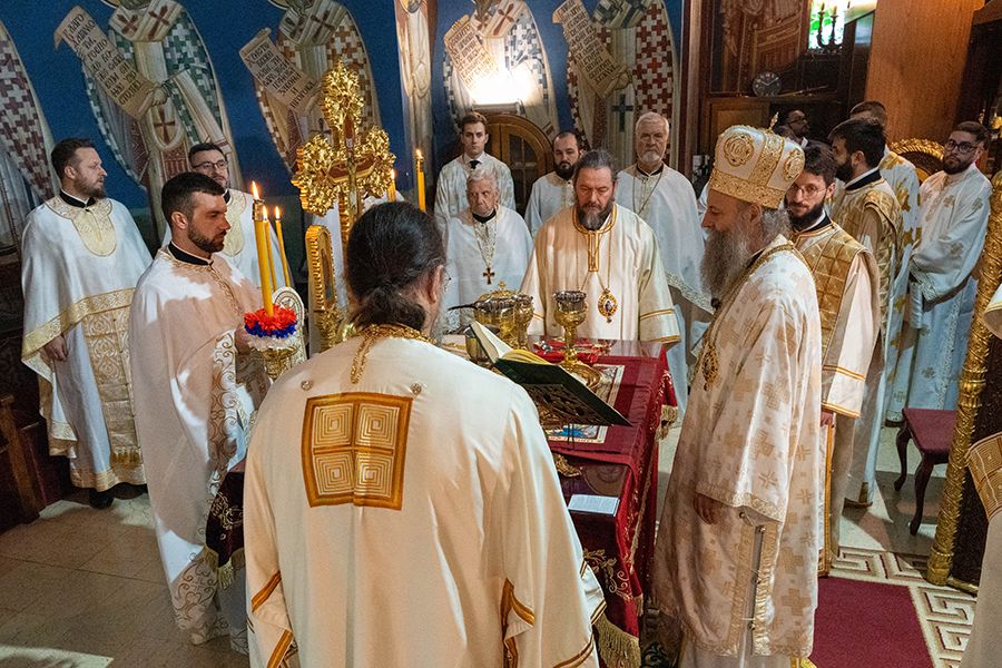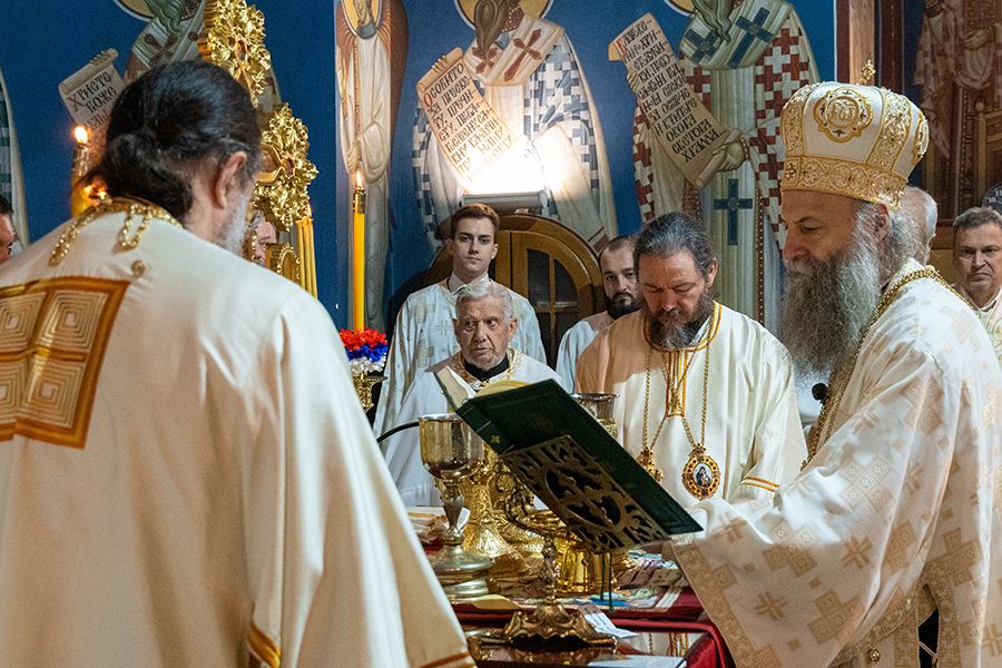 Његовој Светости Патријарху српском г. Порфирију су саслуживали: преосвећена господа епископи моравички Тихон и липљански Доситеј; протојереји-ставрофори Бранко Топаловић, Милојко Топаловић, Радич Радичевић и Божо Бакајлић; протојереј Војислав Костић; протонамесници Милан Марић и Игор Лукић; јереји Петар Бакајлић, Никола Мићаковић и Мирослав Митровић; новорукоположени јереј Милојко Топаловић; протођакони Драган Радић и Радомир Врућинић; ђакони Василије Перић и Дражен Крагић.