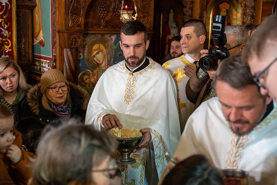 Многобројни верни народ, упркос снежној вејавици, сабрао се јутрос, 4. јануара 2025. године, У Недељу Отаца, која се у српском народу слави и као Оци, у цркви Светог Јована Владимира у београдском насељу Медаковић, где је Његова Светост Патријарх српски г. Порфирије началствовао светом Литургијом. Том приликом, Светејши Патријарх је рукоположио ђакона Милојка Топаловића у чин свештеника.