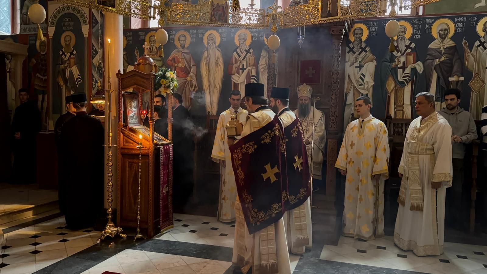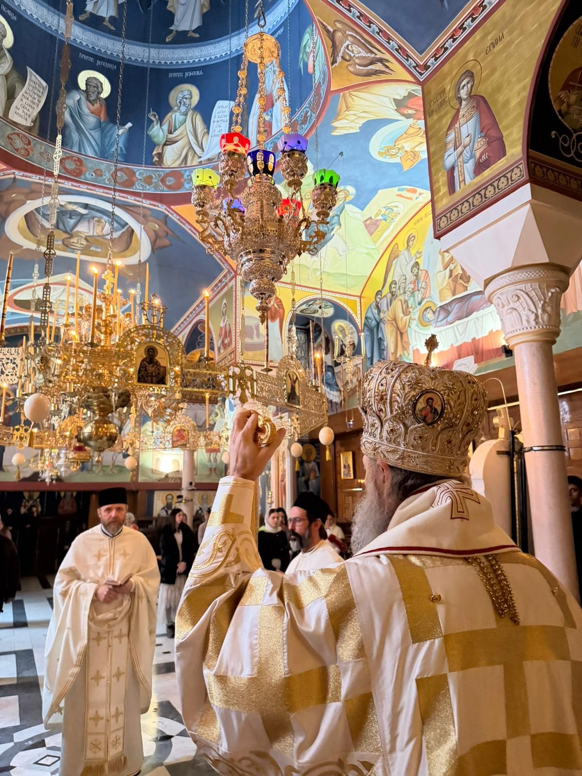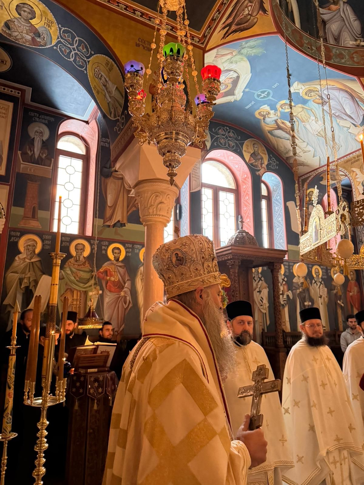 – Радујемо се јер је Бадњи дан и данас певамо оно што изражава нашу веру и утврђује наш однос према Богу живоме, Његовој творевини, ближњима и према самима себи. Певамо песму у којој се питамо шта је то што можемо да принесемо Господу? Ево, небо приноси звезде, анђели песму и славословље, земља пећину, пустиња јасле, пастири дивљење, а ми, ми људи, читав људски род, приносимо Пресвету Дјеву Пречисту, Преблагословену, Славнију од херувима и Узвишенију од свих бића. Приносимо Њену чистоту, приносимо Њену веру, наду и љубав. И то што смо ми као људски род благодаћу и љубављу Божјом принели Господу нашем јесте место и простор у који се Господ настанио не искључиво и само као Бог, него кроз утробу, зачећем од Духа Светога, постао је један од нас. У утроби Пресвете Дјеве, у ономе што смо ми могли да принесемо Господу, Бог се сјединио са нама нераскидиво и несливено, једампут и заувек и не постоји ништа што нас од тог јединства, од тог сједињења, од те заједнице са Богом може раздвојити.