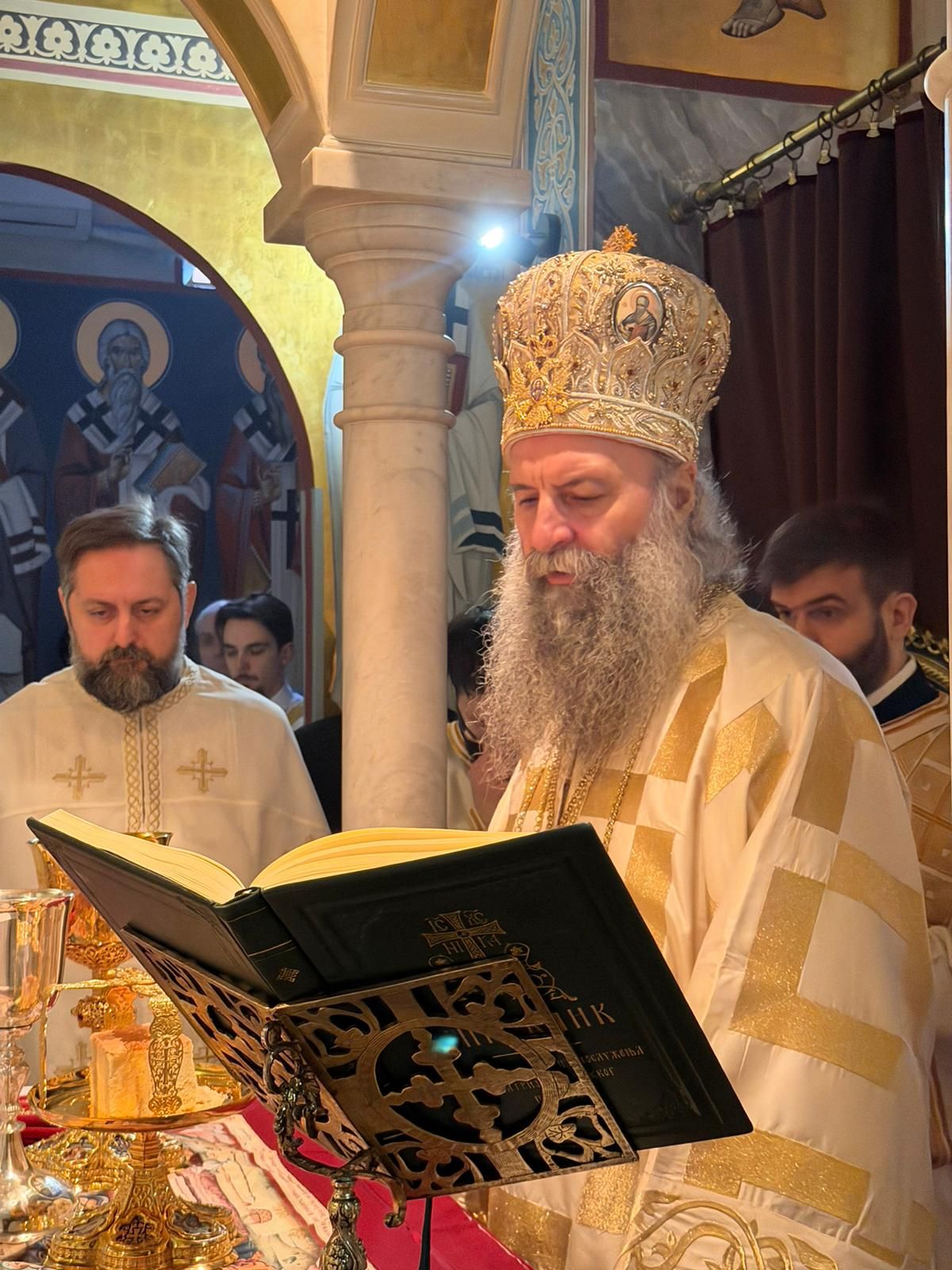 Његова Светост Патријарх српски г. Порфирије је служио 6. јануара 2025. године, на Бадњи дан, свету Литургију у параклису Светог Јована Богослова на Православном богословском факултету у Београду.