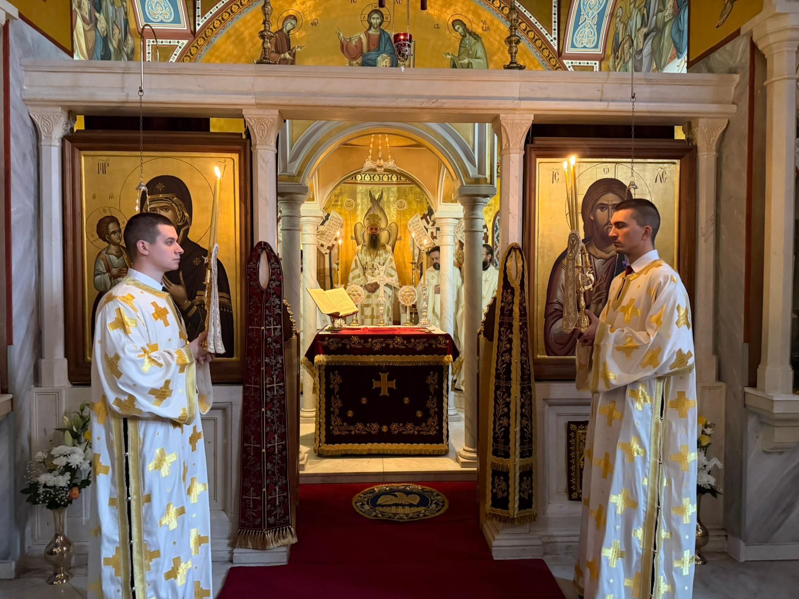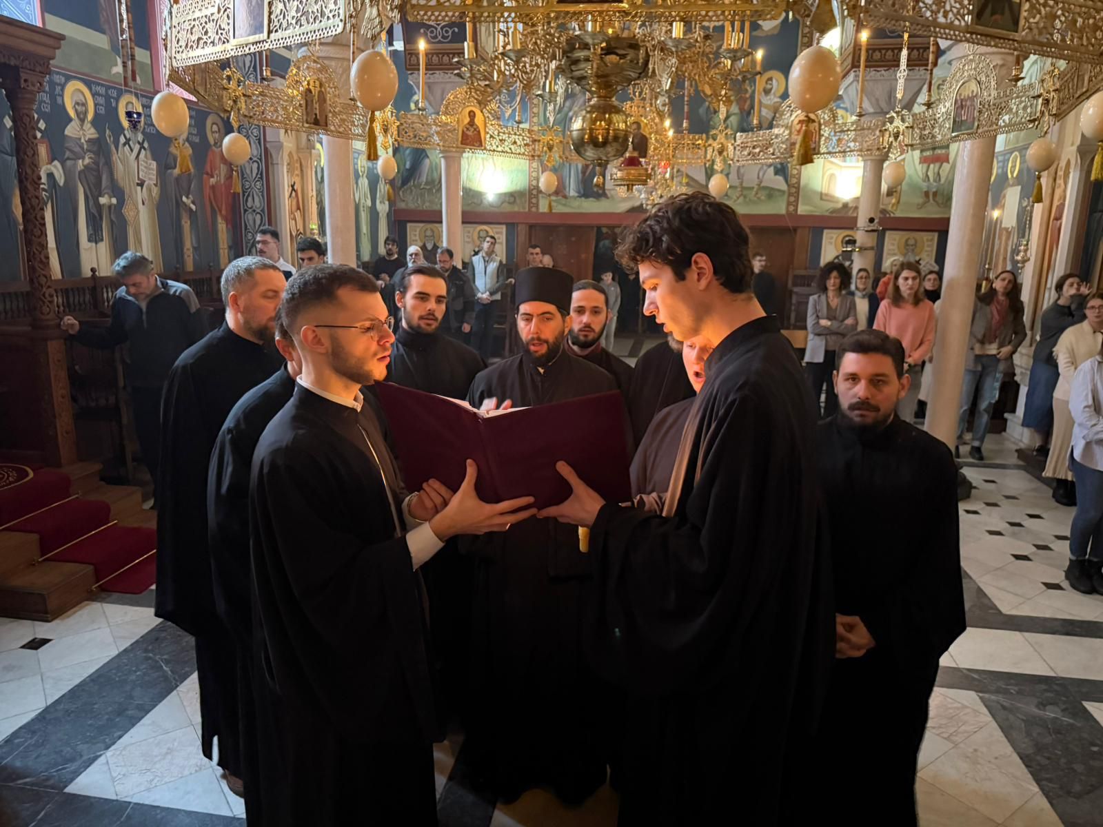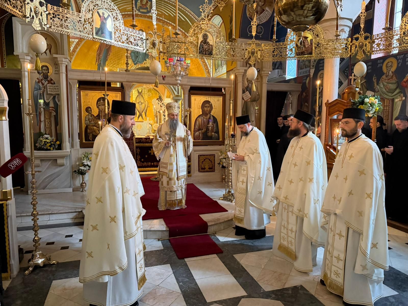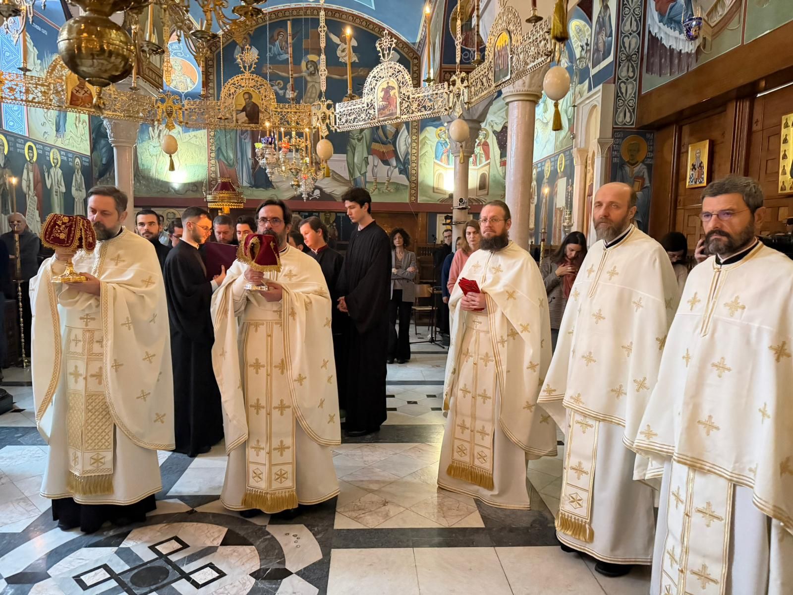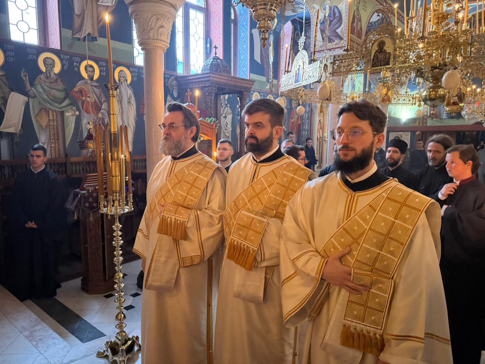 Његовој Светости Патријарху српском г. Порфирију саслуживали су: јереј проф. др Србољуб Убипариповић, декан Православног богословског факултета; јереј проф. др Владан Таталовић; јеромонах др Андроник (Дунаев); јереји Бориша Шањић и Драган Поповић; протођакони проф. др Драган Радић и Радомир Врућинић; као и ђакон Василије Перић.