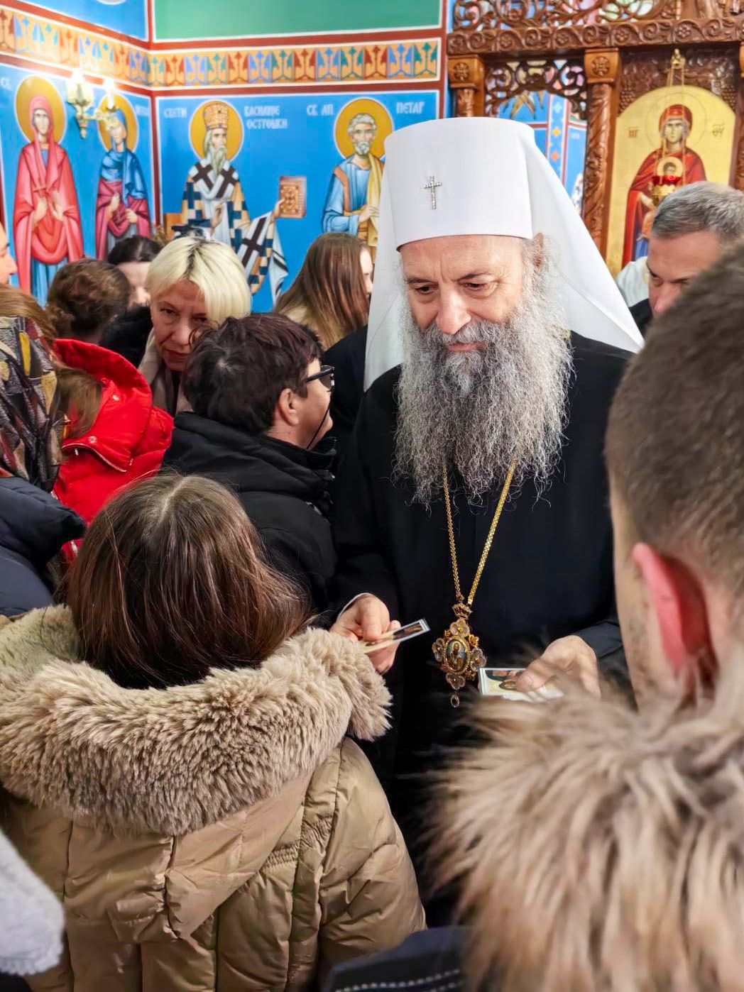 – Ја се истински радујем што се окупљате у овом храму Божјем. То је важно. Ми знамо да смо хришћани, да смо православни, али то није довољно. Није довољно да смо се само крстили и да имамо утисак да смо тиме православни хришћани. Важно је и неопходно да долазимо у храм Божји, да учествујемо у светој Литургији, да се причешћујемо, да постимо, да се молимо Богу, да се трудимо да све оно што нам Господ износи као правила живота унесемо у своја срца, у своју свакодневницу. То показује да је вера оно на чему се темељи наш живот. Без вере, без вере у Бога, тешко да човек, ма колико био и ма што имао, може постићи истински и прави унутрашњи мир и унутрашњу радост – поручио је Патријарх Порфирије.