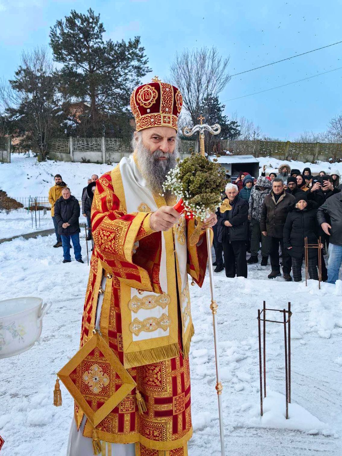 – Господ је дао да први пут дођем да служим овде, у вашем месту. Иако је зима оковала овај крај и има много снега, ови предели не губе на својој лепоти ни у оваквим условима. Даће Бог да се виђамо опет и опет, и у пролеће, и у лето, и у јесен, када ћемо имати могућност да видимо сву шароликост лепоте овог краја и да у њој и кроз њу славимо име Божје – поручио је Његова Светост Патријарх српски г. Порфирије 11. јануара 2026. године богочежњивом народу сабраном у храму Светог архангела Гаврила у Камендолу код Гроцке.