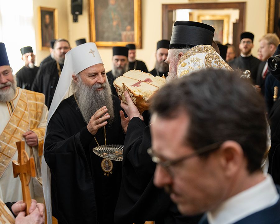 Поводом Сабора Светог Јована Крститеља - Јовандана, своје крсне славе, Патријарх г. Порфирије је угостио високе званице у Патријаршијском двору у Београду, где је свечани чин освећења славских дарова обавио Митрополит црногорско-приморски г. Јоаникије, који је том приликом Патријарху српском упутио речи срдачне честитке: