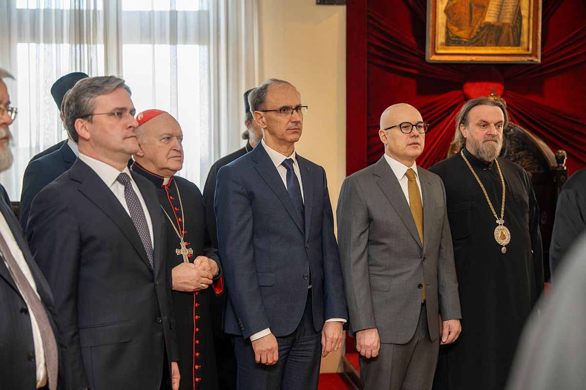 Прослави крсне славе Његове Светости Патријарха српског г. Порфирија, поред отачаствених архијереја и принца наследника Филипа и принцезе Данице Карађорђевић, присуствовали су и: др Ђуро Мацут, председник Владе Републике Србије; г. Милош Вучевић, изасланик и саветник Председника Републике Србије; г. Ивица Дачић, потпредседник Владе и министар унутрашњих послова; г. Никола Селаковић, министар културе; гђа Милица Ђурђевић Стаменковски, министар за рад, за запошљавање, борачка и социјална питања; др Владимир Рогановић, директор Управе за сарадњу са црквама и верским заједницама; г. Петар Петковић, директор Канцеларије за Косово и Метохију; Надбискуп београдски Ладислав кардинал Немет; г. Страхиња Секулић, директор Агенције за реституцију; г. Душан Бајатовић, директор Ј.П. Србијагас; г. Александар Боцан Харченко, амбасадор Руске Федерације; др Радисав Шћепановић, председник Хиландарског лекарског друштва; архимандрит Данило, директор Патријаршијске управне канцеларије; архимандрит Серафим, игуман манастира Рајиновца; протојереји-ставрофори Владимир Вукашиновић, Бранко Топаловић и Драган Станишић; протојереј Ђорђе Стојисављевић, шеф Кабинета Патријарха српског; протопрезвитер Борис Савић; протојереј Панајотис Карастасиос; и многобројни представници културног и јавног живота престонице.
