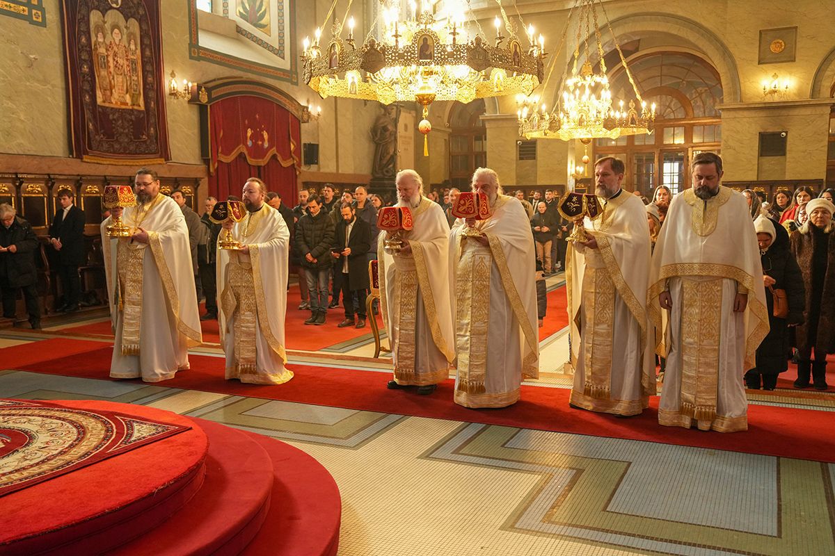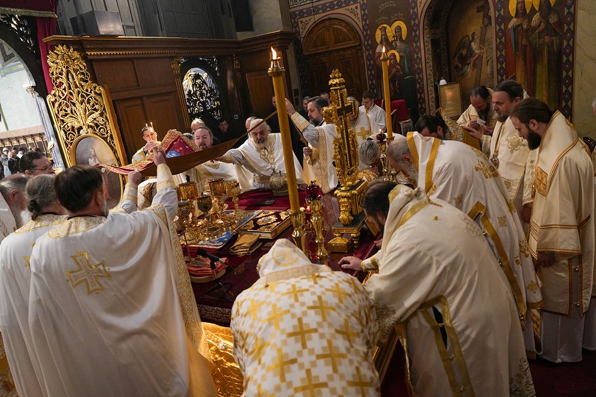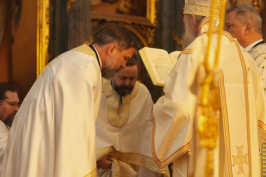 Торжественом Литургијом је началствовао предстојатељ Српске Православне Цркве уз саслужење: високопреосвећене господе митрополита црногорско-приморског Јоаникија, врањског Пахомија, шумадијског Јована, милешевског Атанасија, нишког Арсенија, далматинског Никодима и будимљанско-никшићког Методија; и преосвећене господе епископа буеносајреског и јужно-централноамеричког Кирила, осечкопољског и барањског Херувима, шабачког Јеротеја, лондонског и великобританско-ирског Нектарија, ремезијанског Стефана, хвостанског Алексеја, новобрдског Илариона, топличког Петра и јенопољског Никона; уз молитвено учешће Високопресвећеног Митрополита браничевског г. Игнатија и преосвећене господе епископа липљанског Доситеја и моравичког Тихона.