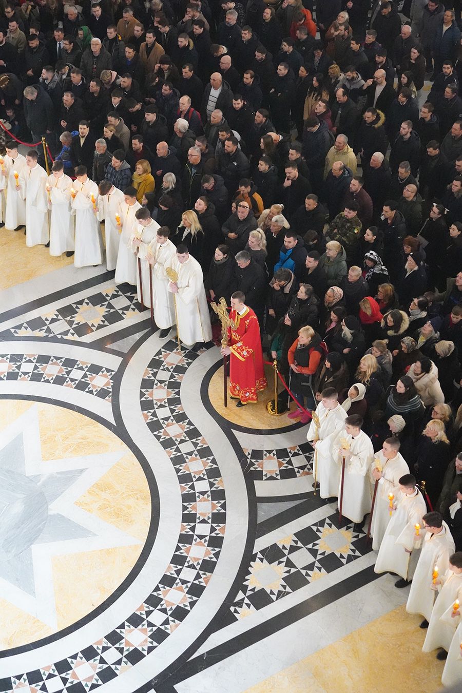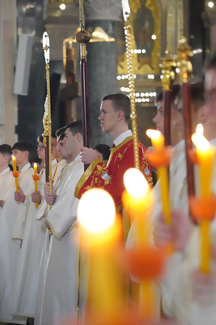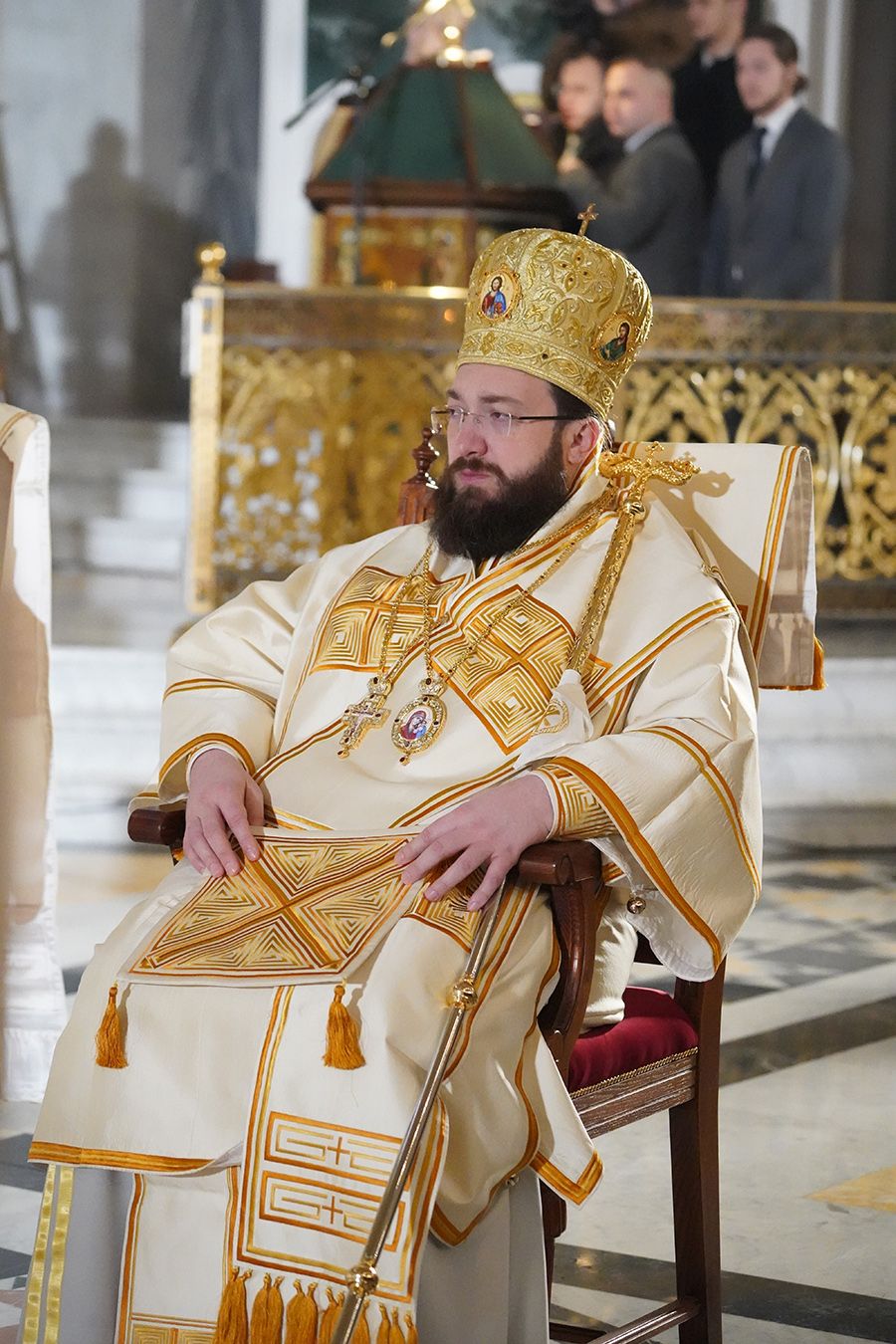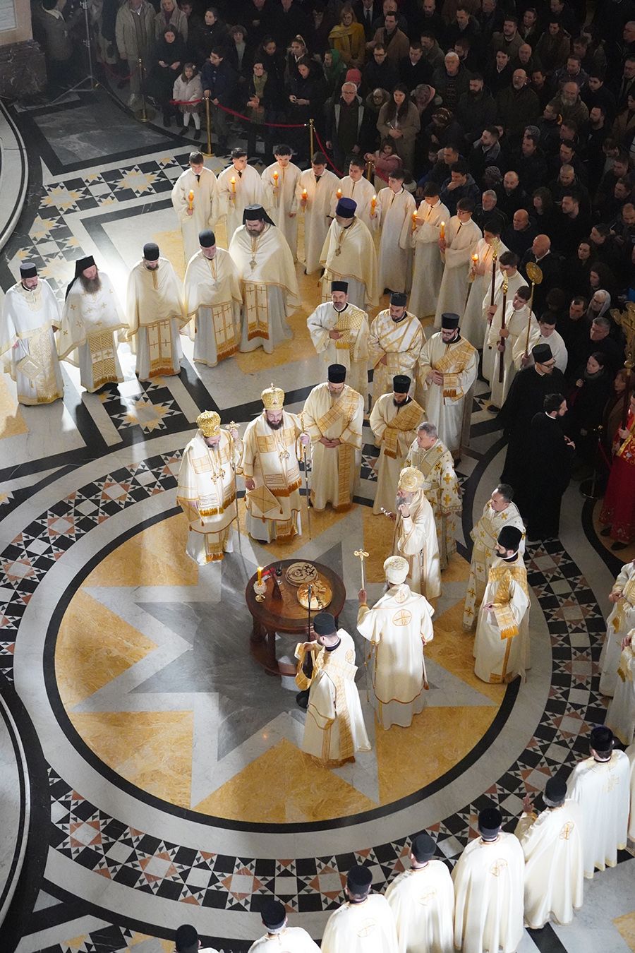 Његовој Светости Патријарху су саслуживали, поред свештеника Петра и ђакона Томе Купрјановића из Пољске Православне Цркве и свештеника и ђакона из Македонске Православне Цркве – Охридске Архиепископије, и: преосвећена господа епископи лондонски и британско-ирски Нектарије, викарни липљански Доситеј и викарни новобрдски Иларион; архимандрит Нектарије, главни секретар Светог Архијерејског Синода; архимандрит Данило, директор Патријаршијске управне канцеларије; протојереји-ставрофори Владимир Вукашиновић, Драган Станишић, Бранко Топаловић и Радивоје Панић; протојереј Ђорђе Стојисављевић, шеф Кабинета Патријарха српског; протојереј Србољуб Убипариповић, декан Православног богословског факултета у Београду; протојереј Борис Савић; протонамесник Богољуб Остојић; протојереј-ставрофор Виталије Тарасјев, настојатељ Подворја Московске Патријаршије; протојереји-ставрофори Панајотис Каратасиос и Димитрије Касапис; протојереји Ненад Јовановић, Драган Шовљански, Иван Штрбачки, Горан Мишановић и Бранислав Кличковић; протонамесник Бориша Шањић; јереји Владан Таталовић, Далибор Стојадиновић, Бранислав Кеџић, Немања Калем и Мирослав Васић; протођакони Драган Радић, Радомир Врућинић и Младен Ковачевић; ђакони Верољуб Сандо, Василије Перић и Никола Рашковић.
