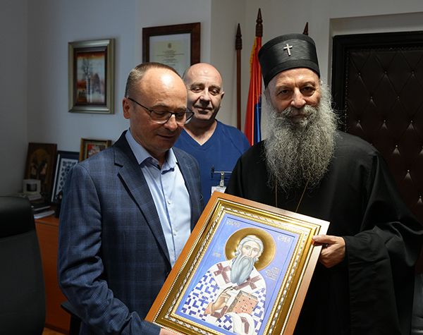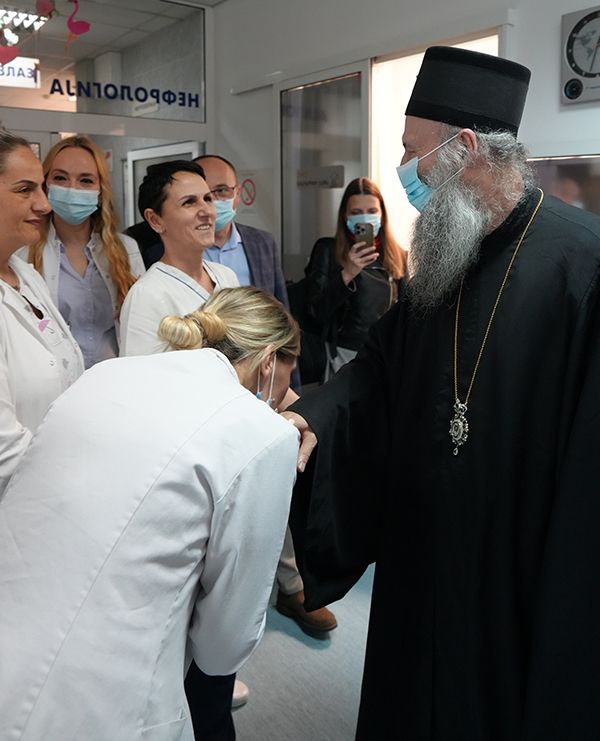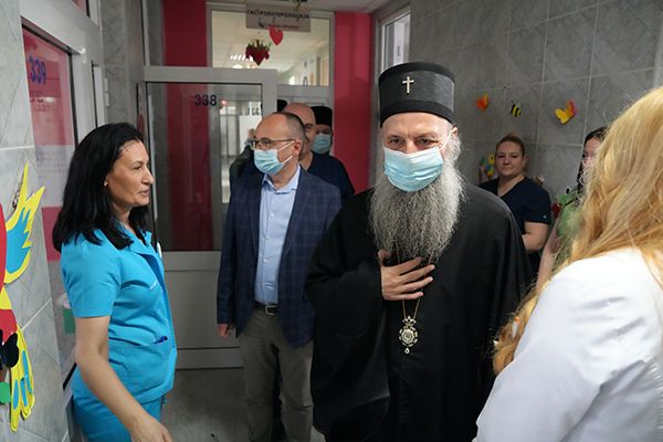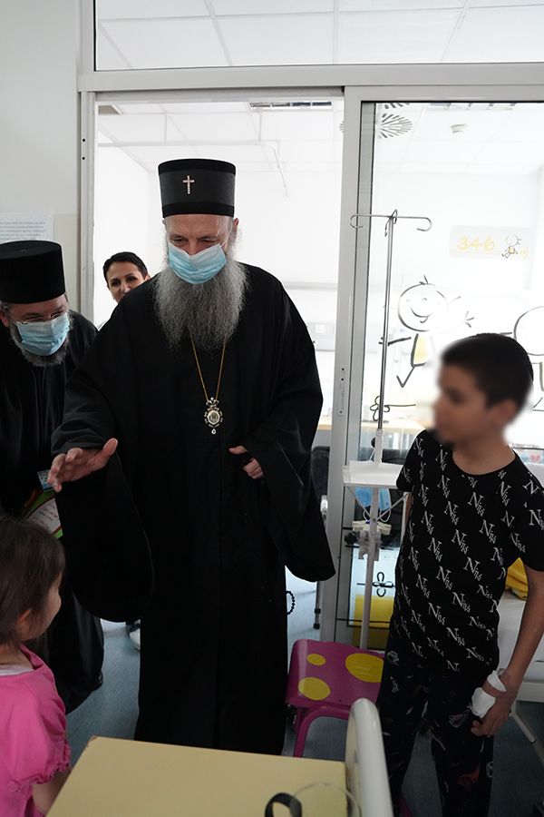 Његова Светост Патријарх српски г. Порфирије, заједно са протојерејом Ђорђем Стојисављевићем, шефом Кабинета Патријарха српског, посетио је данас Универзитетску дечју клинику у Београду.