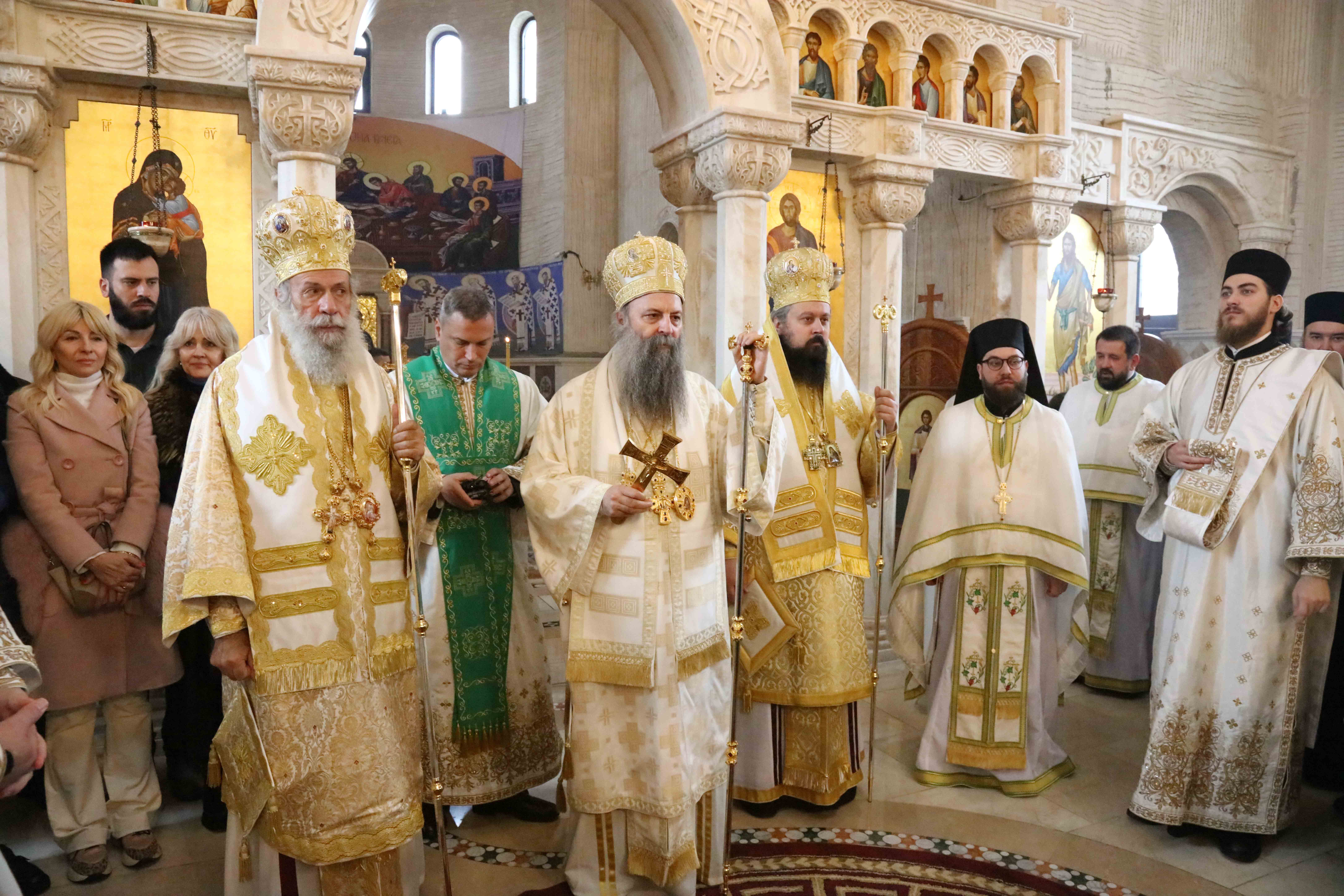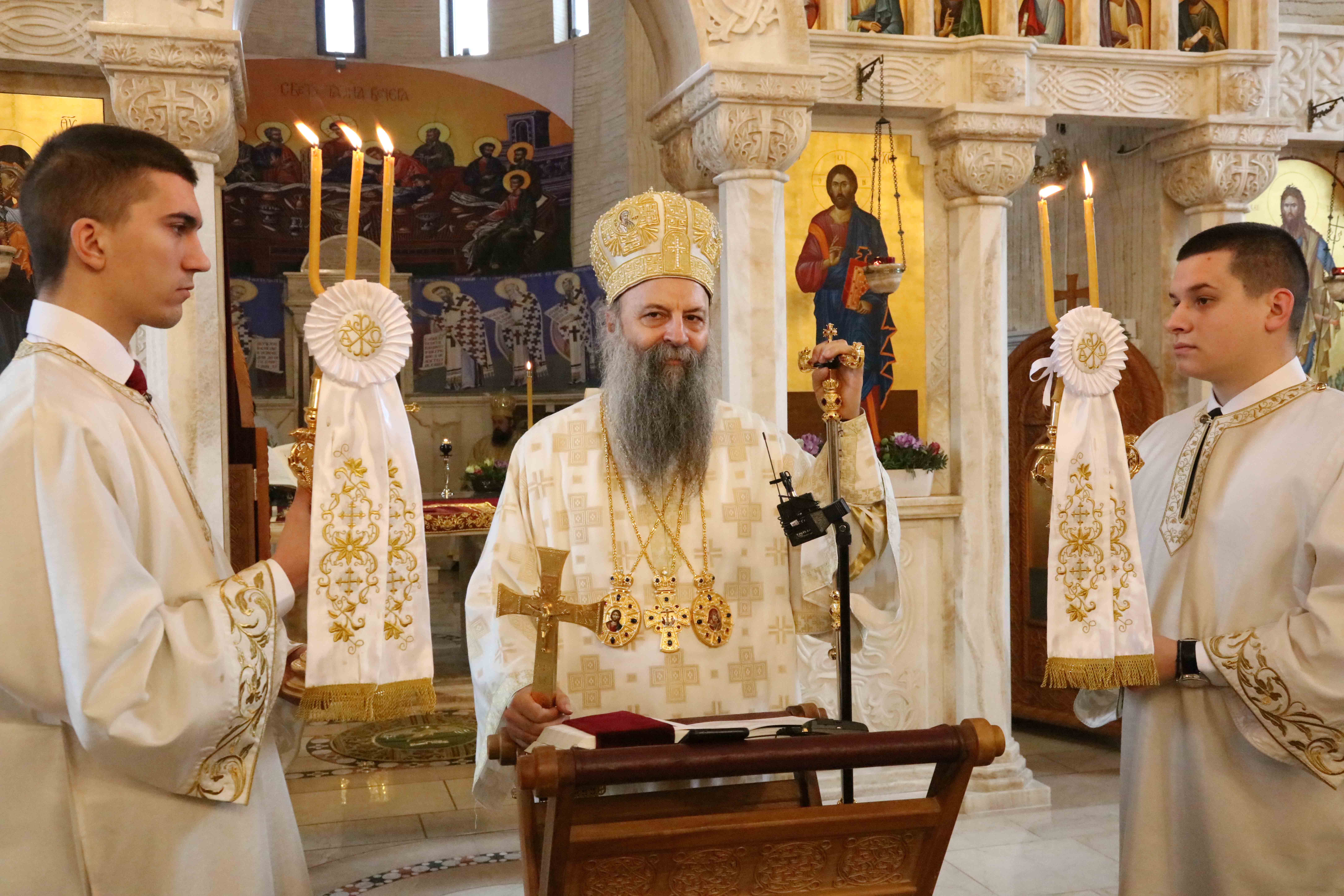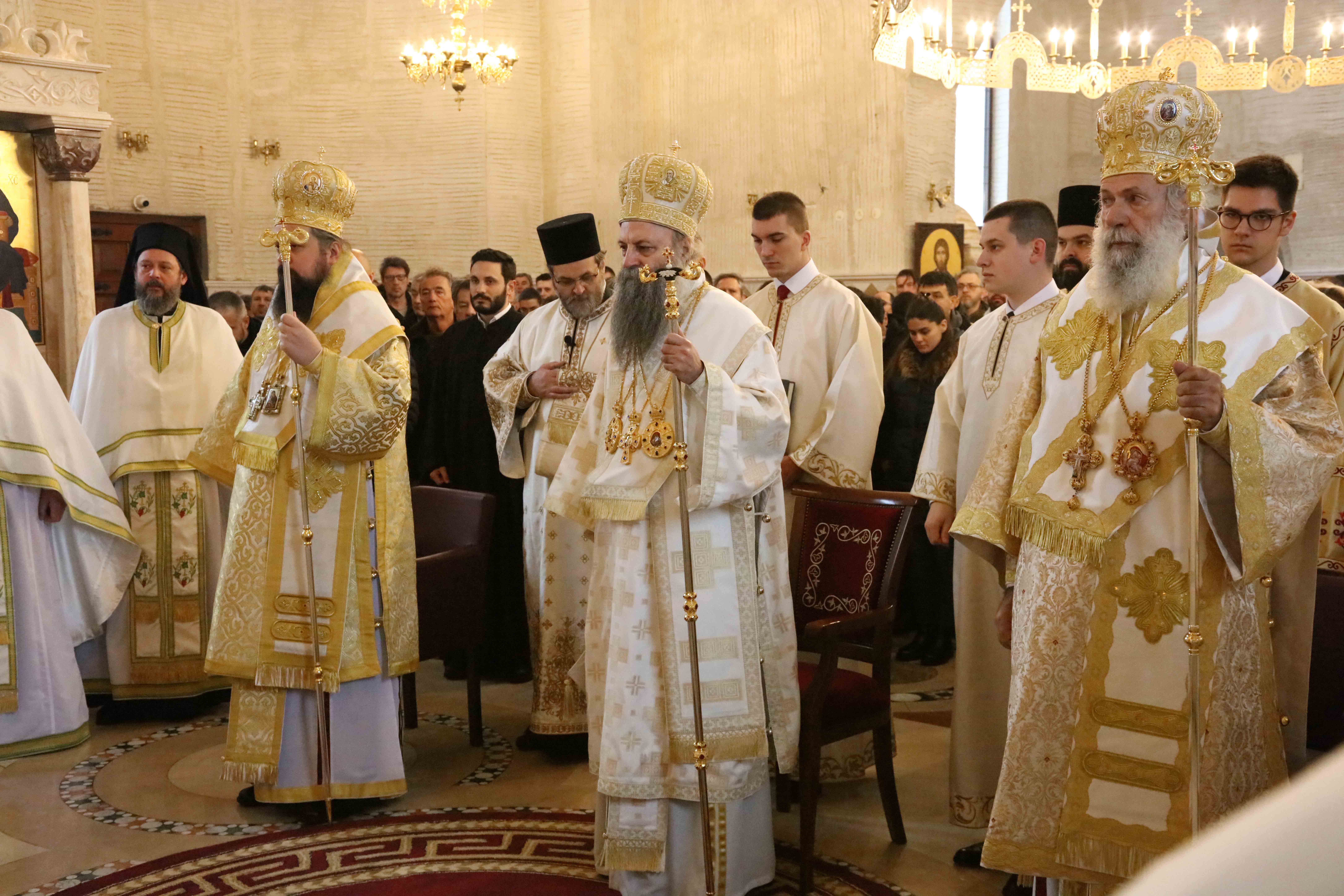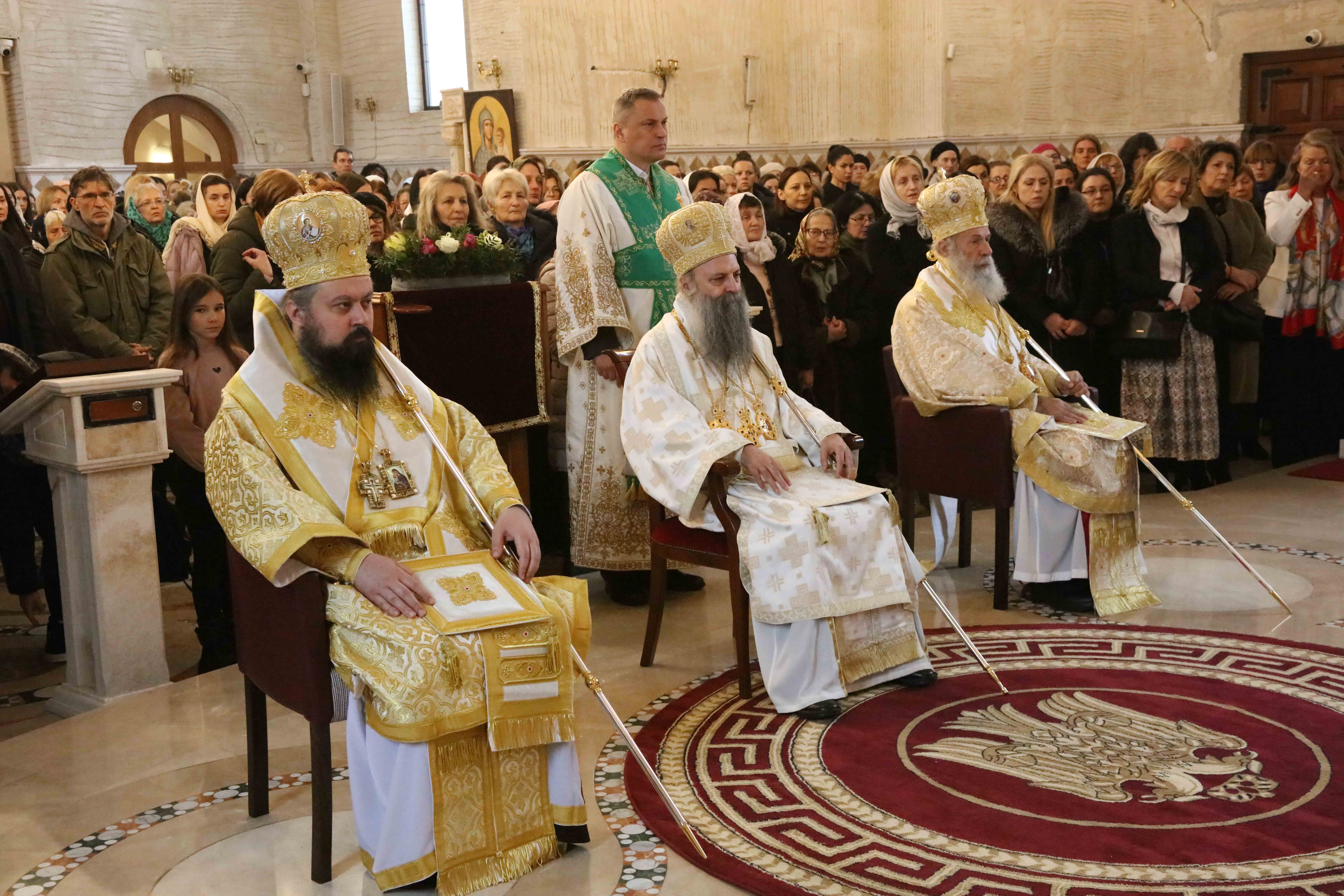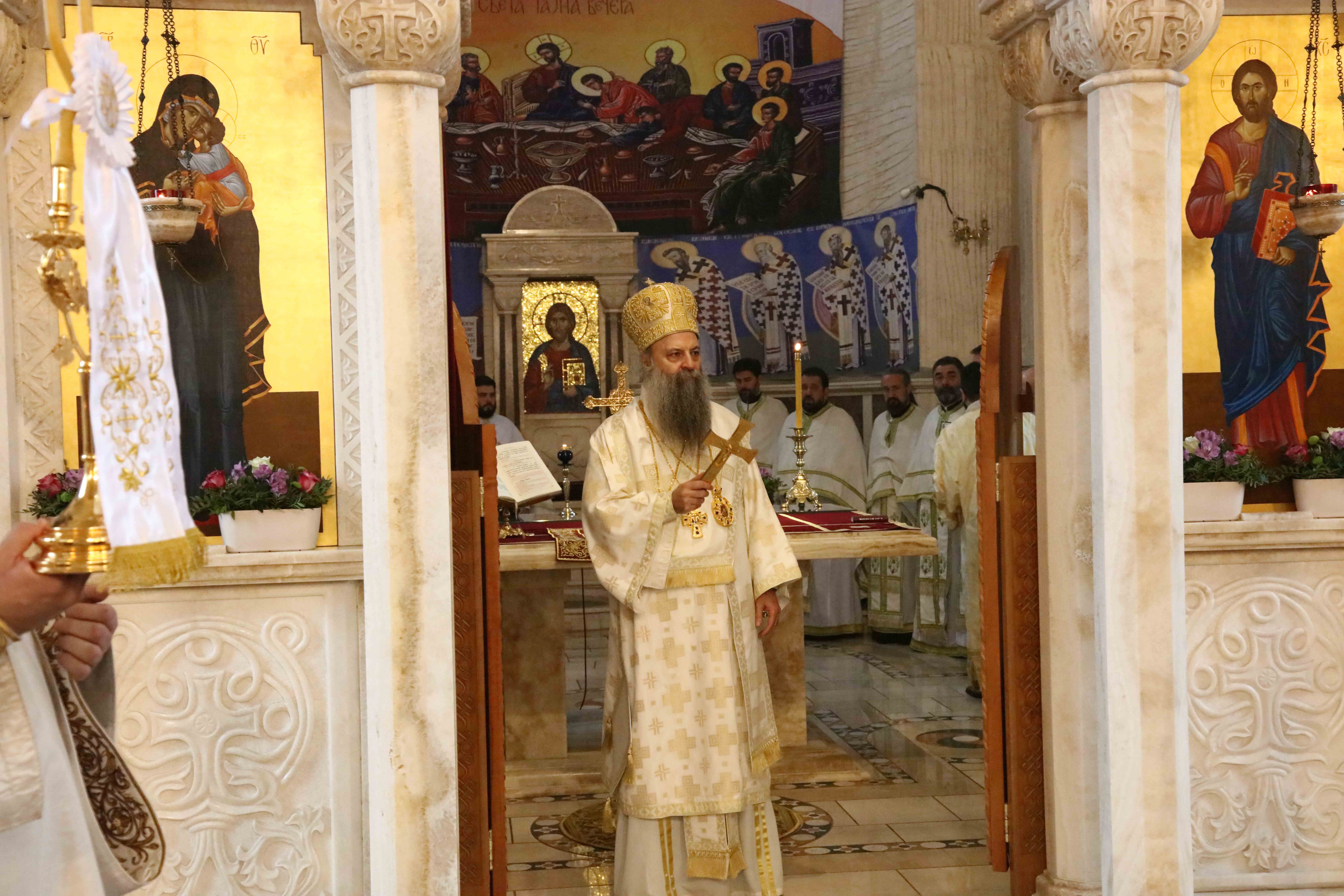 Саслуживали су преосвећена господа епископи марчански Сава и хвостански Алексеј, главни секретар Светог Архијерејског Синода архимандрит Нектарије, директор Патријаршијске управне канцеларије архимандрит Данило, архимандрит Василије (Костић), архимандрит Прокопије из Антиохијске Патријаршије и многобројно свештенство и ђаконство у молитвеном присуству верног народа. Патријарх Порфирије је беседио на тему прочитаног јеванђељског зачала: