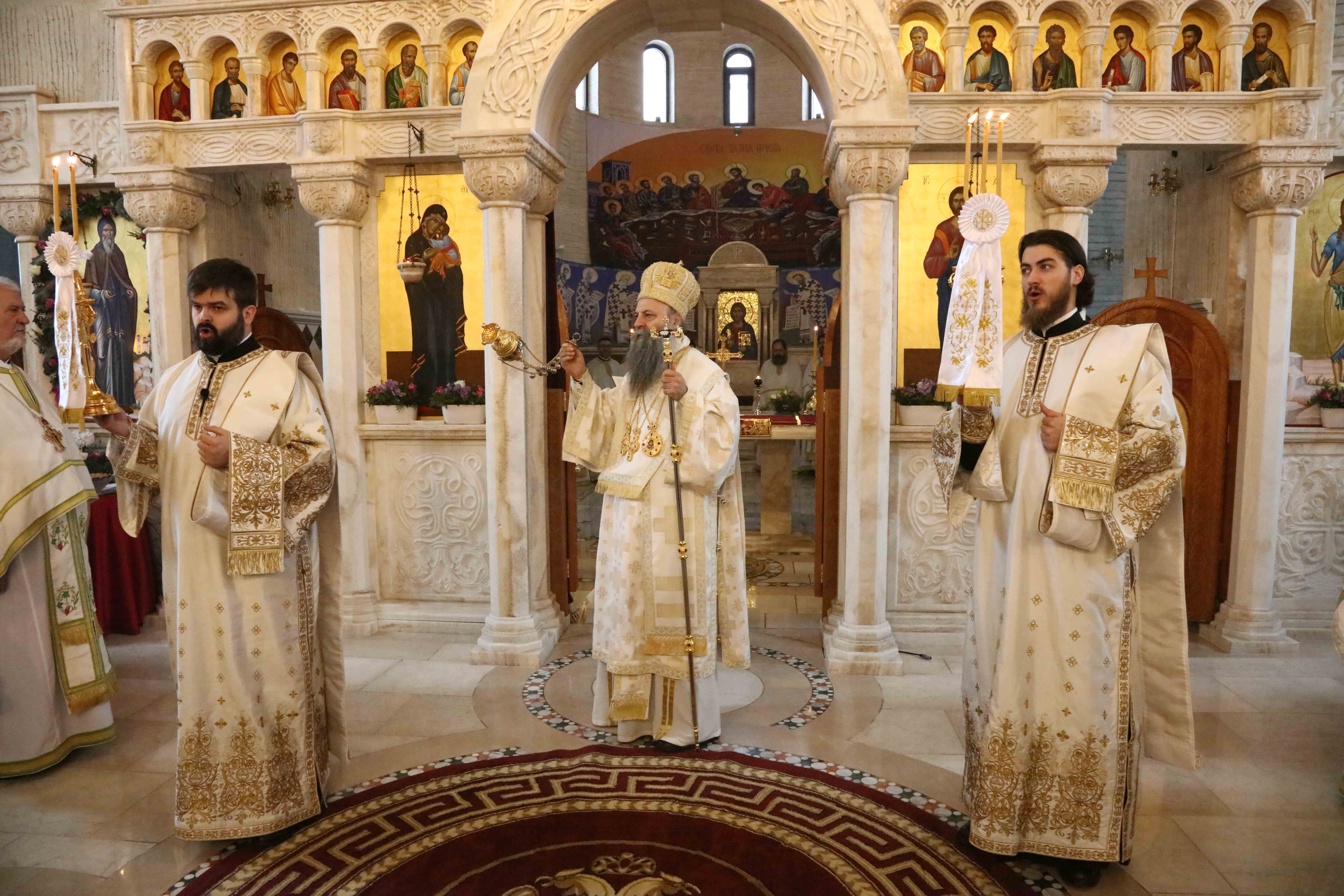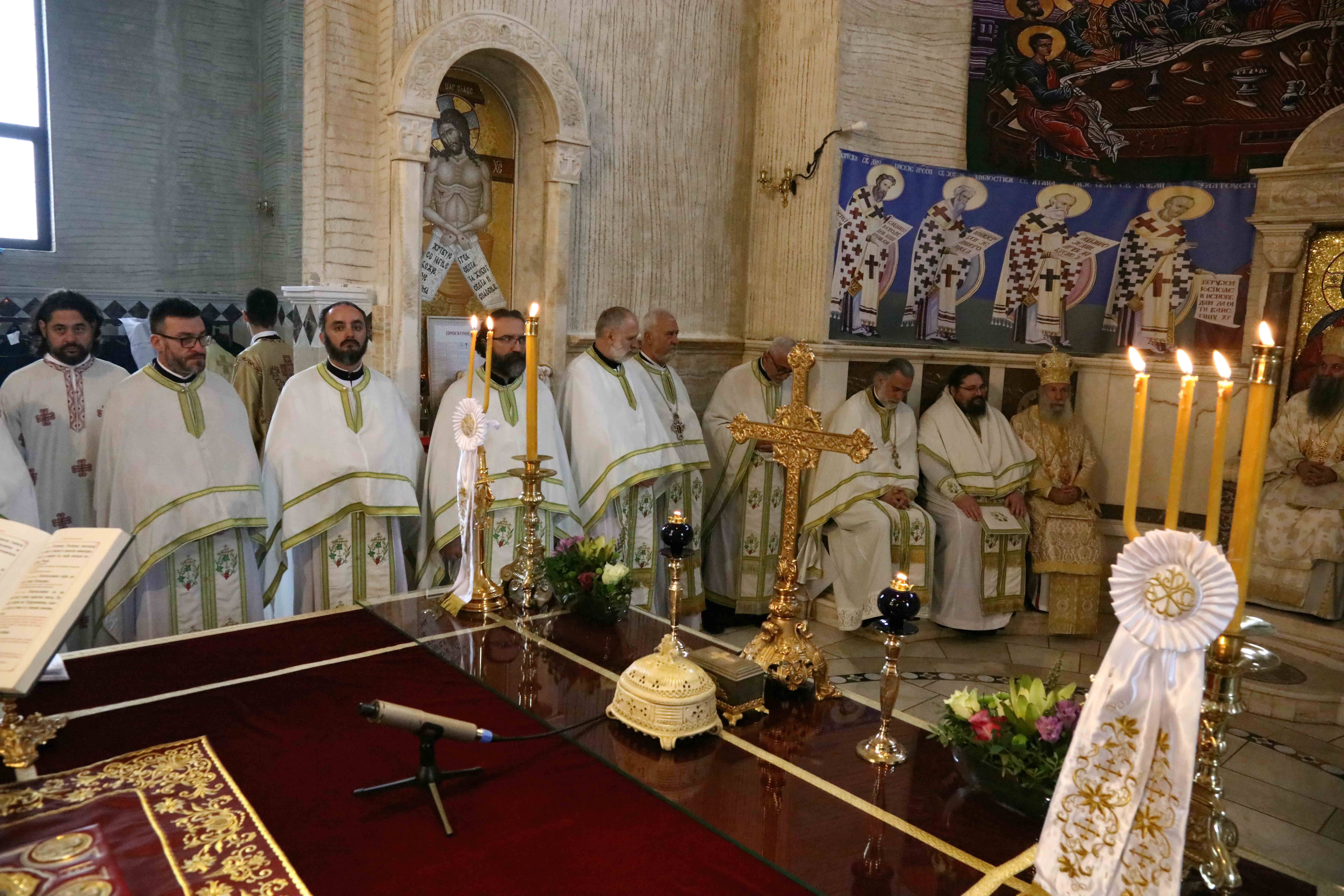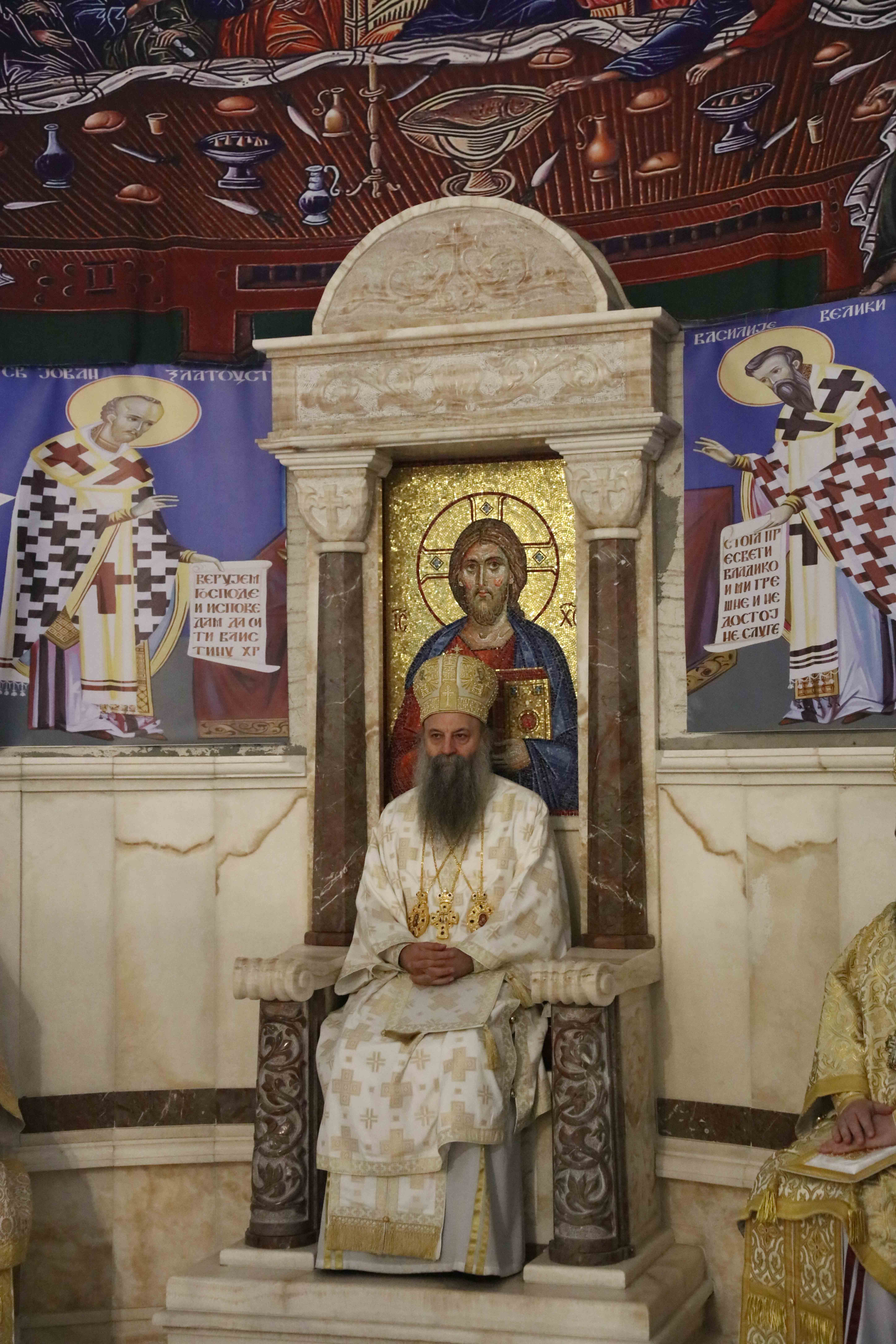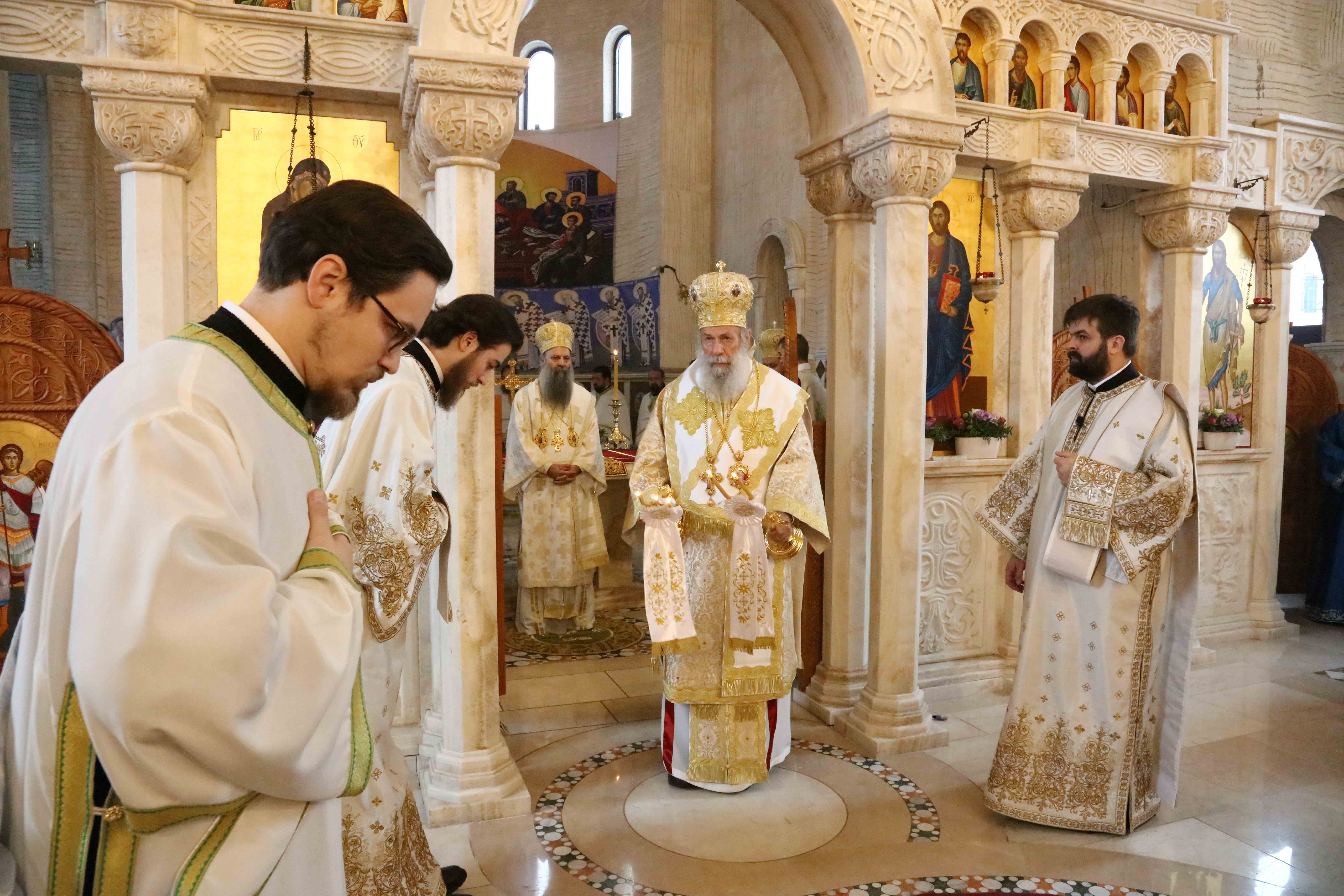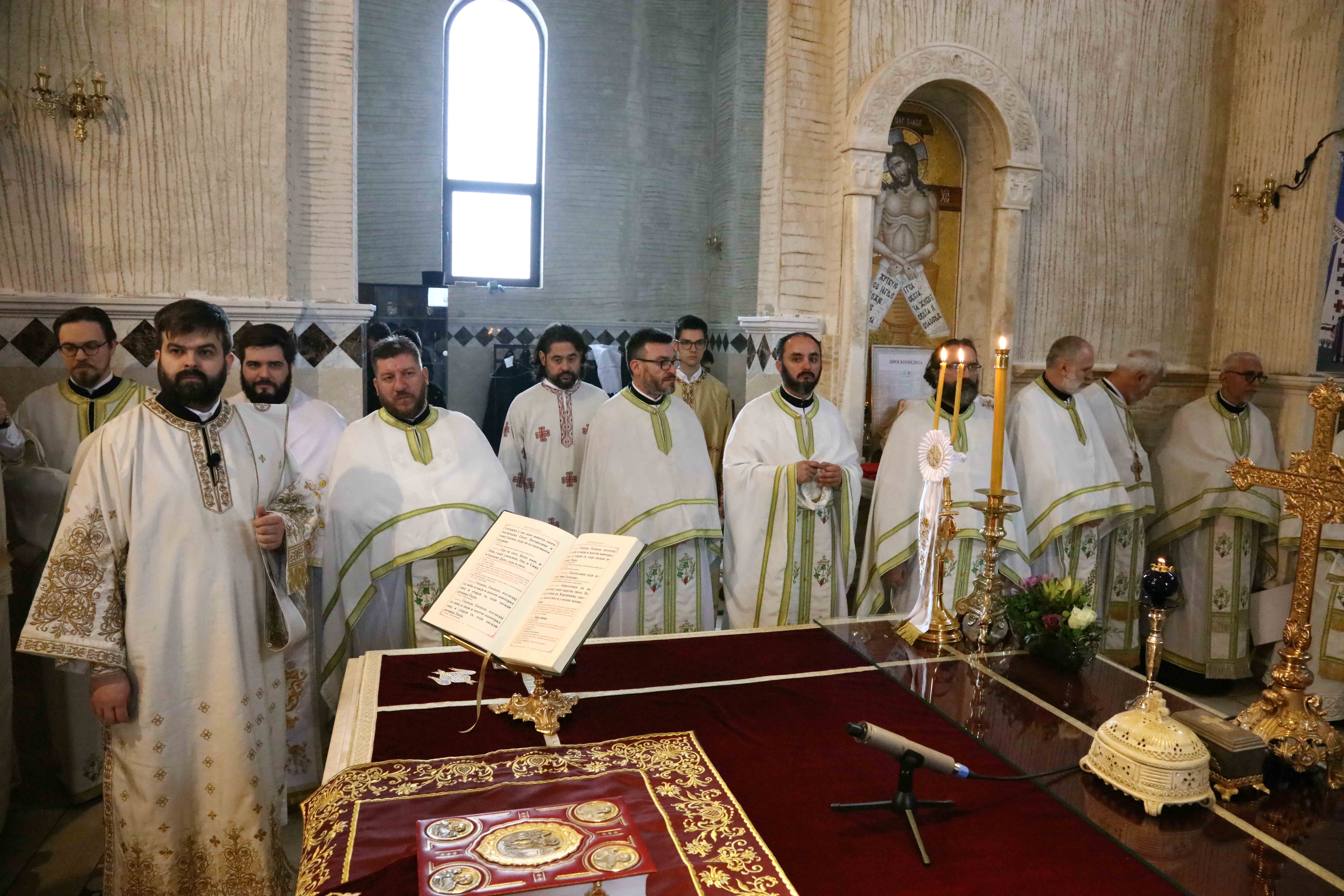 Саслуживали су преосвећена господа епископи марчански Сава и хвостански Алексеј, главни секретар Светог Архијерејског Синода архимандрит Нектарије, директор Патријаршијске управне канцеларије архимандрит Данило, архимандрит Василије (Костић), архимандрит Прокопије из Антиохијске Патријаршије и многобројно свештенство и ђаконство у молитвеном присуству верног народа. Патријарх Порфирије је беседио на тему прочитаног јеванђељског зачала: