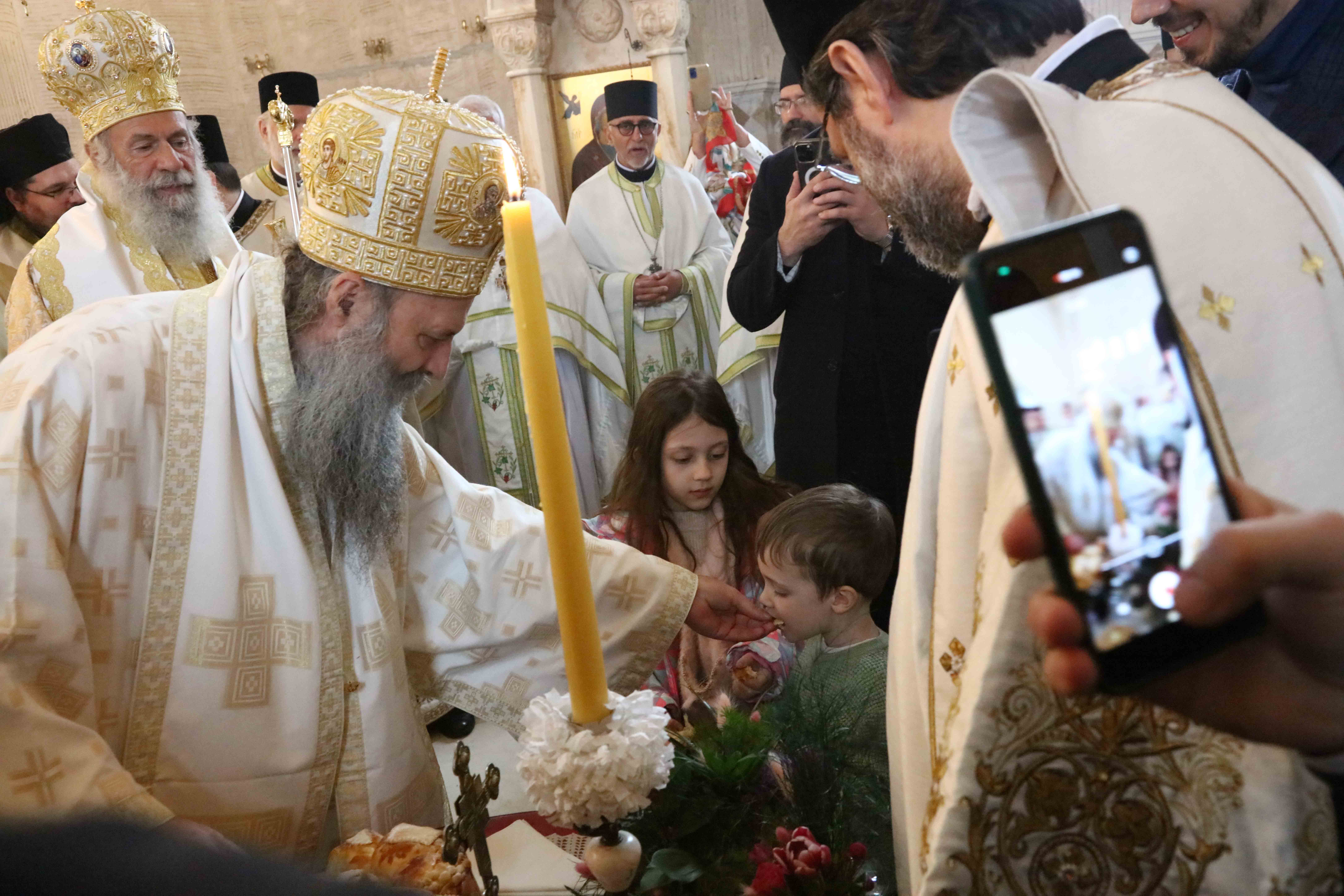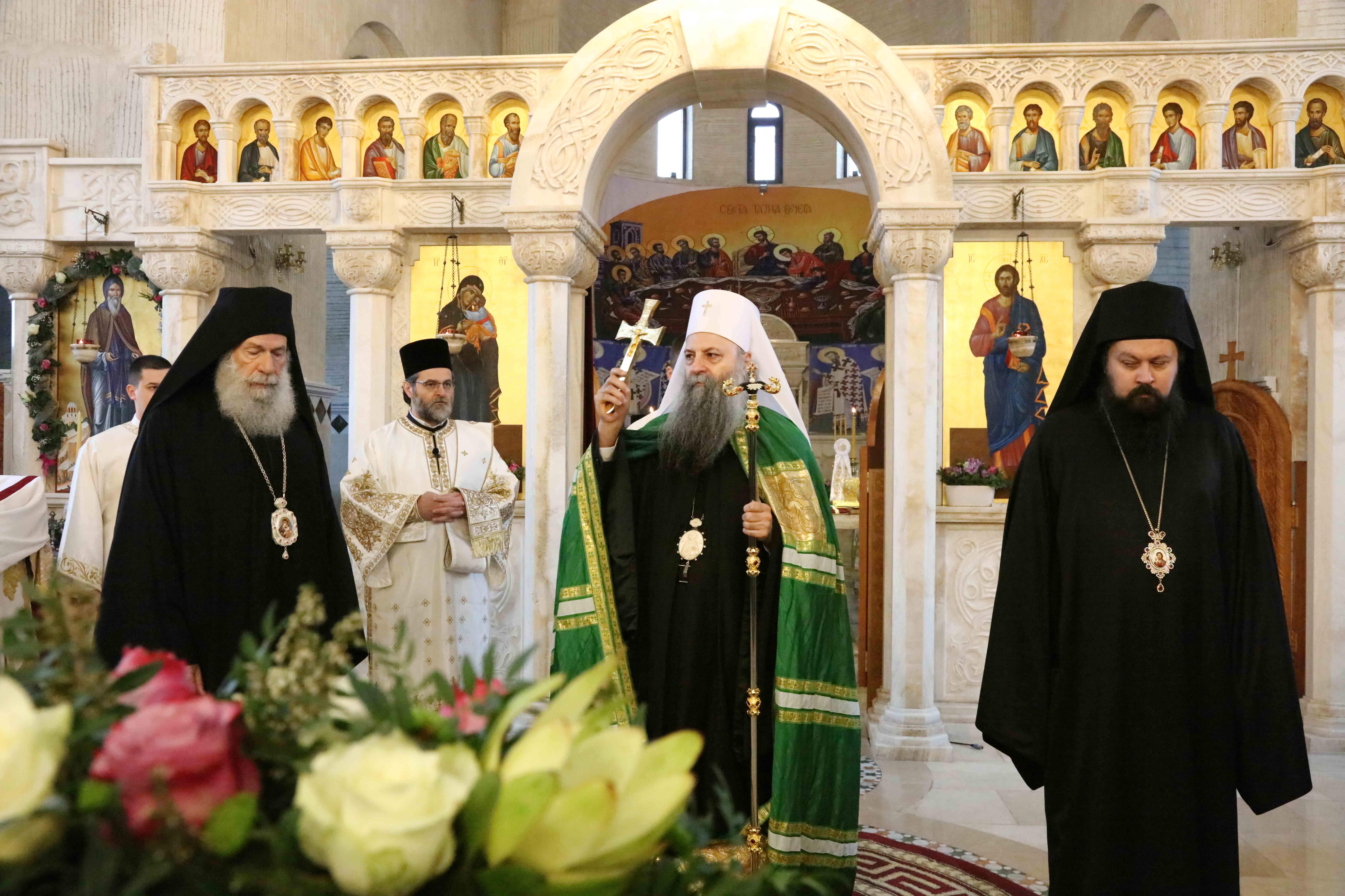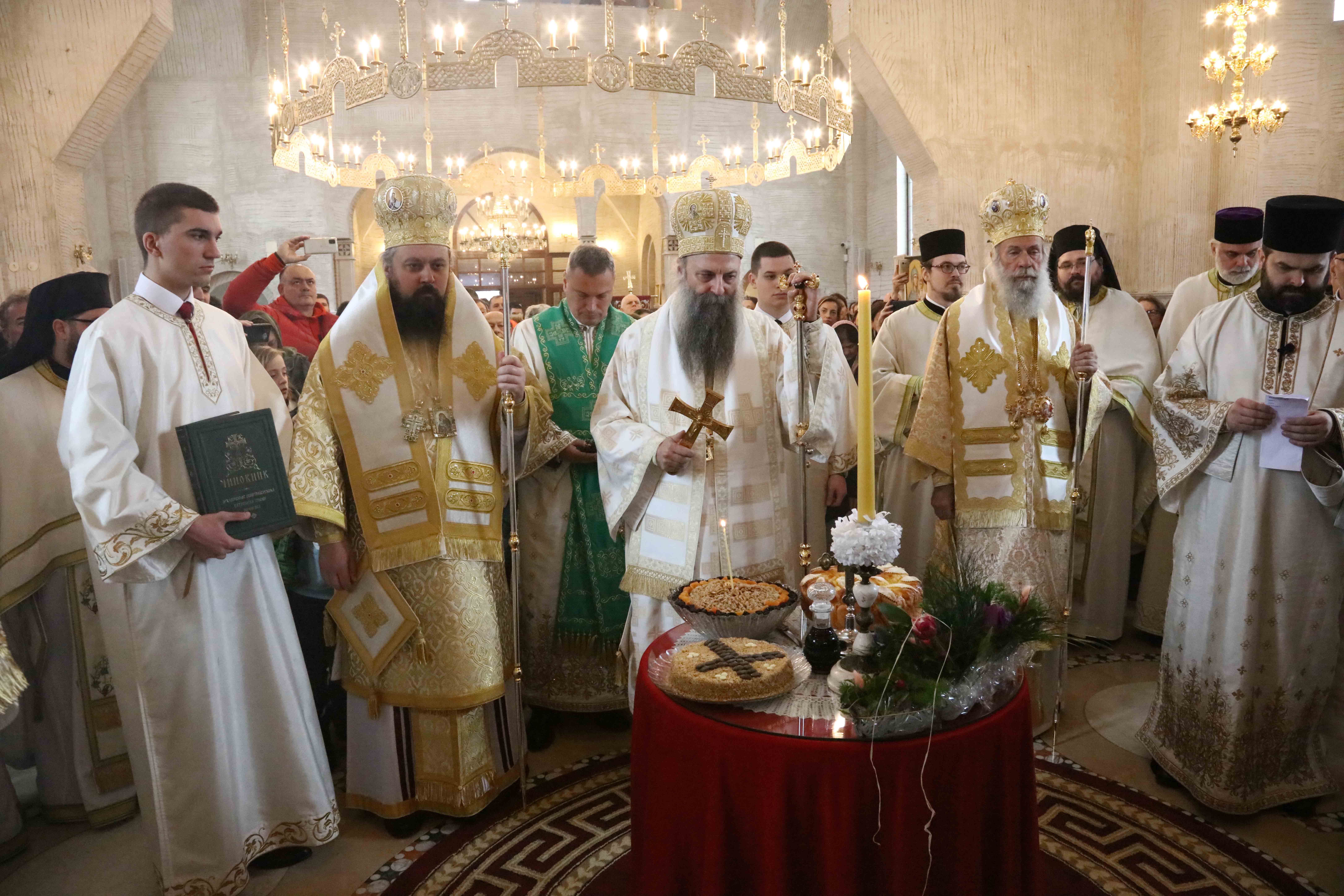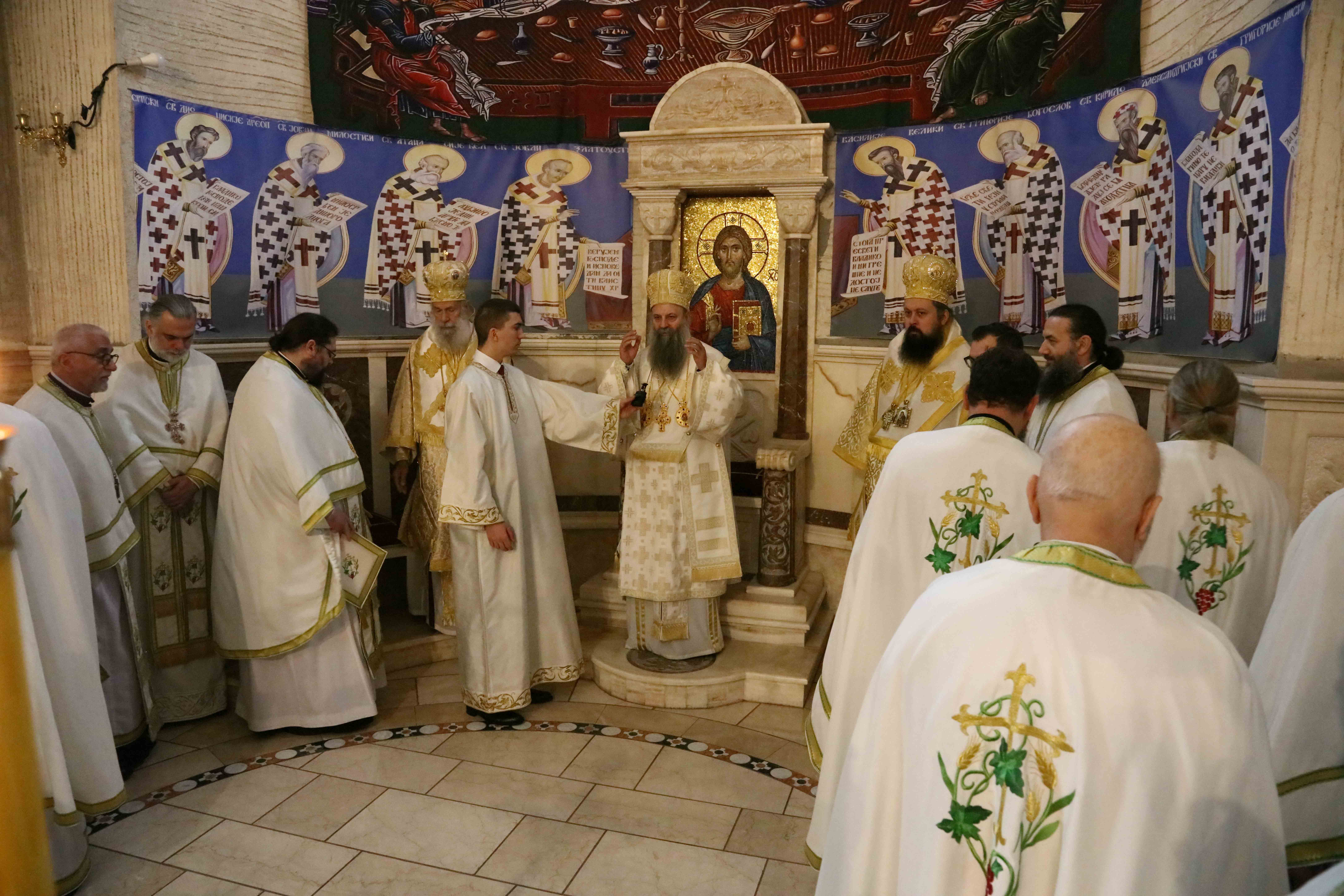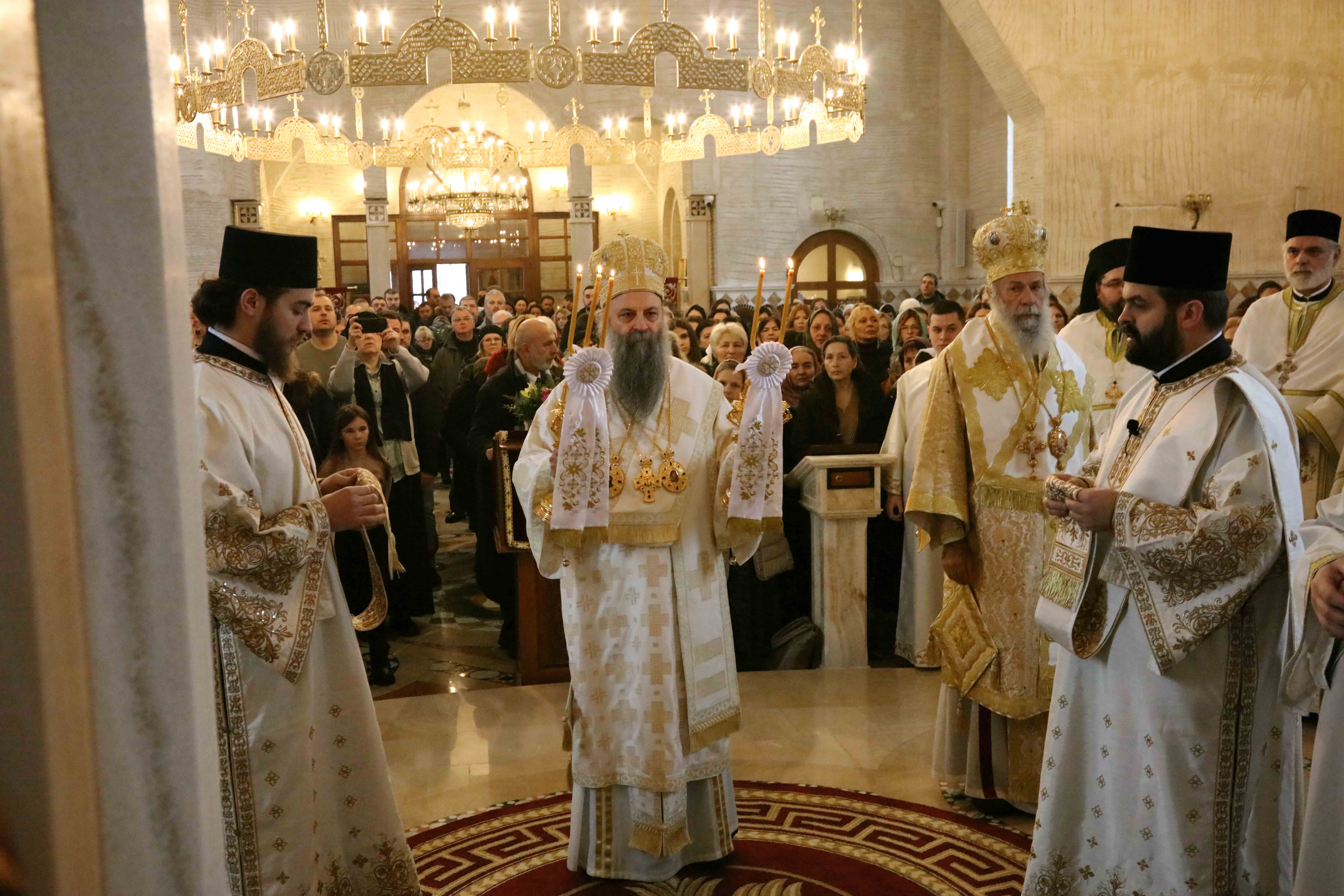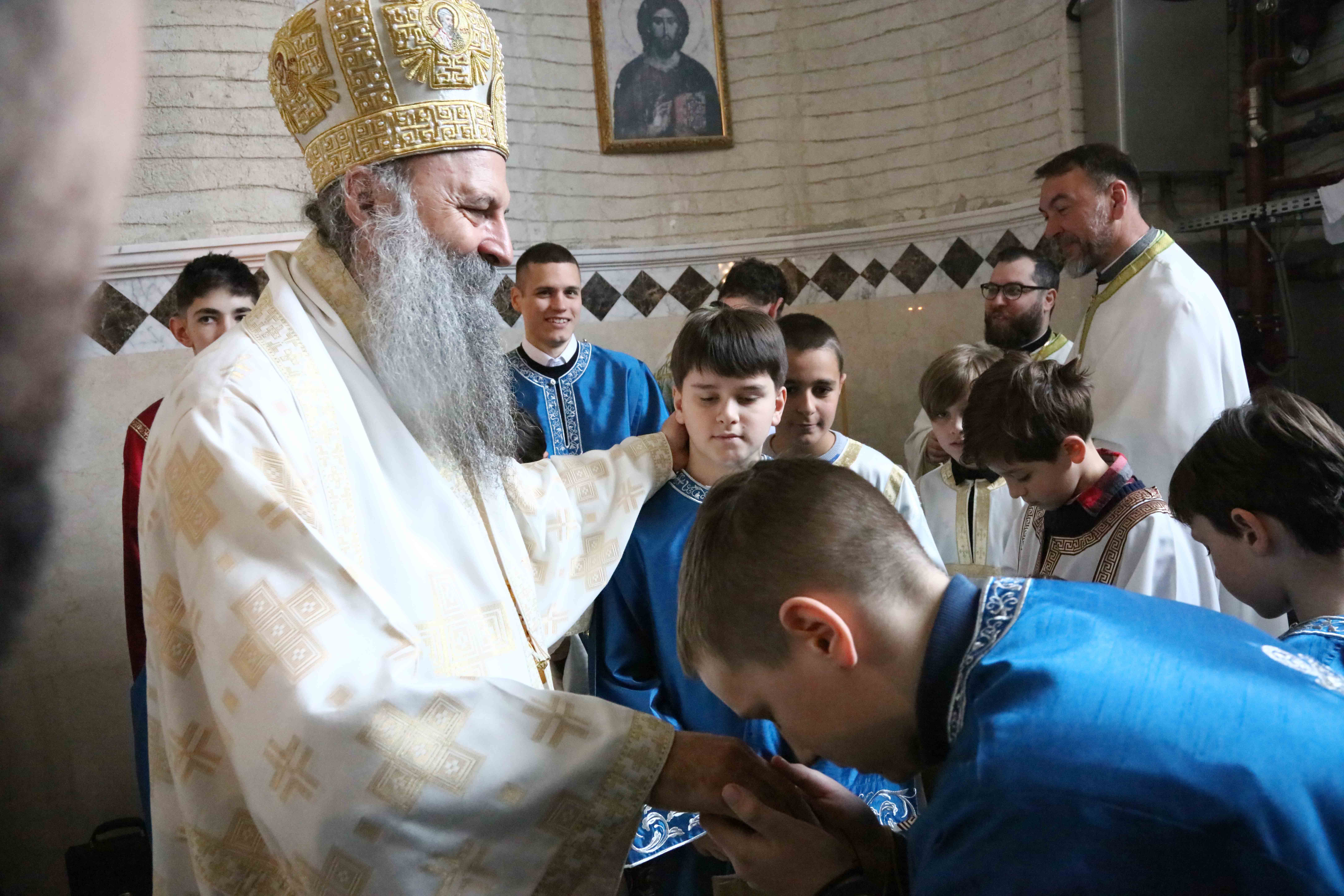 Саслуживали су преосвећена господа епископи марчански Сава и хвостански Алексеј, главни секретар Светог Архијерејског Синода архимандрит Нектарије, директор Патријаршијске управне канцеларије архимандрит Данило, архимандрит Василије (Костић), архимандрит Прокопије из Антиохијске Патријаршије и многобројно свештенство и ђаконство у молитвеном присуству верног народа. Патријарх Порфирије је беседио на тему прочитаног јеванђељског зачала: