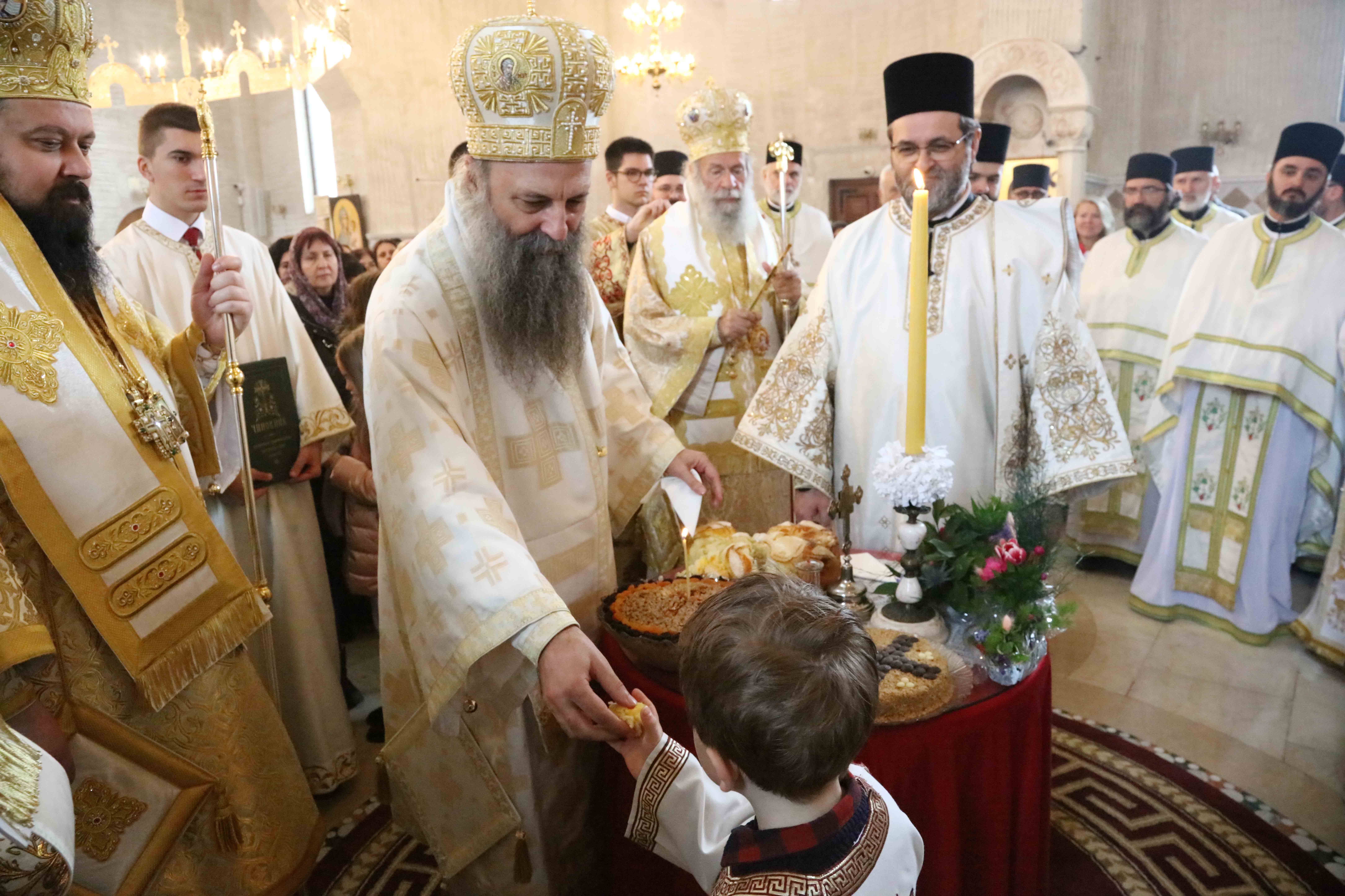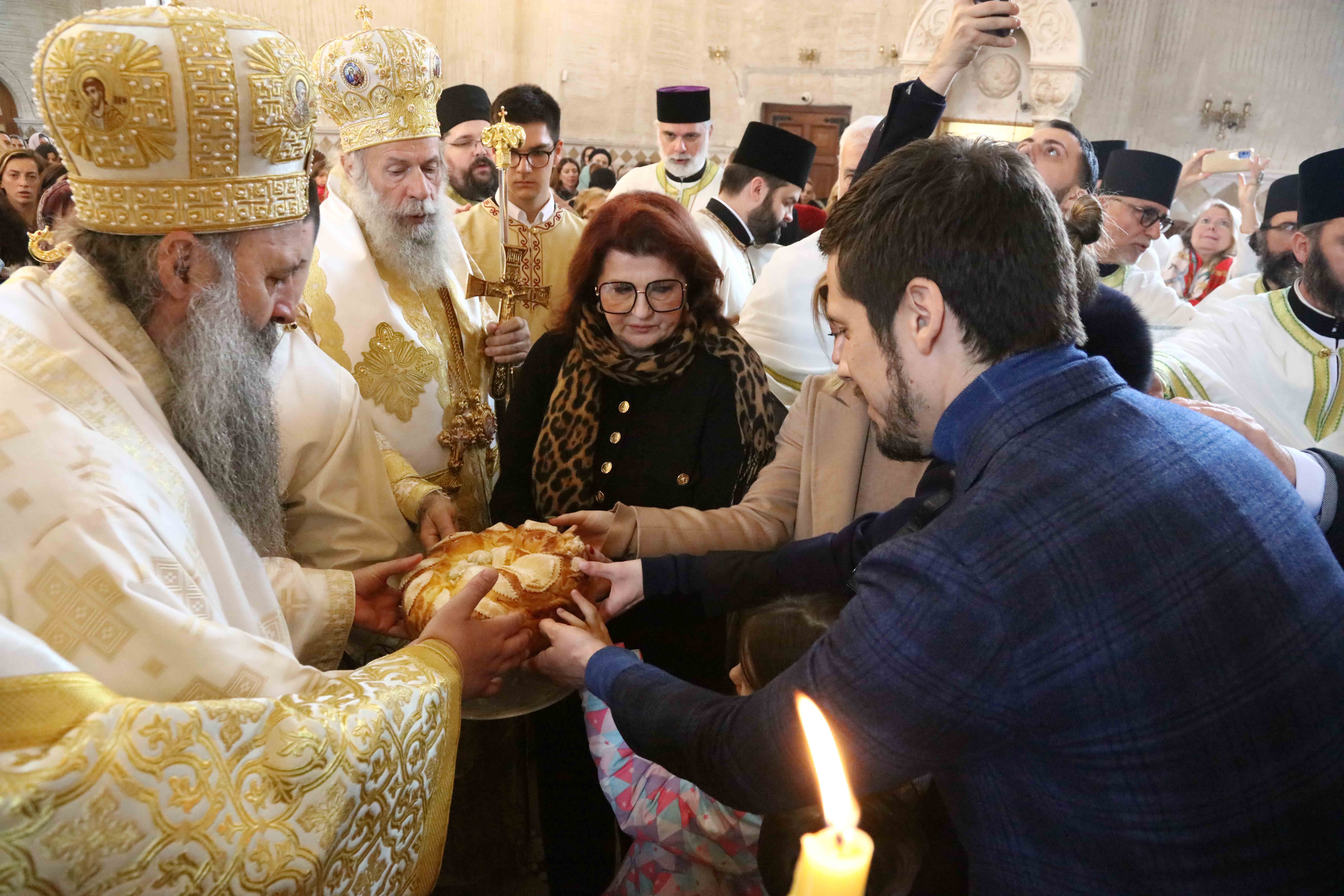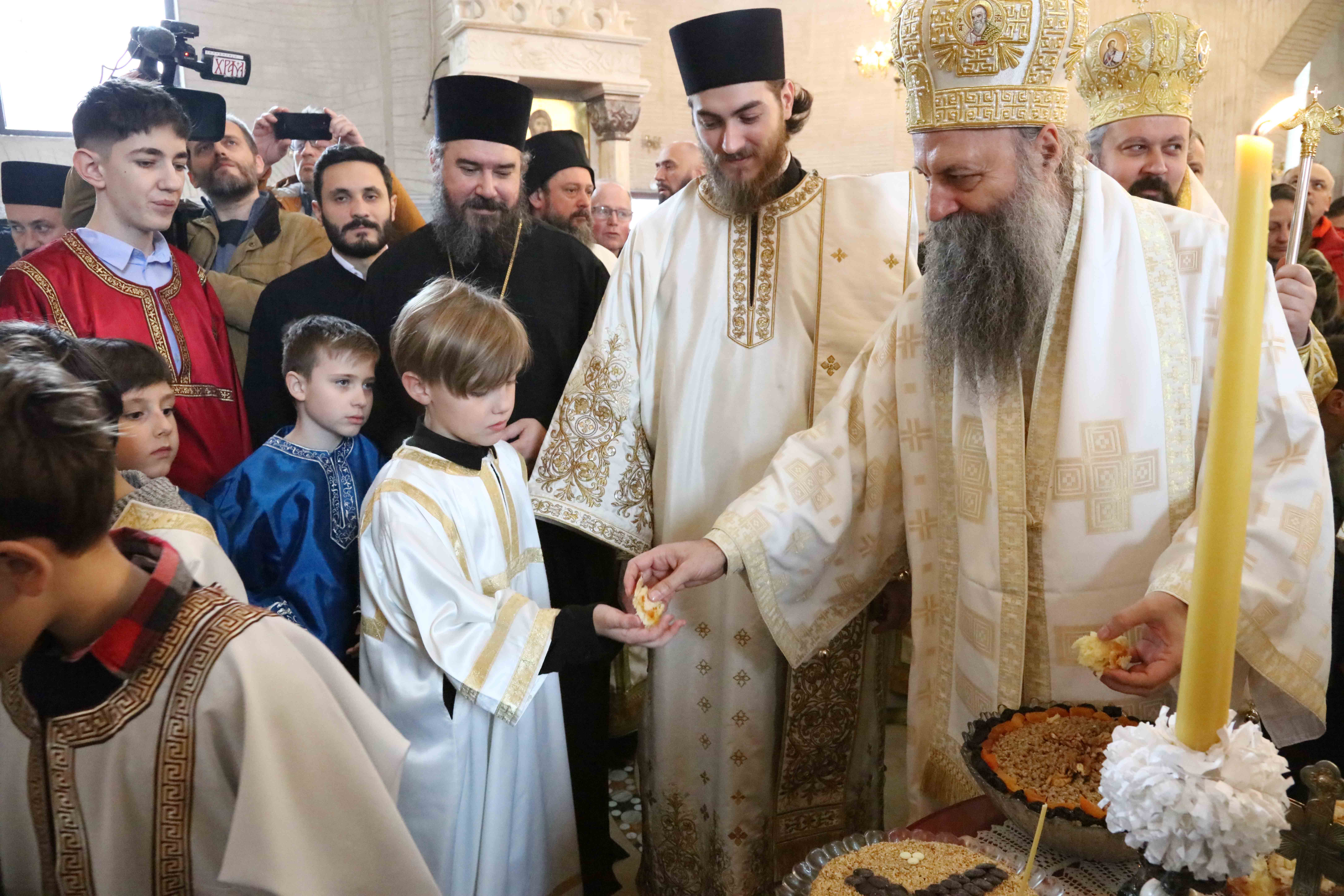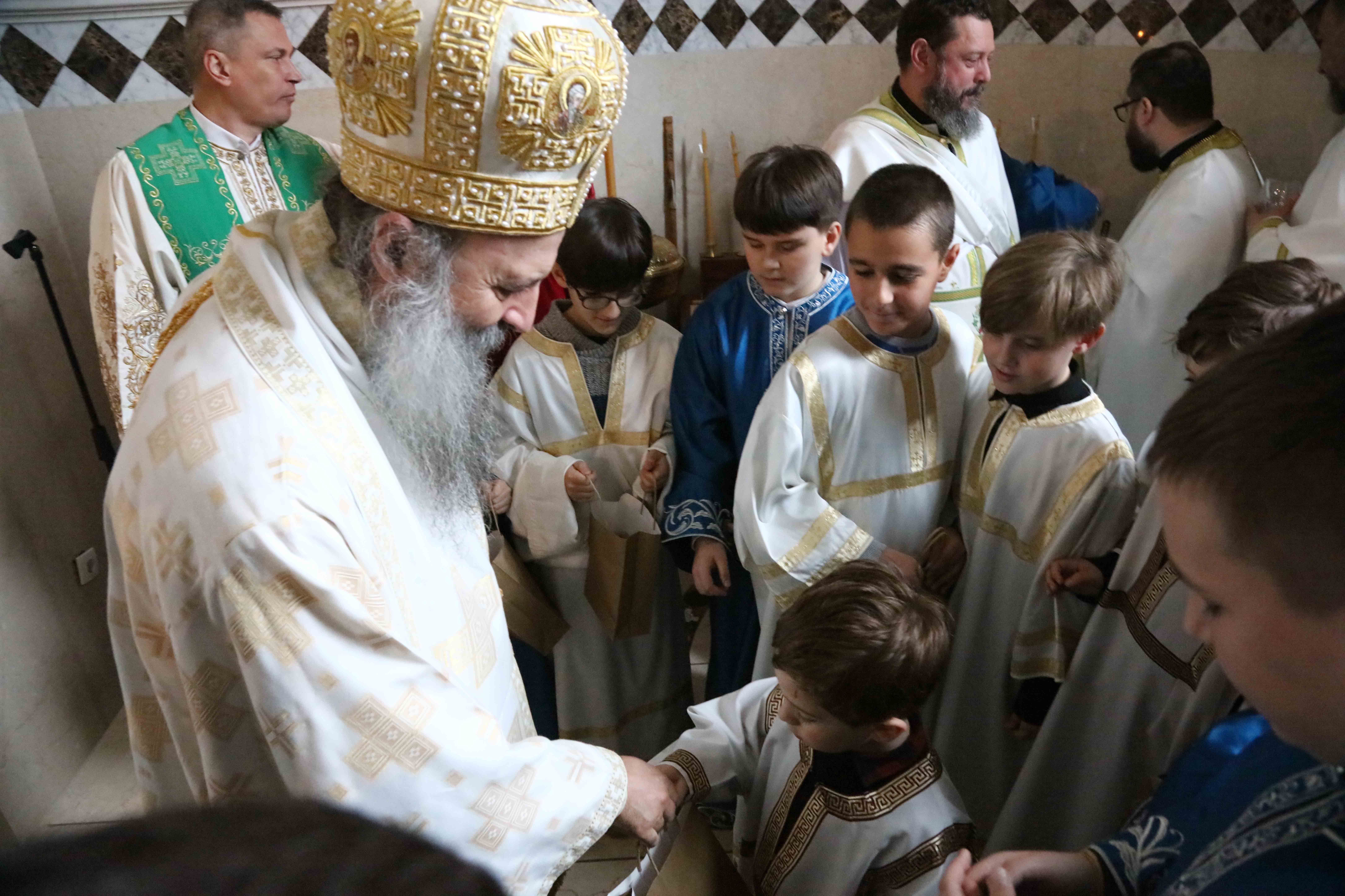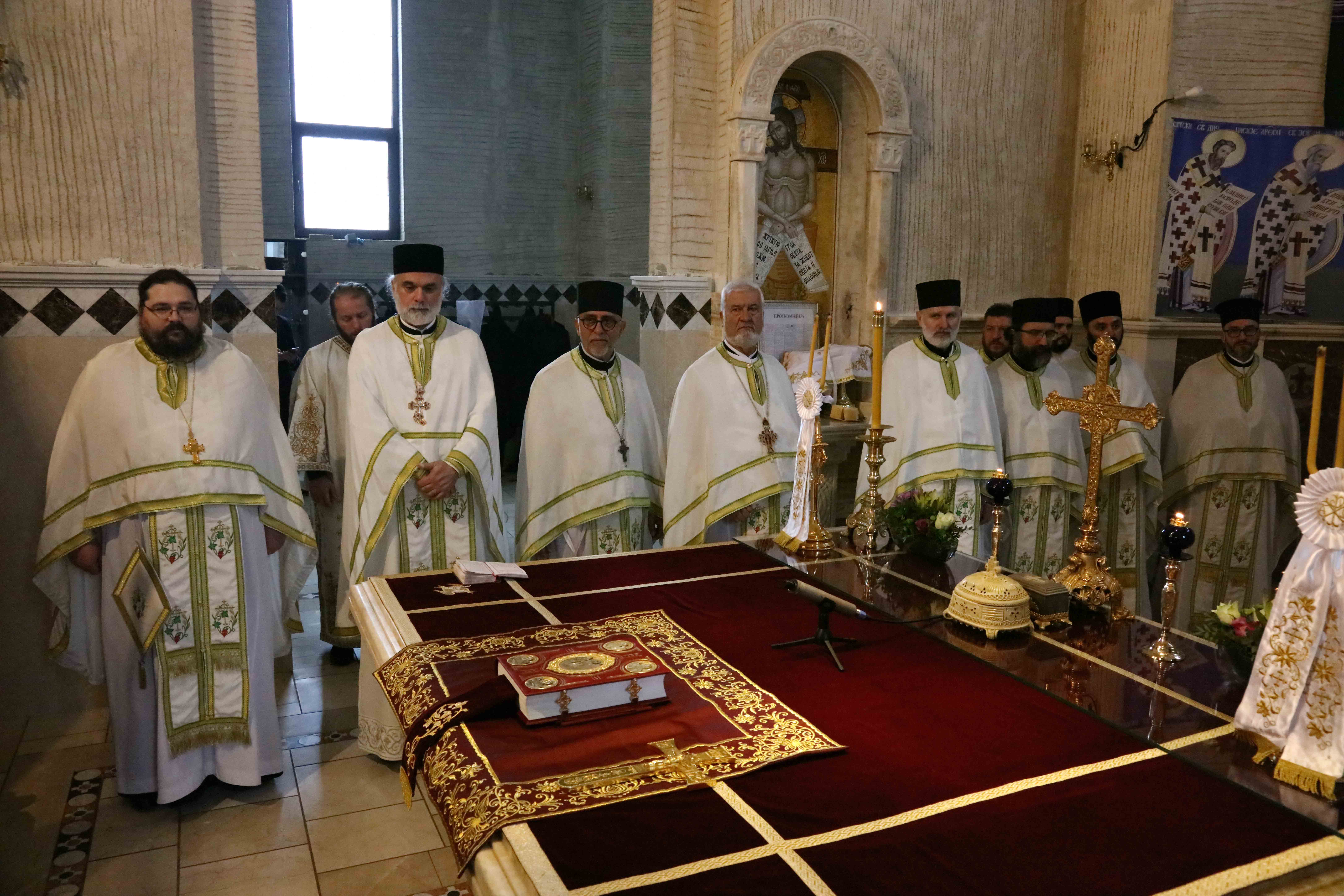 Саслуживали су преосвећена господа епископи марчански Сава и хвостански Алексеј, главни секретар Светог Архијерејског Синода архимандрит Нектарије, директор Патријаршијске управне канцеларије архимандрит Данило, архимандрит Василије (Костић), архимандрит Прокопије из Антиохијске Патријаршије и многобројно свештенство и ђаконство у молитвеном присуству верног народа. Патријарх Порфирије је беседио на тему прочитаног јеванђељског зачала: