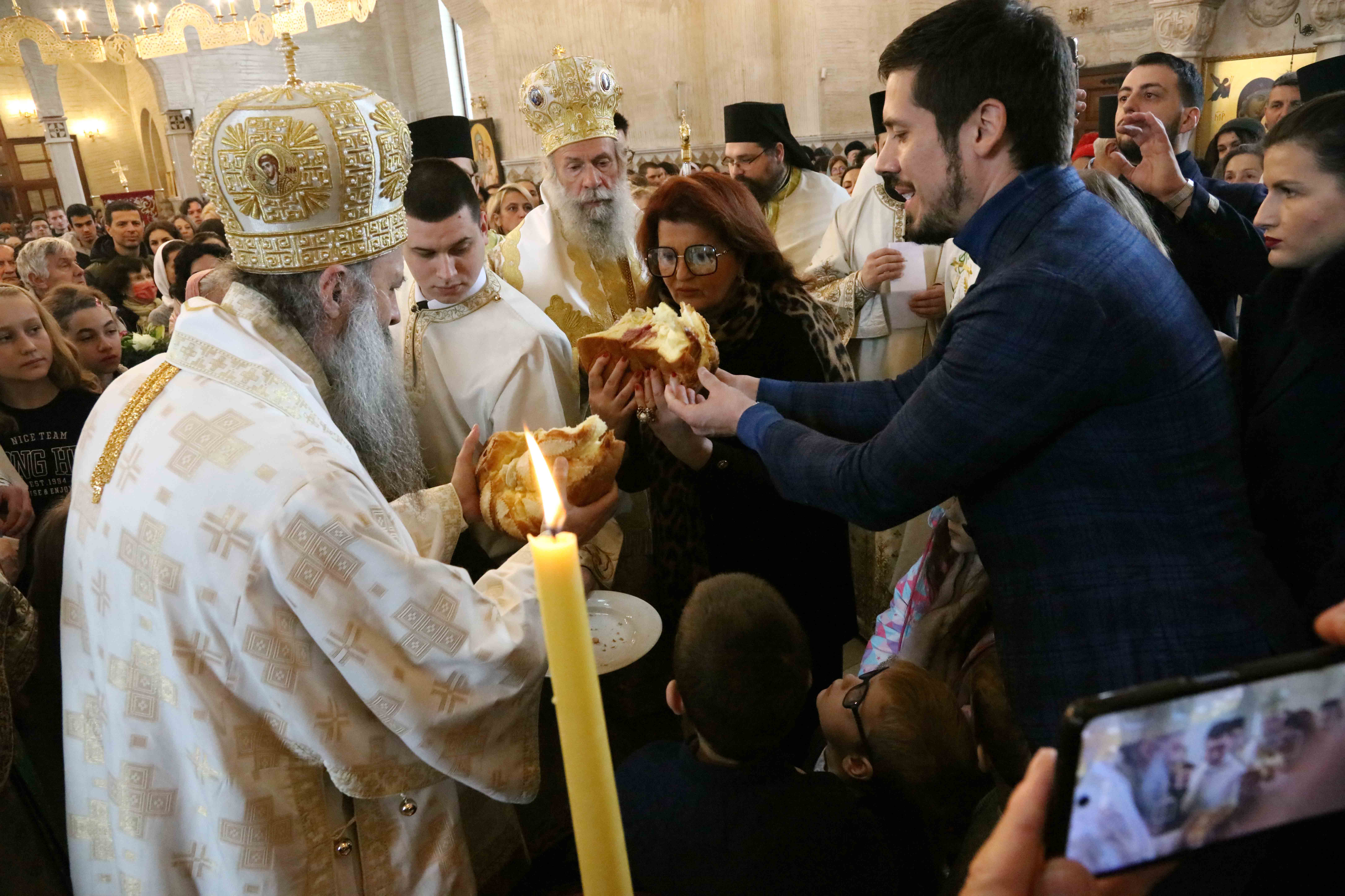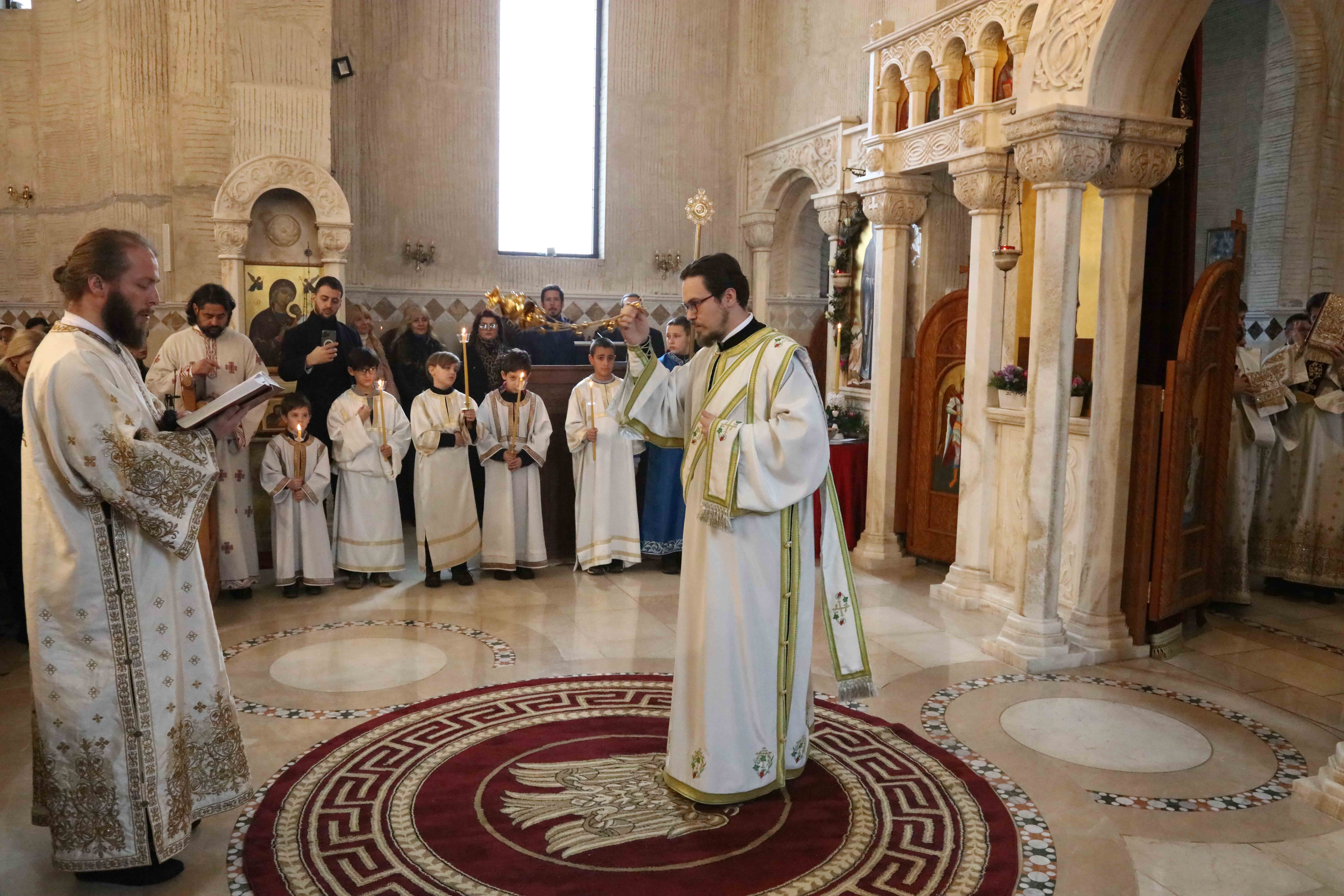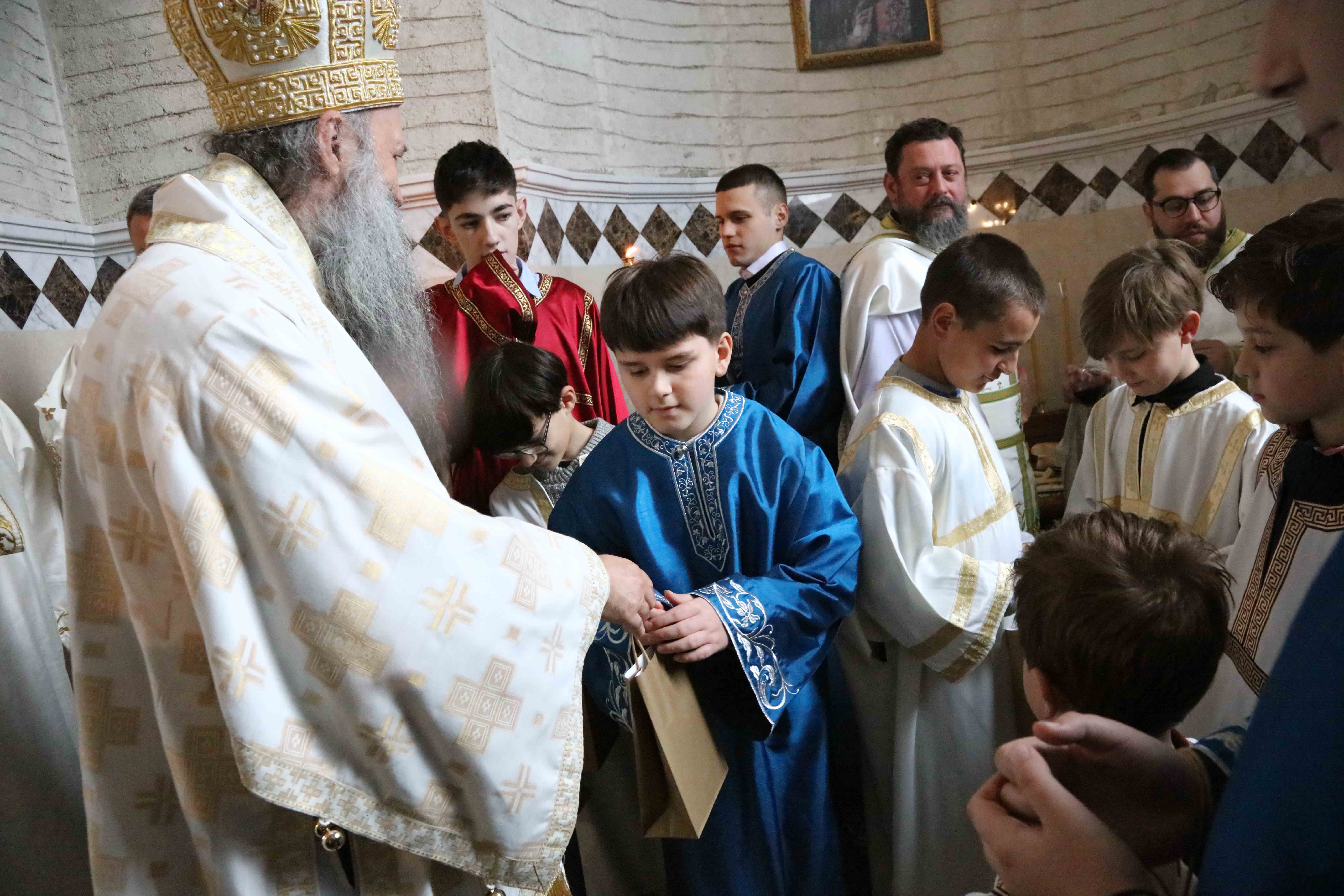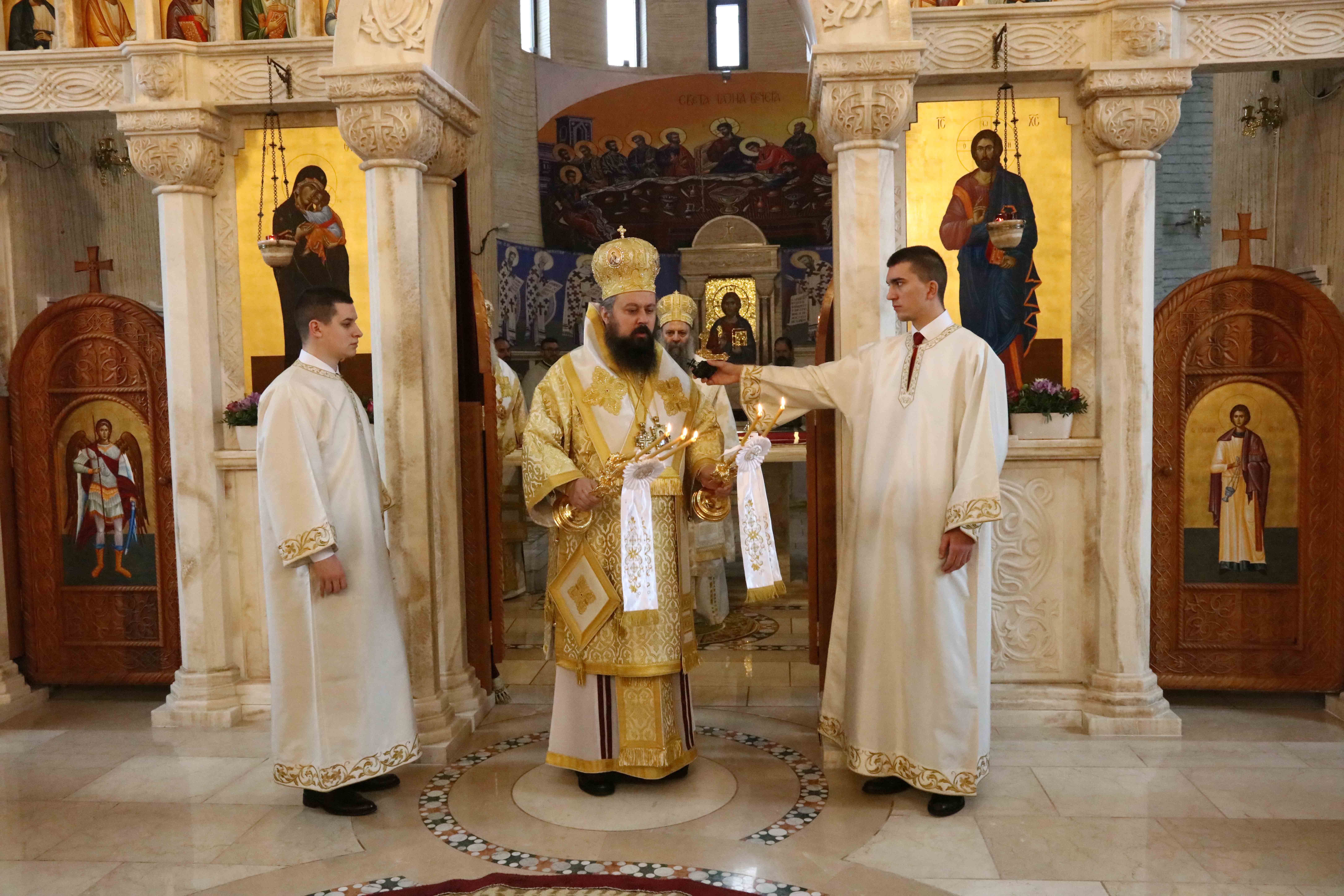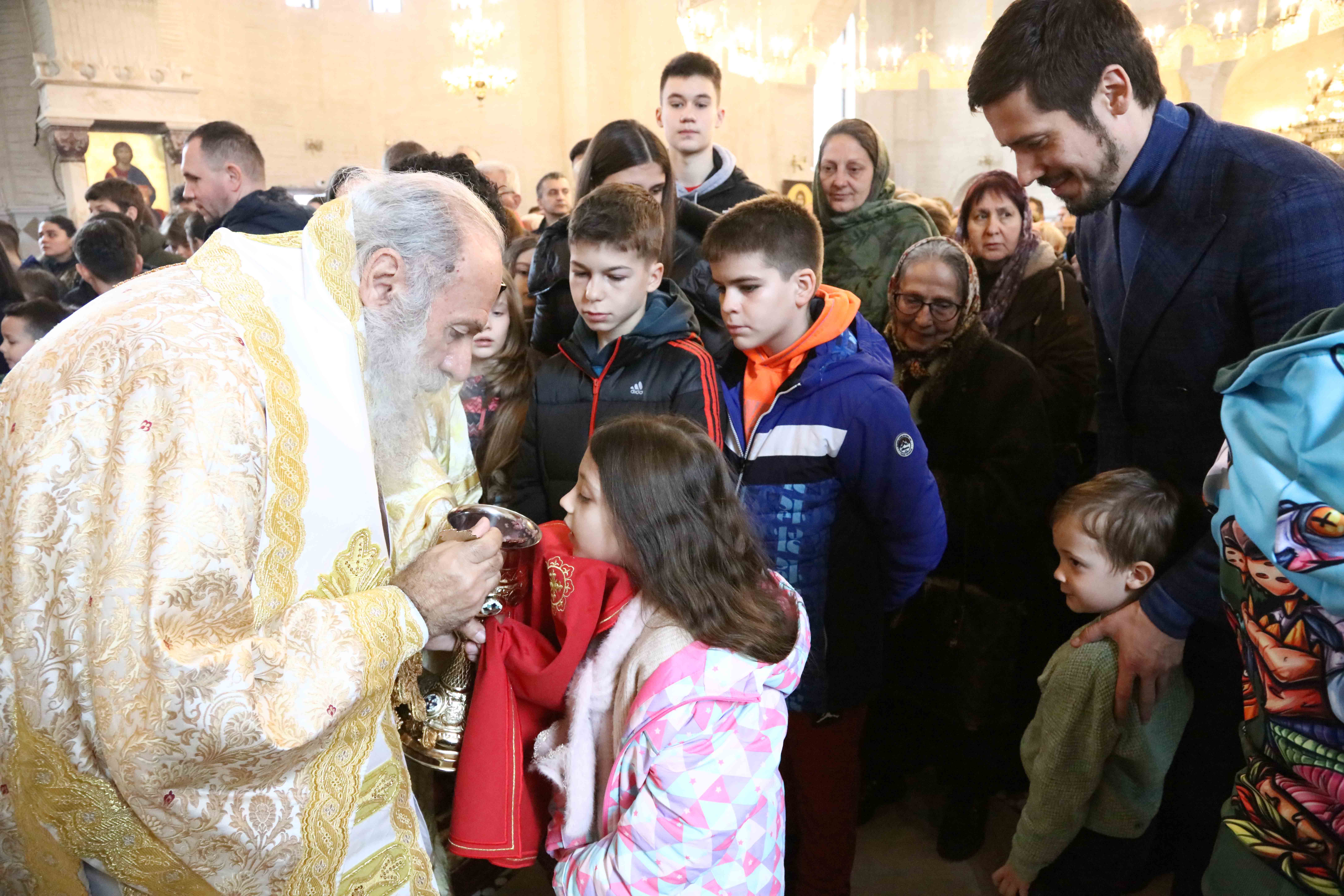 Саслуживали су преосвећена господа епископи марчански Сава и хвостански Алексеј, главни секретар Светог Архијерејског Синода архимандрит Нектарије, директор Патријаршијске управне канцеларије архимандрит Данило, архимандрит Василије (Костић), архимандрит Прокопије из Антиохијске Патријаршије и многобројно свештенство и ђаконство у молитвеном присуству верног народа. Патријарх Порфирије је беседио на тему прочитаног јеванђељског зачала: