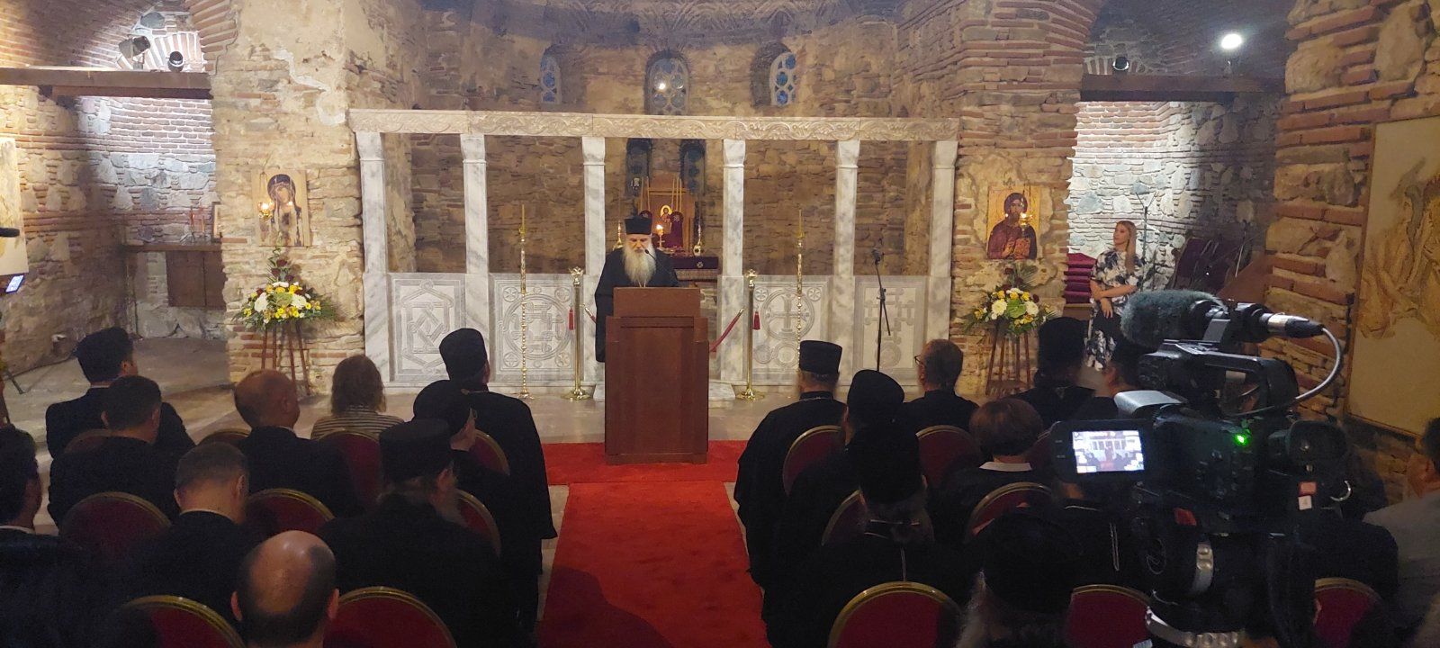 Са радошћу истичем да је овај скуп и место сабрања и заједничког делања епископа, свештенства, монаштва и богослова наше две сестринске Цркве – Српске Православне Цркве и Македонске Православне Цркве – Охридске Архиепископије. Тај сусрет није само академски, него саборни и литургијски, јер сваки истински богословски разговор израста из заједнице у Христу и у Њему налази своје испуњење. Нека овај скуп буде још један доказ да је наш заједнички труд у Господу благословен и да доноси изобиље добрих плодова. Нека посведочи да смо, упркос огромним искушењима и историјским недаћама, сачували заједничко наслеђе и да смо позвани да га заједно развијамо и сведочимо у овом нашем времену обремењеном фабрикованим немирима и крајњом неизвесношћу”.