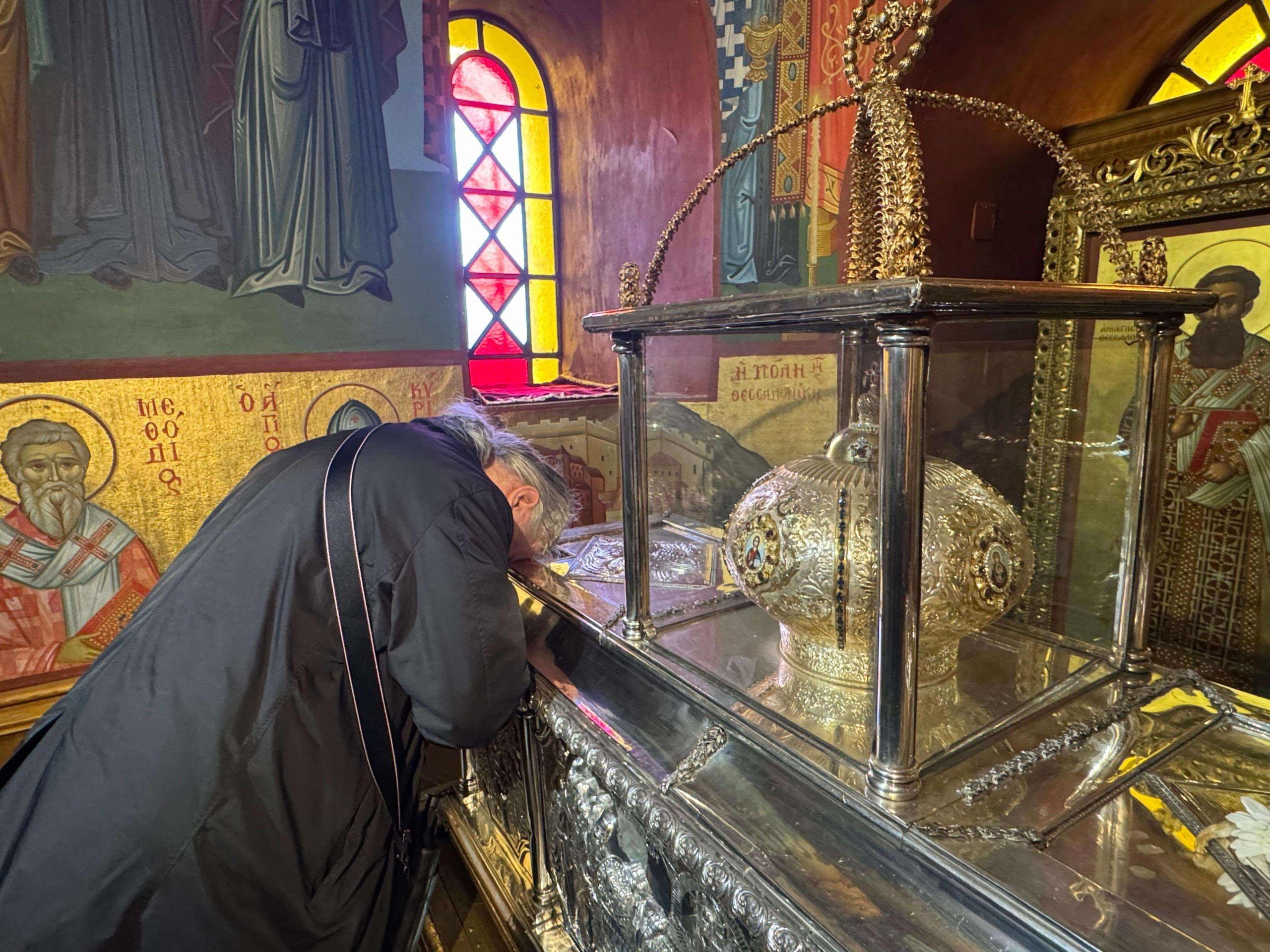 Његово Преосвештенство Епископ буеносајрески и јужно-централноамерички и администратор загребачко-љубљански г. Кирило је, после поклоњења светињама Солуна, где је походио и манастир Светог Јована Богослова у Суротију и поклонио се гробу Светог старца Пајсија Светогорца, стигао на Свету Гору, у манастир Хиландар, где је, као изасланик Његове Светости Патријарха српског г. Порфирија, предстојао свеноћним бденијем поводом манастирске славе – празника Ваведења Пресвете Богородице.