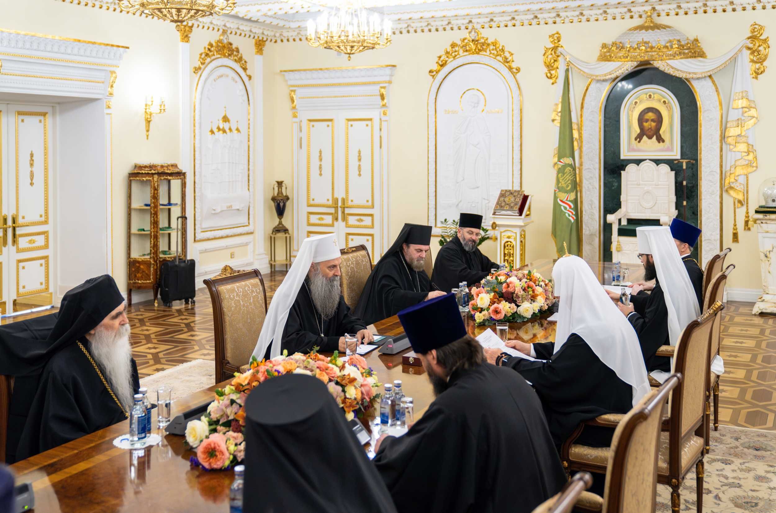 22 апреля 2025 года в Патриаршей и Синодальной резиденции в Даниловом монастыре в Москве состоялась встреча Святейшего Патриарха Московского и всея Руси Кирилла и Святейшего Патриарха Сербского Порфирия.
