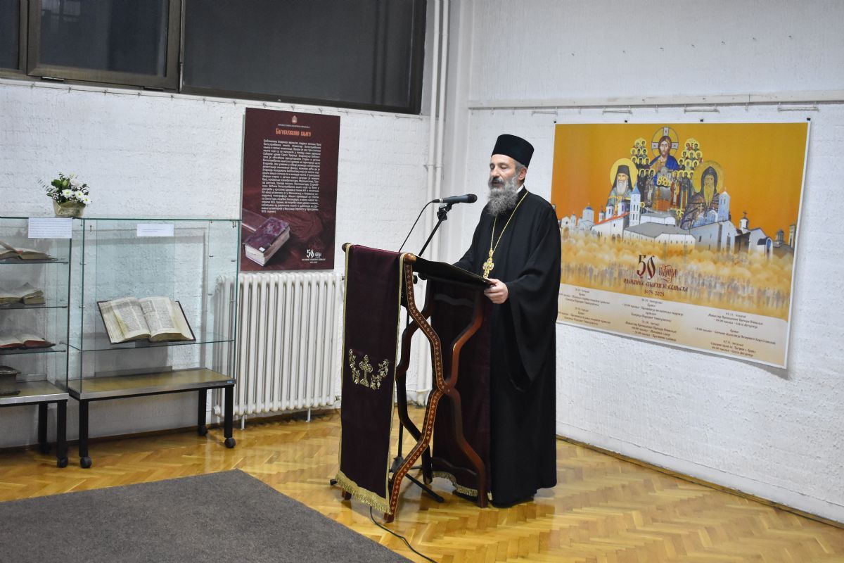 Свечаном отварању изложбе присуствовао је Његово Високопреосвештенство Митрополит врањски г. Пахомије, који је у својој поздравној речи изразио благодарност свима који су током протеклих пет деценија допринели издавачкој, културној и духовној делатности Епархије врањске. Митрополит је истакао да је писана реч једно од најважнијих средстава сведочења вере и очувања духовног идентитета, те да издавачка делатност представља трајно сведочанство о животу Цркве на простору југа Србије. На изложби је представљена богата и разноврсна издавачка делатност коју је Православна епархија врањска неговала у протеклим деценијама, показујући ширину духовних, научних и културних интересовања. Изложба је тематски подељена у више целина: