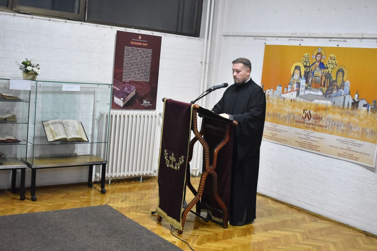 У оквиру обележавања великог јубилеја, педесет година од обнове Епархије врањске, у Галерији Народног универзитета у Врању свечано је отворена изложба под насловом „Промоција издања Епархије врањске“.