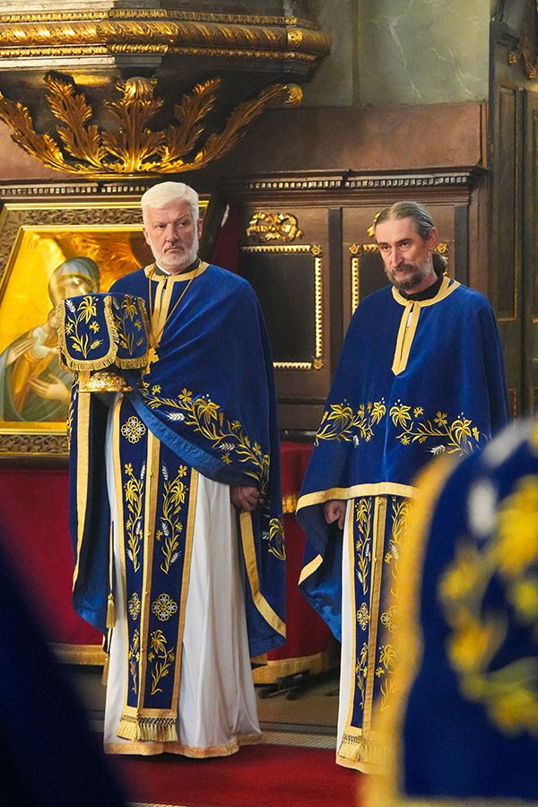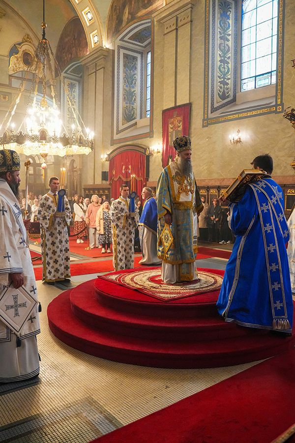 Током торжествене празничне Литургије, Његовој Светости су саслуживали: преосвећени викарни епископи новобрдски Иларион и јенопољски Никон, протојереји-ставрофори Петар Лукић и Бранко Топаловић, протонамесник Богољуб Остојић, јереји Славиша Поповић и Ивица Чаировић, протођакони Драган Радић, Радомир Врућинић и Дамјан Божић, ђакони Василије Перић, Николај Вуковић, Александар Ђуровић и Милорад Илић.