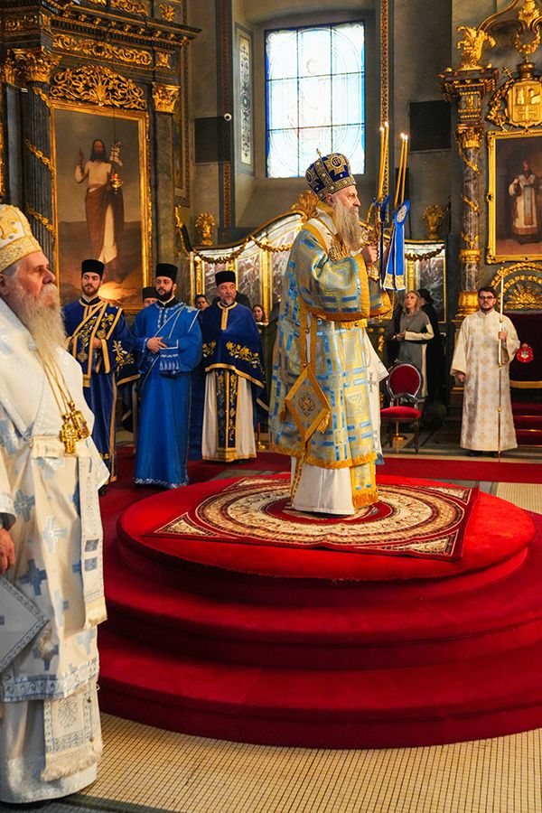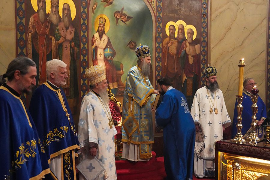 – То је појас који је Пресвета Богородица сама, својим рукама, исплела од камиље длаке и који је после Њеног уснућа предат апостолу Томи, а онда је кроз историју имао богато путешествије од Јерусалима, преко Кападокије, Цариграда, Бугарске, а у једном периоду је био и у Србији. Свети кнез Лазар је тај појас са делом Часног крста поклонио манастиру Ватопед, где се и до дана данашњег чува у олтару манастирске саборне цркве. И ево, имаћемо благослов да игуман манастира Ватопеда са још десетином монаха буде у Спасовданској литији, а неколико дана после тога у храму Светог Саве ћемо моћи сви да се поклонимо и помолимо Пресветој Богородици и примимо благослов Њеног појаса – речи су Његове Светости Патријарха српског г. Порфирија које су обрадовале благочестиви народа сабран 7. априла 2026. године, на Благовести, у Саборној цркви Светог архангела Михаила у Београду.