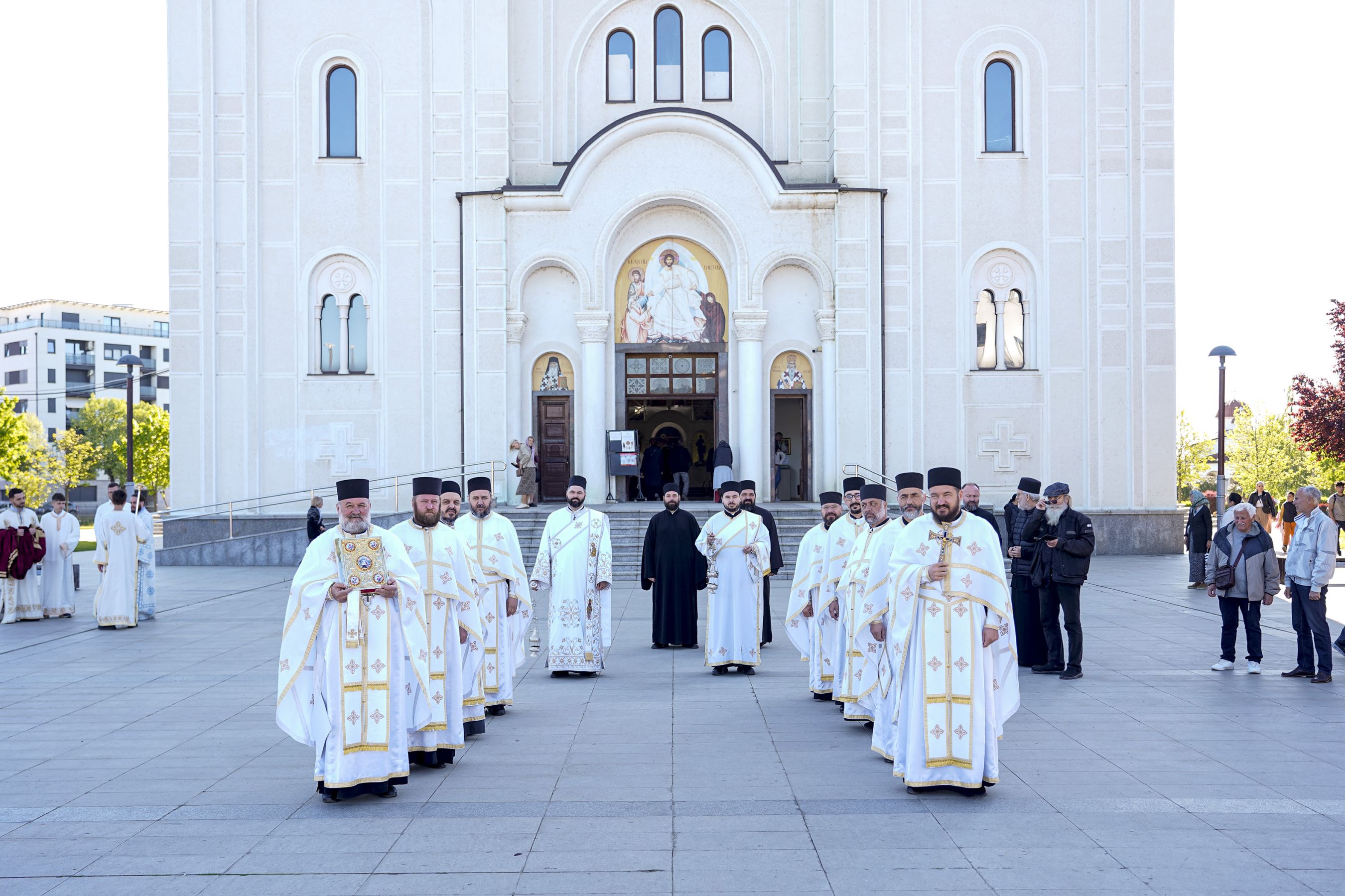Преосвећени Епископ ваљевски г. Исихије је служио у Недељу мироносица, 26. априла 2026. године, свету Литургију у Саборном храму Васкрсења Христовог у Ваљеву. Посебну лепоту богослужењу дали су хорови „Емануил“ и „Хаџи Рувим“, подржани гласовима гостујућих хорова „Света Петка“ из Пожаревца и „Свети Рафаило Банатски“ из Зрењанина, под управом проф. Вање Урошевић.