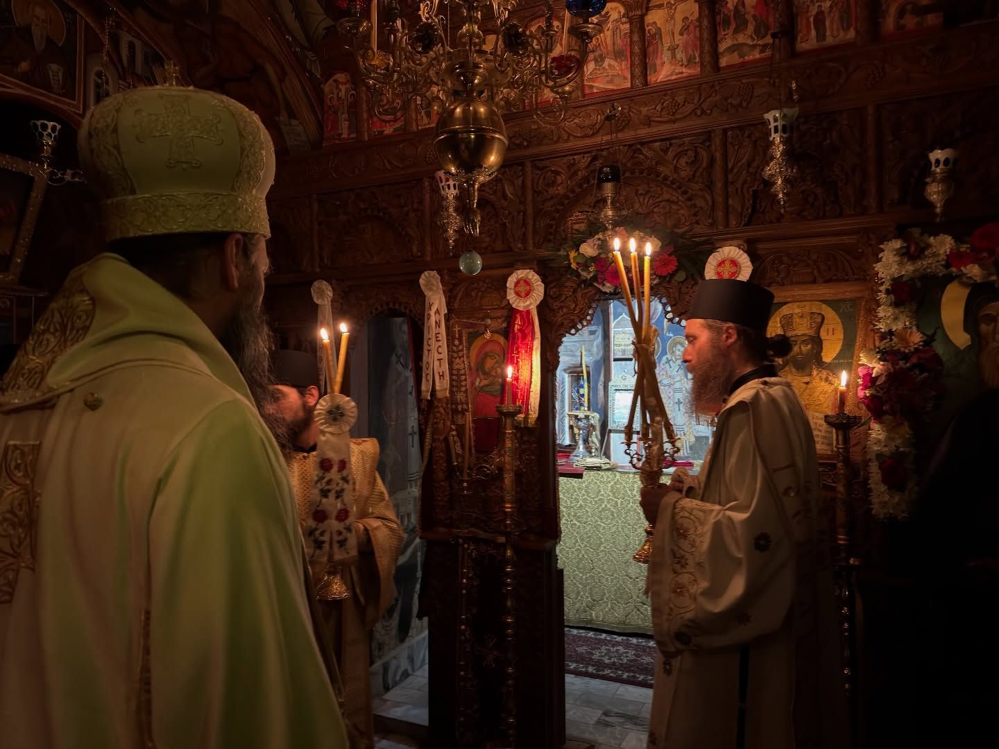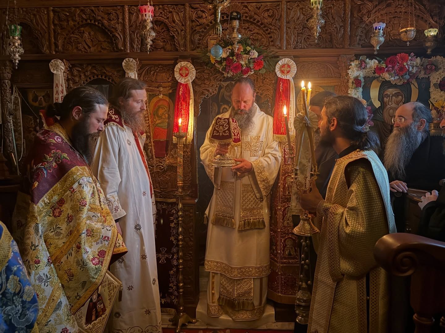 На позив високопреподобног старца Патапија, настојатеља келије Успења Пресвете Богородице у Кавсокаливији, Његово Преосвештенство викарни Епископ новобрдски г. Иларион је учествовао у Недељу мироносица, 26. априла 2026. године, са делом хиландарског братства, у торжественој прослави празника Преподобног Акакија Кавсокаливита.