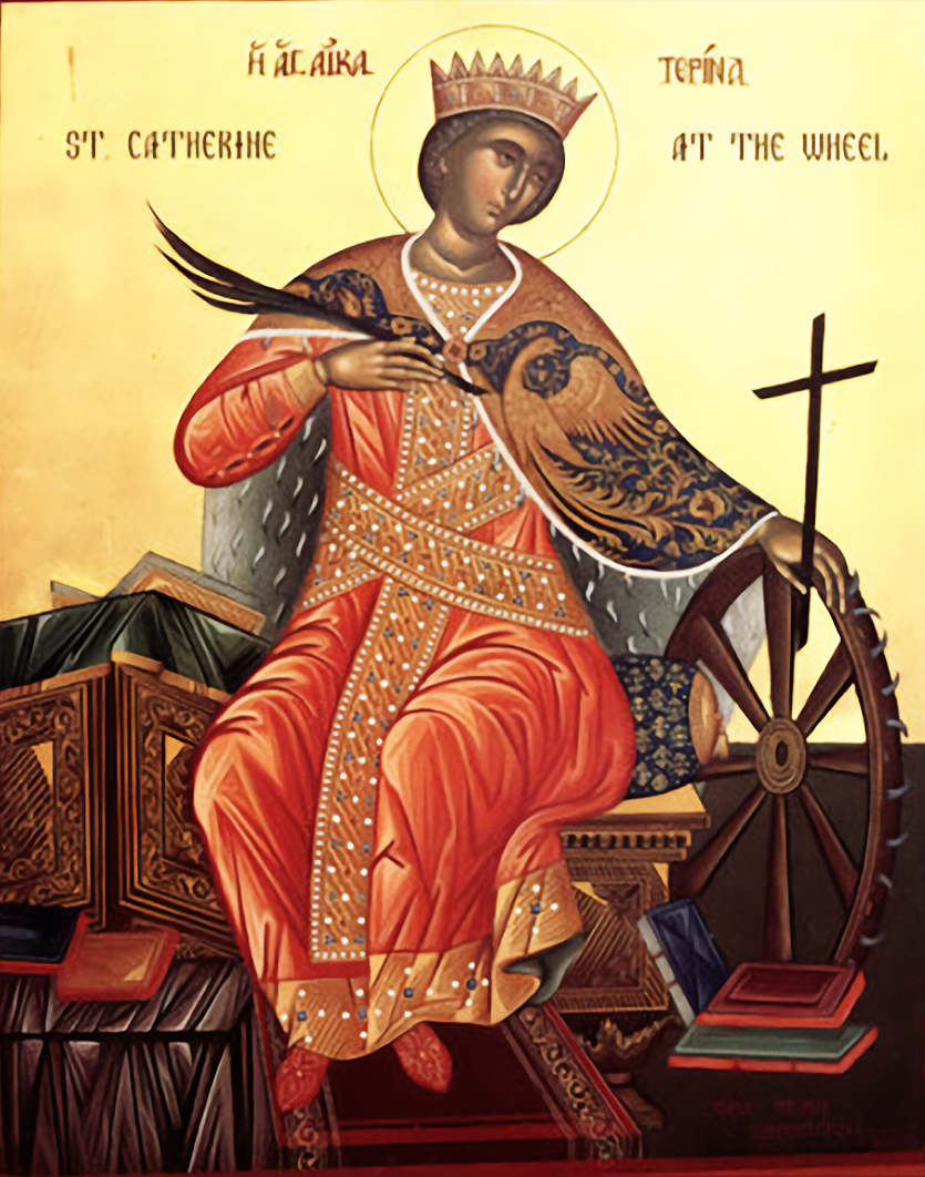 У време незнабожног цара римског Максимина (305. до 313. год.) живљаше у граду Александрији девојка, по имену Екатерина, ћерка малог цара Консте. Беше Екатерина необичне телесне лепоте, висока растом, и врло добро школована. У својих осамнаест година Екатерина беше изврсно изучила грчку философију, медицину, реторику и логику. Познавала је одлично дела: Хомера, Аристотела, Платона и других, не само философа него и чувених лекара: Асклипија, Хипократа, Галина. Поред тога она знађаше многе језике и наречја. Због тога се сви дивљаху њеној учености и знању. Многи богати и угледни људи покушаваху да је испросе од њене мајке, која беше потајна хришћанка због љутог гоњења хришћана у то време од стране цара Максимина. Рођаци и мајка често саветоваху Екатерини да се уда, да царско наслеђе њенога оца не би прешло у руке некоме туђинцу, и тако оне биле лишене тога наслеђа.