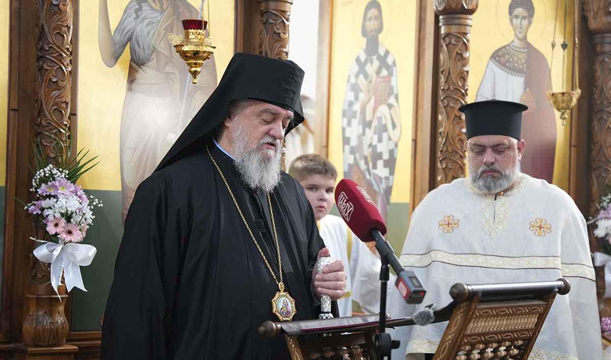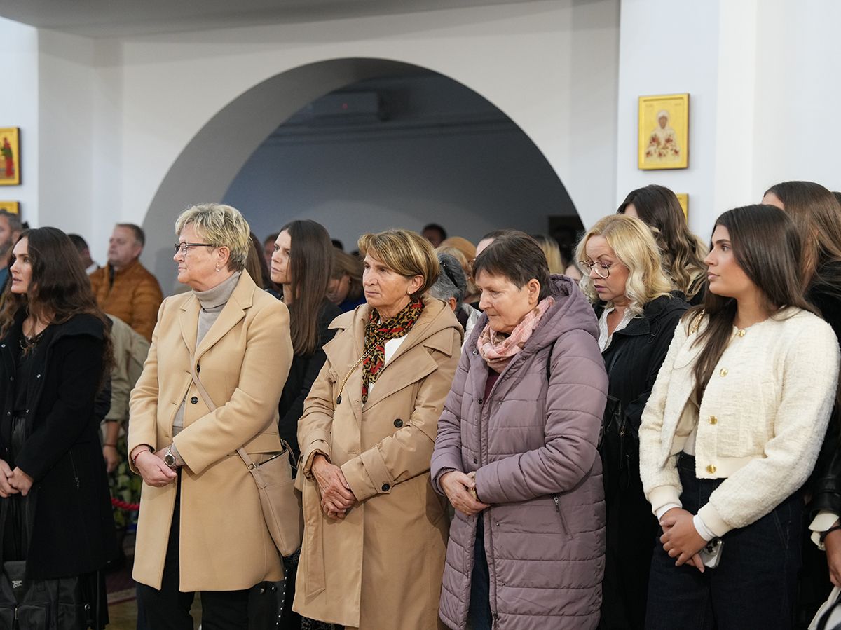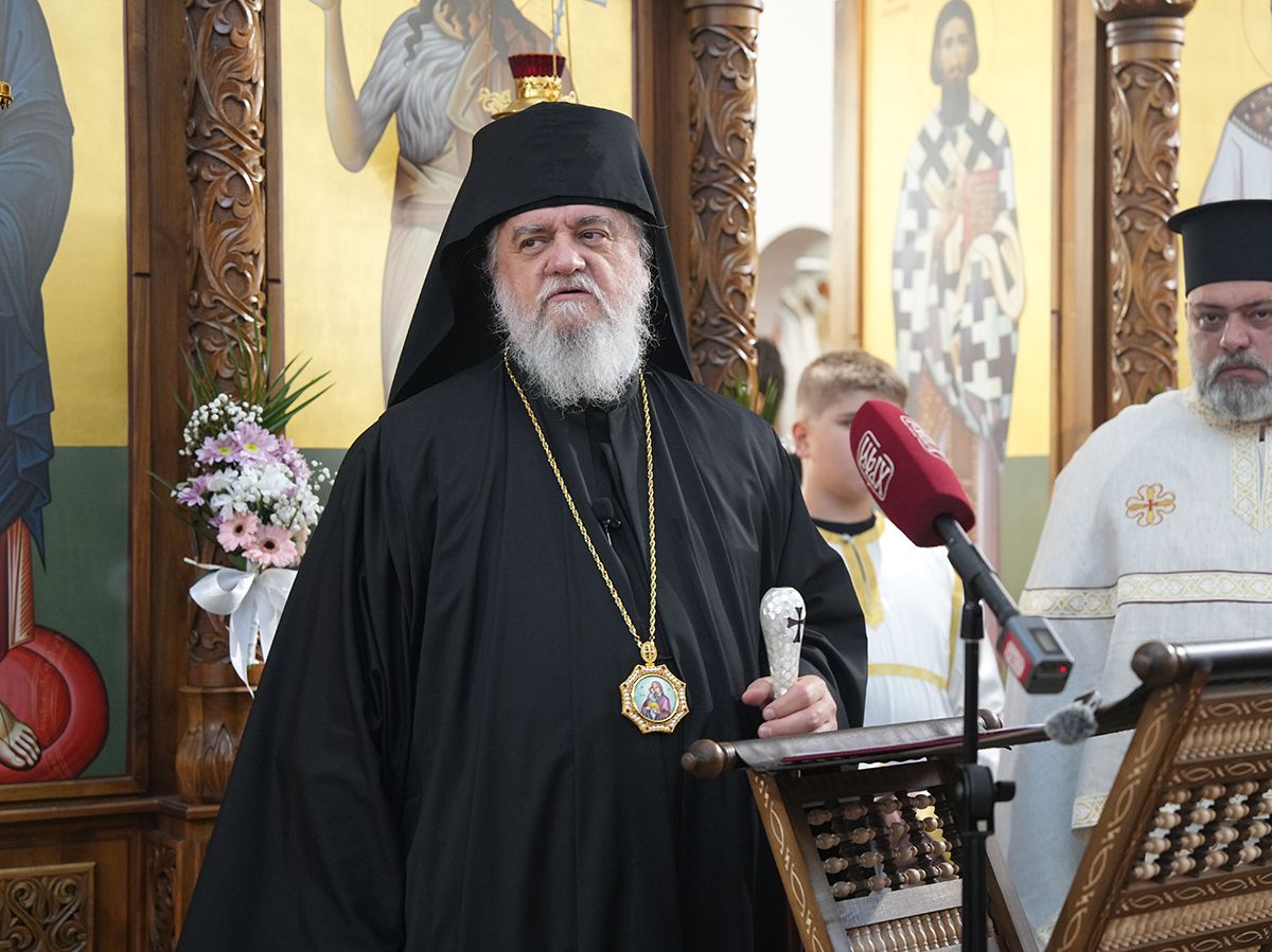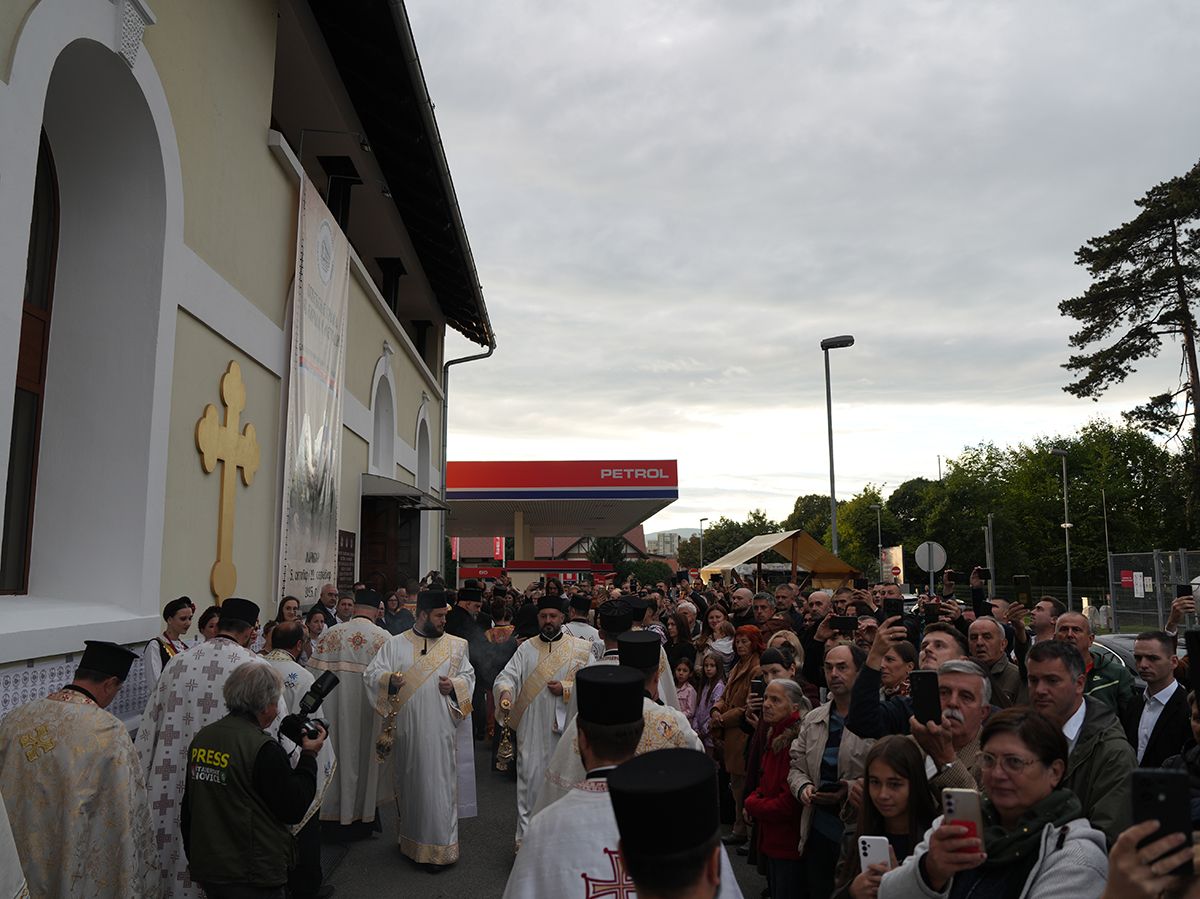 – Обележени и обликовани Христом, обликовани смо Његовом заповешћу, најпре и пре свега заповешћу о љубави читавим својим бићем према Богу, али и према другим људима, као према самом себи. Ко усвоји тај принцип за темељ свог постојања тај нема проблема, зато што нема проблема са Оцем нашим, нема проблема са Богом. Љубећи Бога, све што је Божје постаје и њнаше, а Он је Творац свега што се види и не види, а изнад свега круне творевине која се зове човек. Према томе, љубећи Бога сваки човек постаје наш ближњи, независно од посебности које носи на себи, од печата који носи на себи. Посебности и различности нису дате да би биле повод за конфронтацију, за неспоразуме и, не дај Боже, за непријатељства. Посебности постоје као посебни дарови које је неко добио као појединац или као заједница да би умножавајући те дарове могли да остваре једини, највећи и најважнији дар, а то је љубав. Кроз тај дар, кроз свој посебан печат, уздарје дарујемо себе другоме, кроз тај дар упознајемо другога и волимо другога. Посебности јесу дар да бисмо кроз њих нашли пут ка Христу, али и пут једни ка другима. Нека Бог да да и сутра, служећи свету Литургију, у љубави и радости осветимо овај храм и да он буде место сусретања, нашег међусобног и свих заједно, са Богом и са свим људима добре воље. Нека сте благословени сви овде сабрани, али нека су благословени и сви људи који живе у овом дивном граду и у овој честитој, дивној и благословеној земљи Божјој сада и увек и у векове векова. Амин.