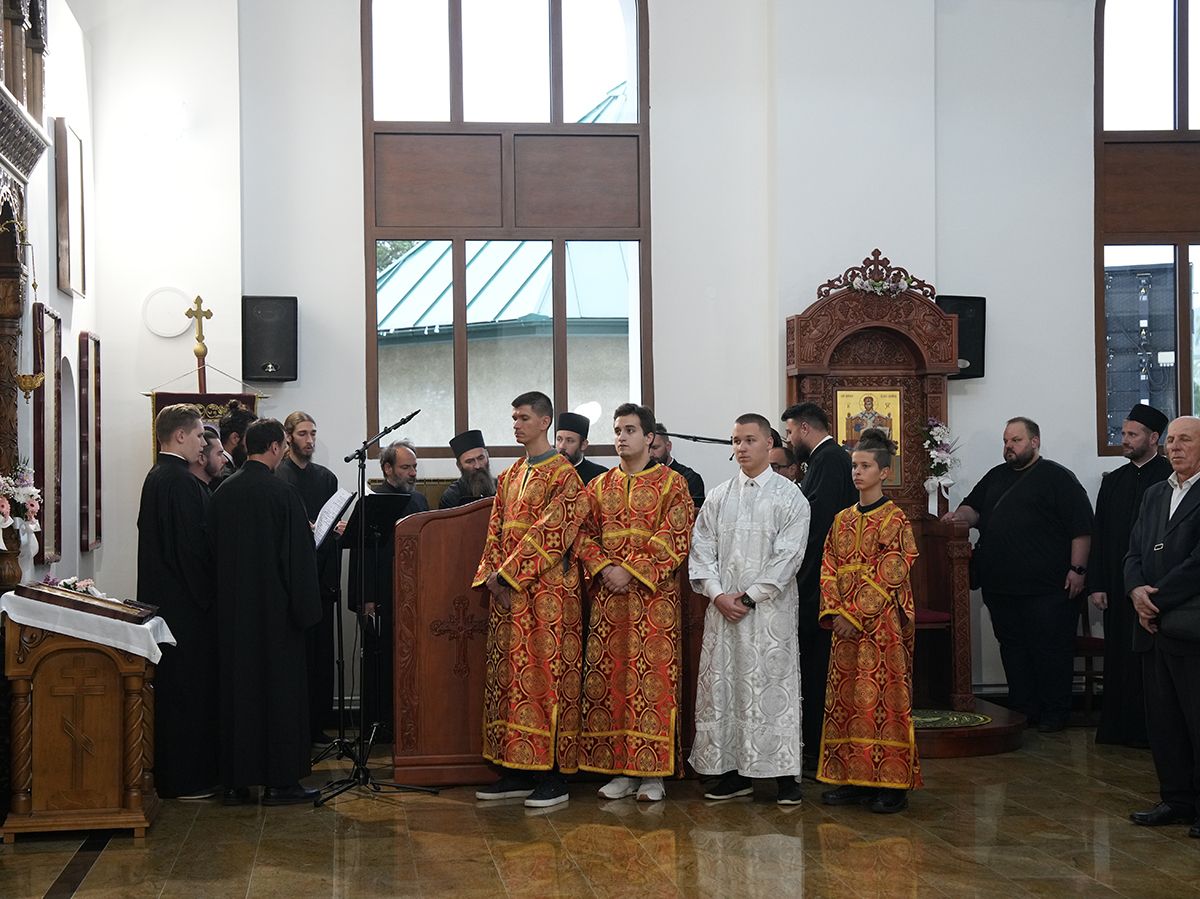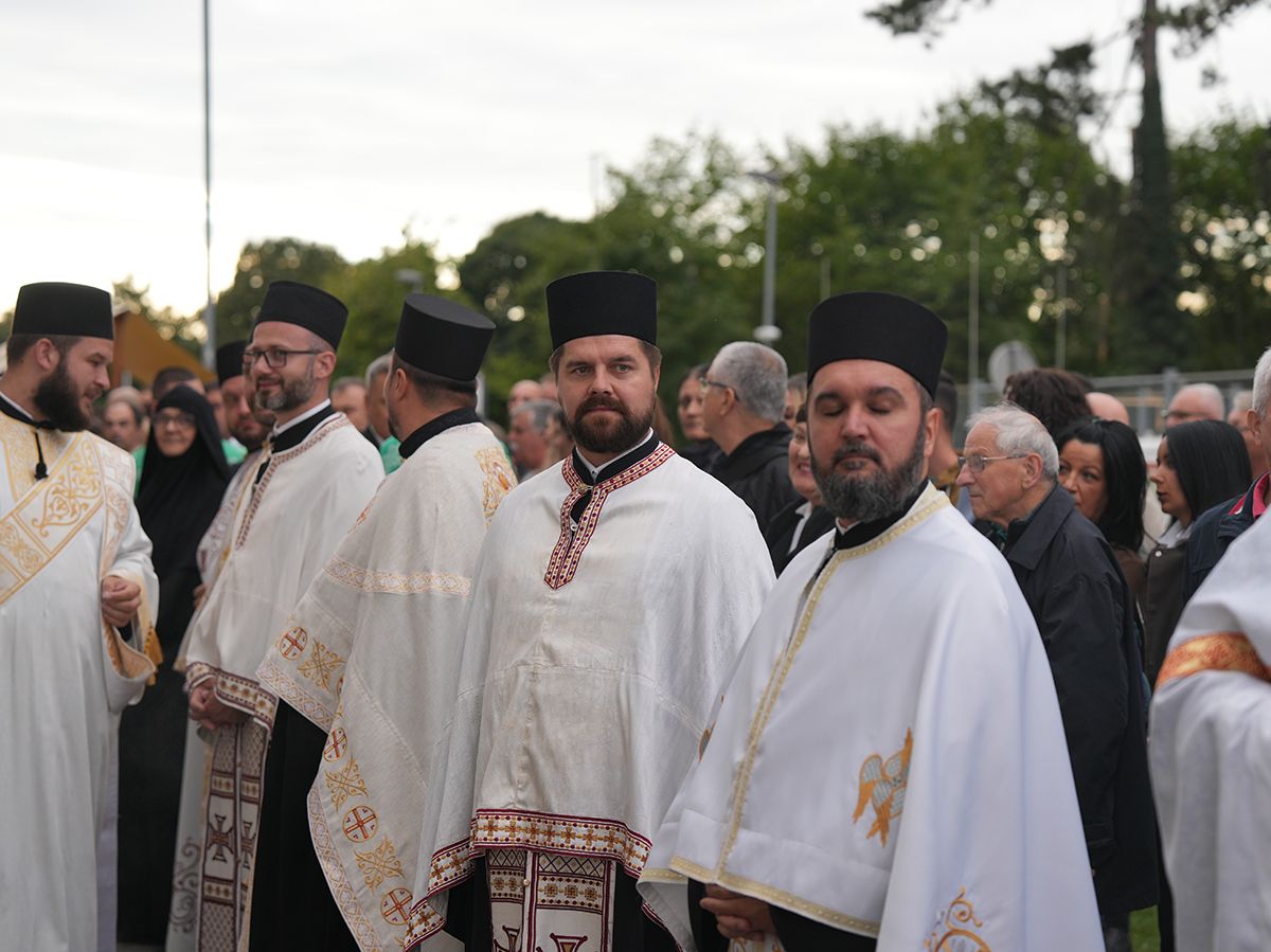 Свечаној доксологији у храму, који ће ујутру бити освећен руком Светејшег Патријарха српског, присуствовало је неколико стотина верних, као и преосвећена господа епископи славонски и пакрачки Јован, викарни јенопољски Никон и буеносајрески и јужноамерички и администратор загребачко-љубљански Кирило, који је и упутио речи срдачне добродошлице предстојатељу Српске Православне Цркве.