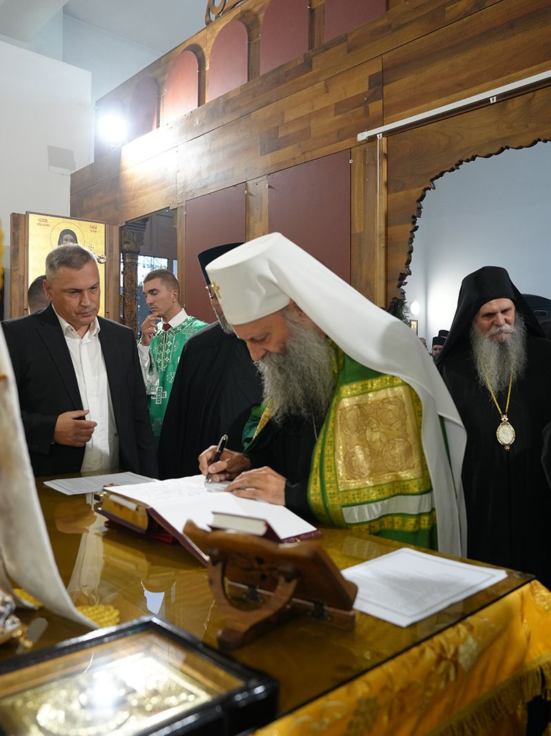 – И данас, то се јасно види, где год да смо се померили из простора своје Матице, прво што смо чинили то је да смо трагали за тим местом на којем ћемо подићи храм, место на којем ћемо се Богу обраћати за мир у нама, за мир међу нама и за мир у читавом свету. И где год то нисмо чинили, једноставно бришући печат по којем се препознајемо, ми смо избрисани – упозорио је Патријарх Порфирије и том приликом посаветовао сабране: