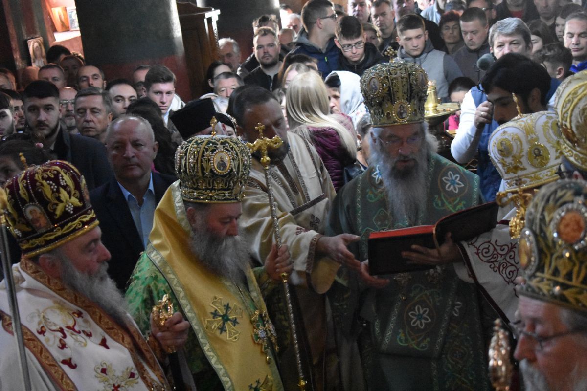 У току Литургије, на малом входу, Митрополит врањски г. Пахомије је одликовао, поводом педесет година од обнове Епархије врањске, више свештенике за њихову ревност служби у винограду Господњем. Правом ношења напрсног крста одликовани су протојереји Ненад Митић, Стојче Т. Петковић, Ранђел Величковић, Далибор Томић и Бобан Илић. Чином протојереја одликовани су протонамесници Ненад Тасић, Миодраг Драшко, Мирослав Петковић, Синиша Бошковић и Љубиша Врачевић. Достојанством протонамесника одликовани су јереји Александар Митровић, Немања Милић, Далибор Јовић, Александар Крстић, Александар Милошевић, Дејан Величковић, Душан Џонић, Срђан Ристић и Гојко Остојић. У чин протођакона унапређен је ђакон Миодраг Наумовић.