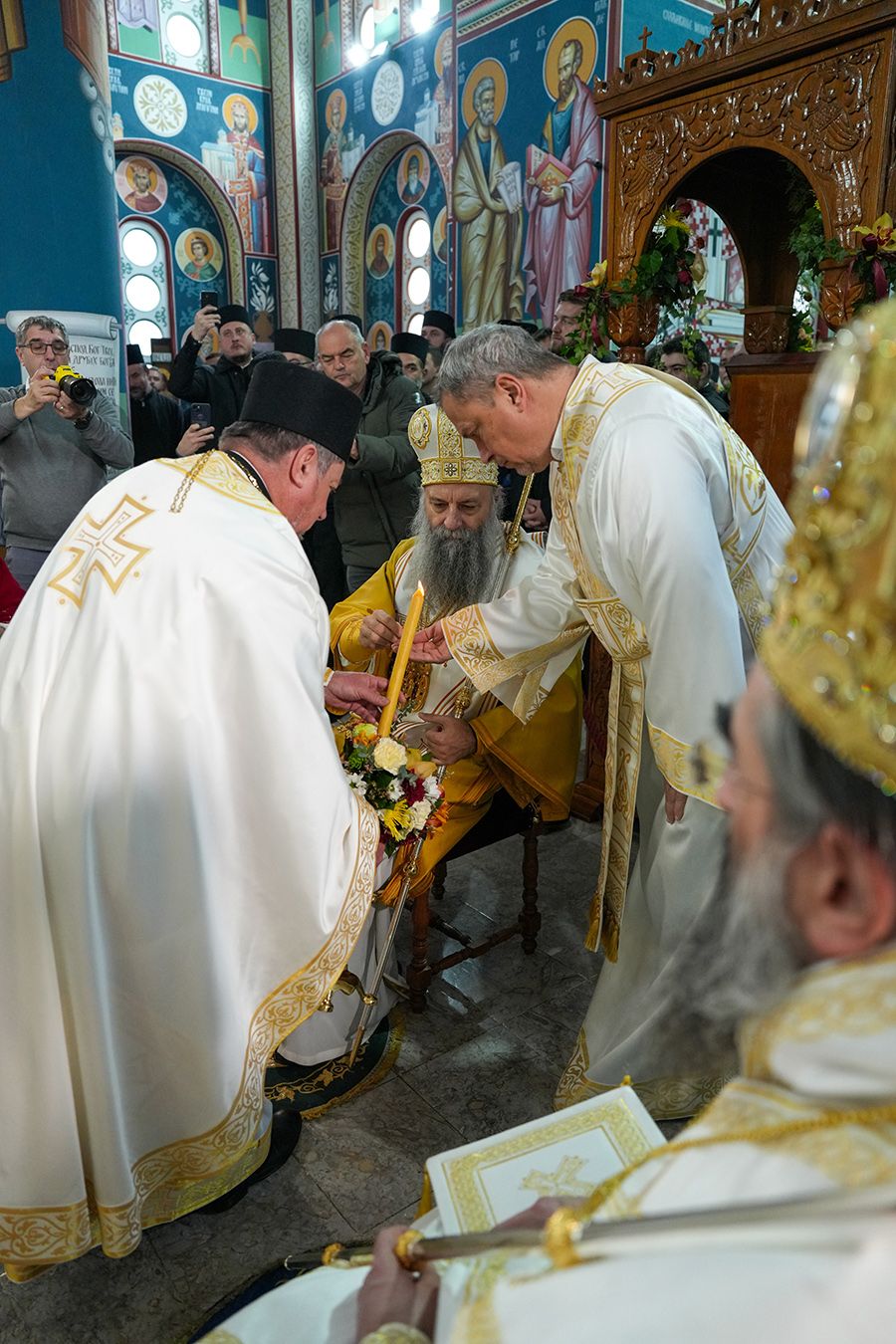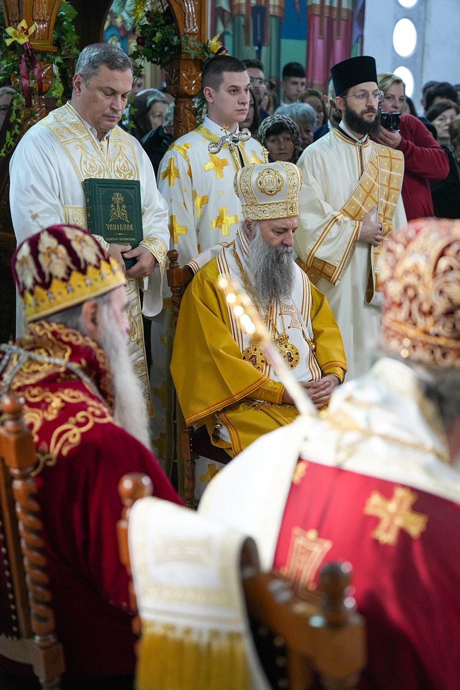 – Свештеник отуда, браћо и сестре, има велику одговорност. За њега сви треба да се молимо као Црква, али и он, са Христом, благодаћу, снагом и силом Христовом, да се распиње за своје стадо, да му мера буде Христова реч, да му мера буде сам Господ. Није позван да буде нити револуционар, нити социјални радник, нити реформатор друштвени, политички или било какав други, него је позван да служи Богу служећи народу Божјем, а све ово остало, иако је потребно да има печат свештеника и печат Цркве, доћи ће у своје време на своје место. На првом месту свештенику је Христос и Христова служба! Не сме да се деси да било шта друго заузме то место. Ако се деси, онда је – то треба да знају свештеници и будући свештеници – промашио и изневерио ону службу за коју је постављен – нагласио је Светејши Патријарх г. Порфирије.
