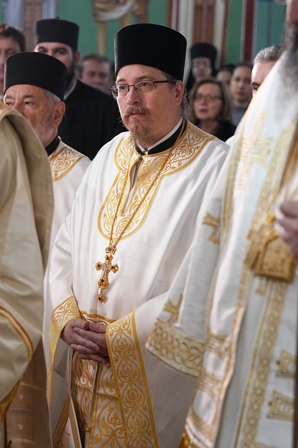 Саслуживали су и: високопреподобни архимандрити Нектарије - главни секретар Светог Архијерејског Синода, Данило - директор Патријаршијске управне канцеларије, Димитрије - игуман манастира Тумане, и Прокопије из Антиохијске Патријаршије; протојереји-ставрофори Драган Протић - бивши ректор Богословије Светог Саве у Београду, Зоран Крстић - ректор Богословије Светог Јована Златоуста у Крагујевцу, и Јован Милановић - ректор Богословије Светог Арсенија Сремца у Сремским Карловцима; протојереји Благоје Крстић - ректор Богословије Светог Петра Цетињског на Цетињу, Дејан Крстић - ректор Богословије Светих Кирила и Методија у Нишу, проф. др Србољуб Убипариповић - декан Православног богословског факултета у Београду, и Дејан Марковић - старешина Саборног храма у Крагујевцу; протођакони Радомир Врућинић - ректор Богословије Светог Саве у Београду, и Иван Гашић; као и ђакони Василије Перић и Милош Јаковљевић.
