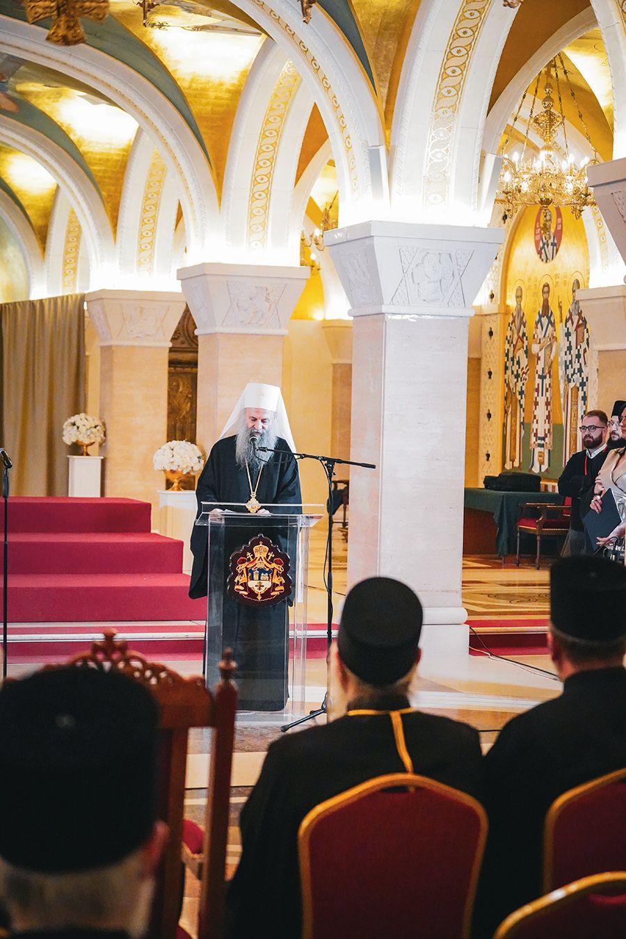 – Мало је догађаја и личности у историји света и човечанства о којима се може много и дуго говорити, а још је мање оних о којима се никада не може довољно и све рећи. За нас православне хришћане par excellence пример овога јесте Господ и Спаситељ наш Исус Христос – једино ново под сунцем и неисцрпни извор богатства, мудрости и тајни Божјих. Такви су још и сви они, који су у дубини својих срдаца чули Његов слатки глас, оставили свет, узели крст свој и пошли за Њим, а међу њима је и чудесна личност Светитеља Саве Немањића, у чијем очинском наручју смо се вечерас сабрали, да се загледани у његов благи лик, изнова поучимо и надахнемо његовим светим примером – поручио је Његова Светост Патријарх српски г. Порфирије на почлетку свечане академије.
