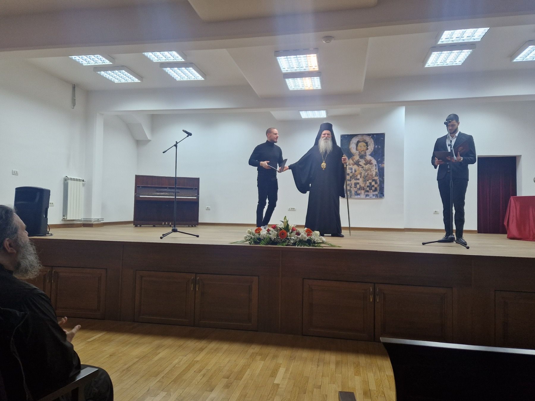 У знак захвалности за несебичну љубав и подршку народу на Косову и Метохији, митрополит Теодосије је уручио архијерејске грамате г. Ивану Купејанову и г. Петру Миленковићу.
