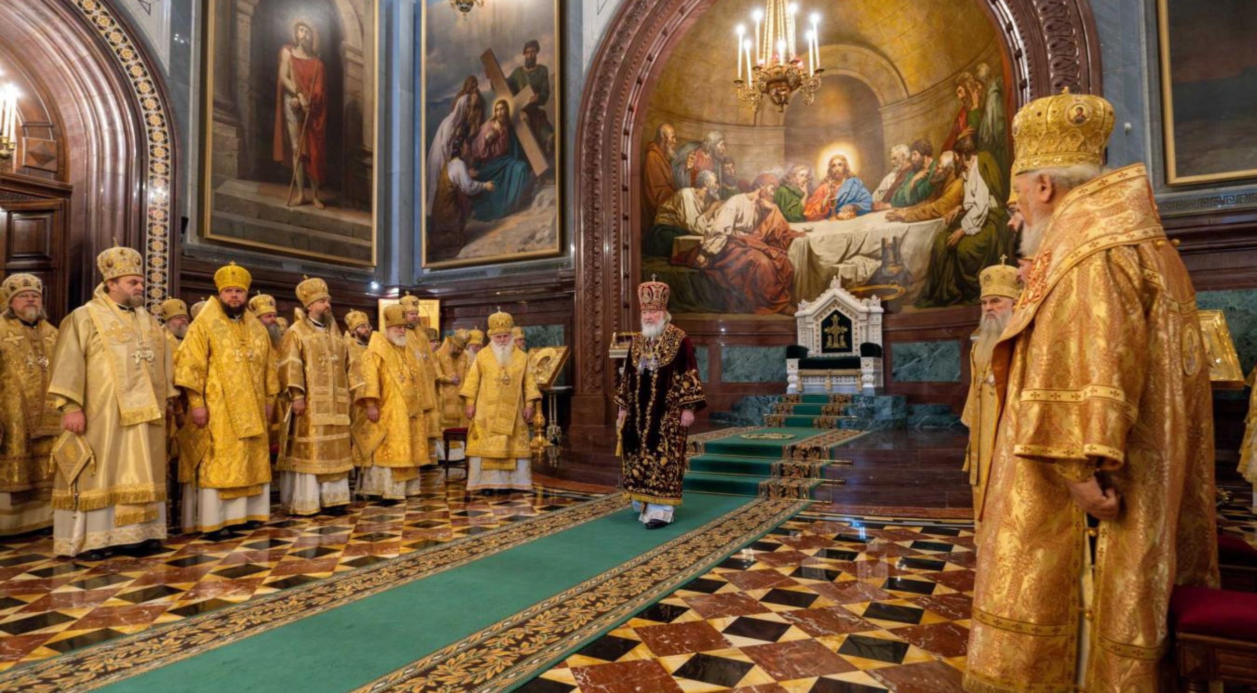 По окончању Литургије, Митрополит воскресенски г. Григорије је прочитао поздравно слово чланова Светог Синода Руске Православне Цркве упућено Његовој Светости Патријарху г. Кирилу са честиткама поводом седамнаесте годишњице устоличења. На дар Његовој Светости, Митрополит је предао икону Мајке Божје Одигитрије. Уследиле су поздравне речи и уручење црквених награда. Окупљенима се архипастирском беседом обратио и Његова Светост Патријарх г. Кирило, призивајући на све благослов Господњи.