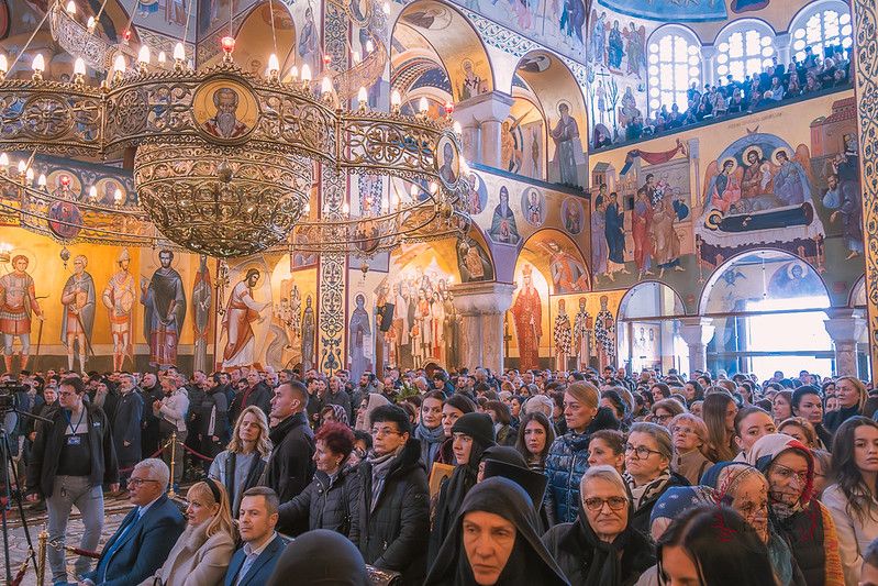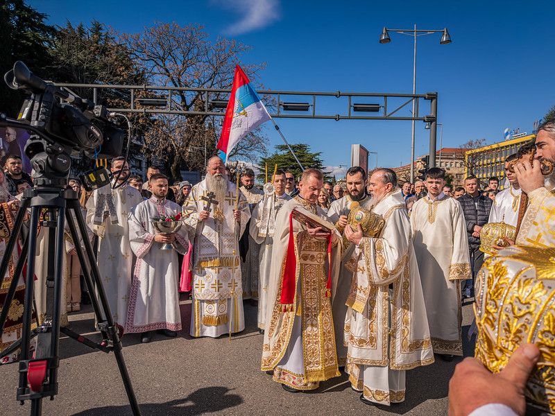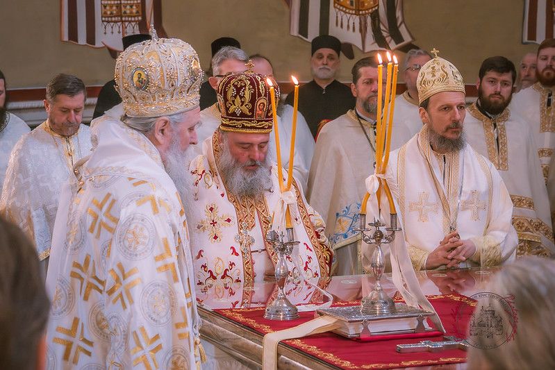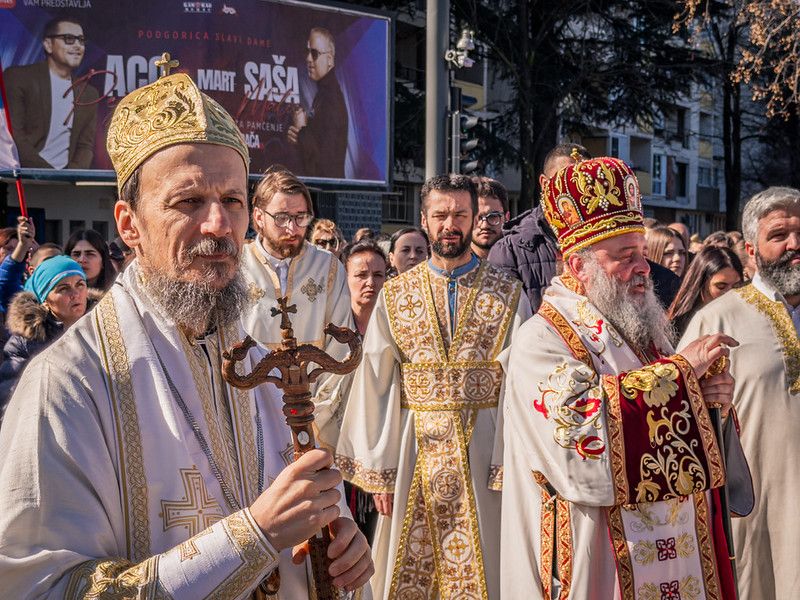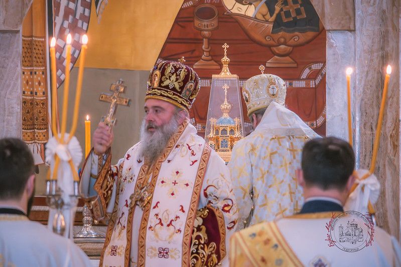 Свету Литургију у Саборном храму Христовог Васкрсења служио је Његово Високопреосвештенство Митрополит црногорско-приморски г. Јоаникије уз саслужење: високопреосвећене господе митрополита милешевског Атанасија, захумско-херцеговачког и стонско-приморског Димитрија, будимљанско-никшићког Методија и преосвећене господе епископа делчевско-каменичког Марка из Македонске Православне Цркве - Охридске Архиепиксопије и викарног диоклијског Пајсија; бројног свештенства, монаштва и верног народа.