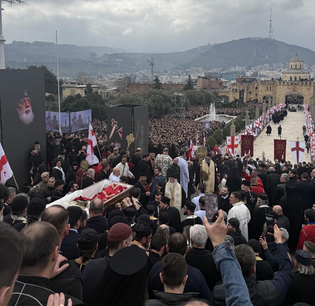Стотине хиљада верних сабрало се испред знамените Самебе, Саборне цркве Свете Тројице, грађене од 1989. до 2004. године на брду Светог Илије, да са вером у васкрсење и живот вечни испрати свог Патријарха који је Грузијском Црквом столовао скоро пола века.