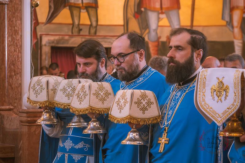 Саслуживали су: Високопреосвећени Митрополит црногорско-приморски г. Јоаникије, Преосвећени Епископ диоклијски г. Пајсије, протојереј-ставрофор Далибор Милаковић, протојереји Ненад Радаковић, Остоја Кнежевић, Миладин Кнежевић, Бранко Вујачић, Никола Пејовић и Игор Балабан, као и ђакони Душан Пауновић, Ведран Грмуша и Огњен Боричић.