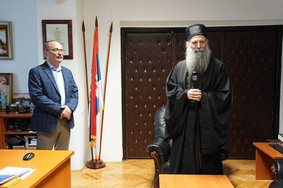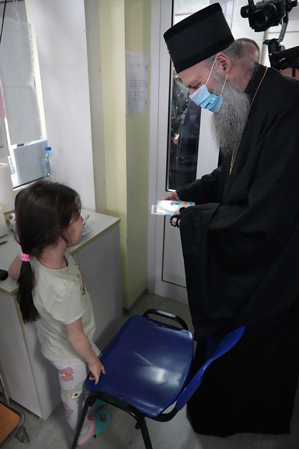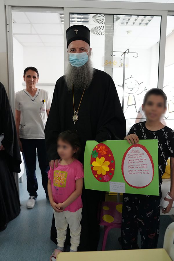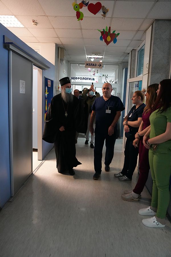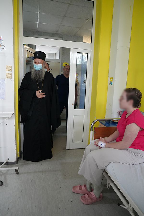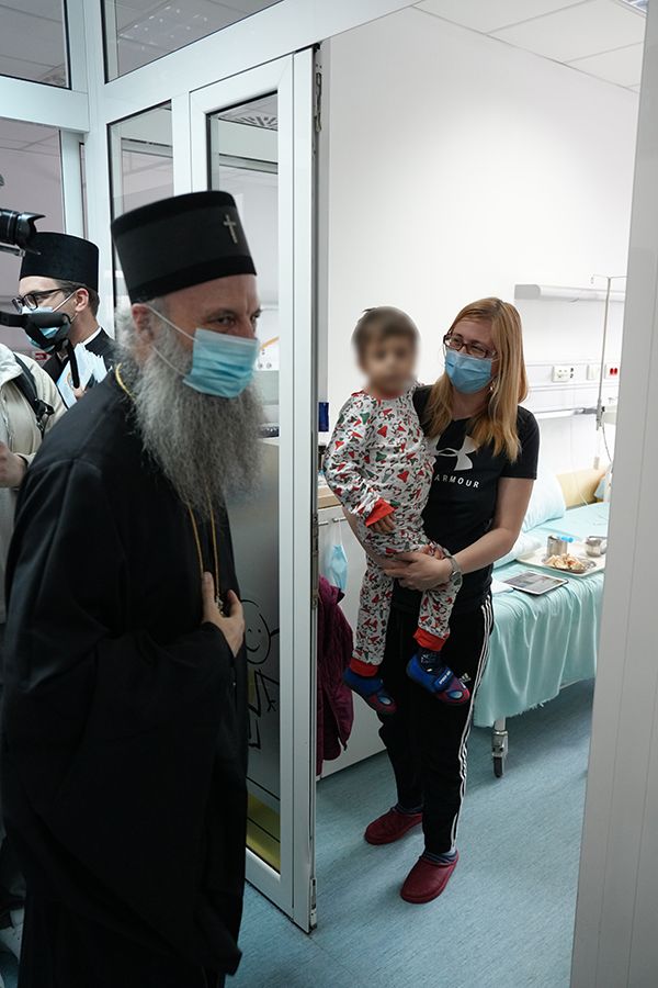 Његова Светост Патријарх српски г. Порфирије, заједно са протојерејом Ђорђем Стојисављевићем, шефом Кабинета Патријарха српског, посетио је данас Универзитетску дечју клинику у Београду.