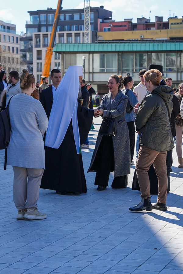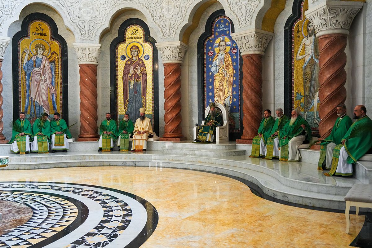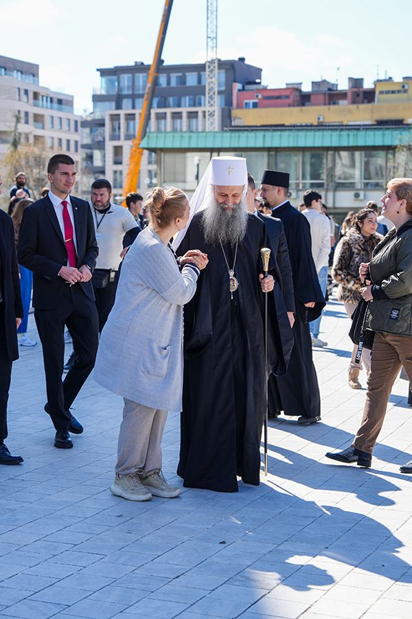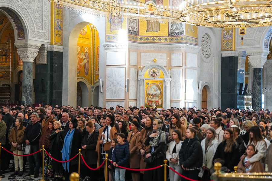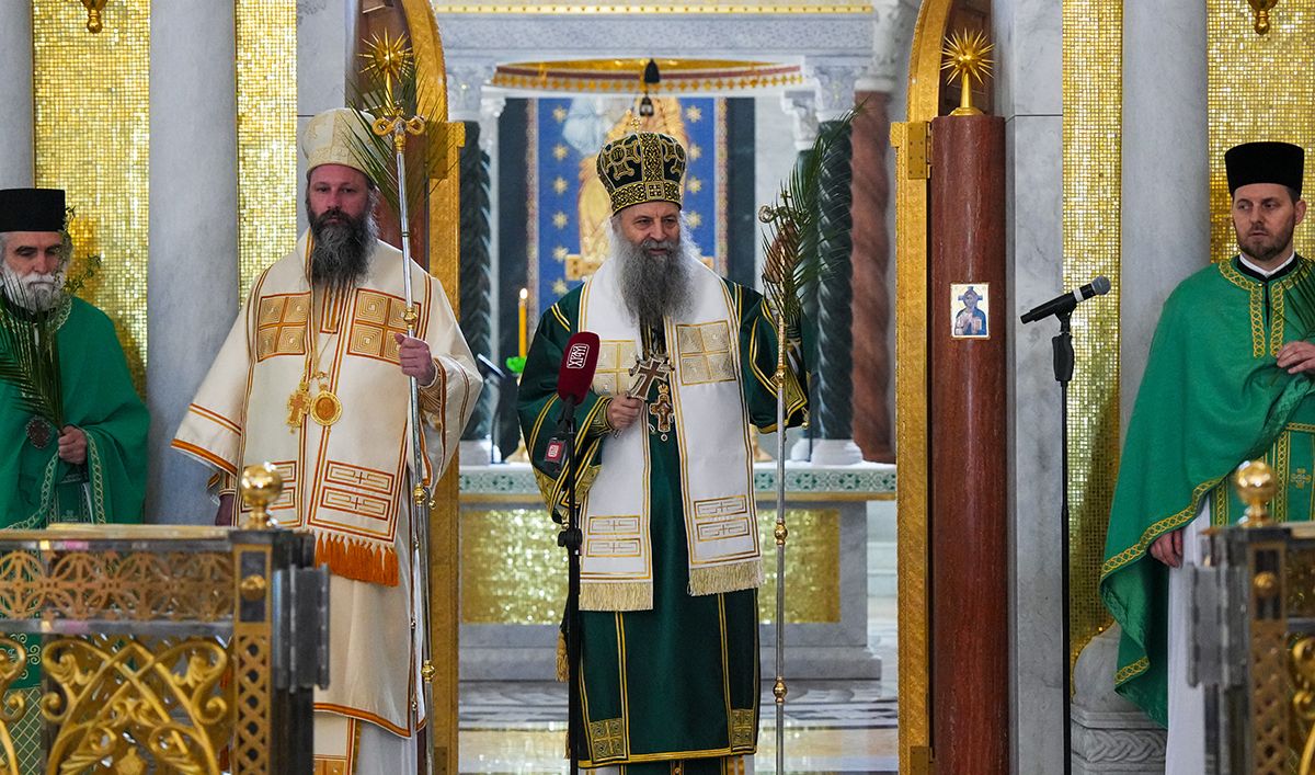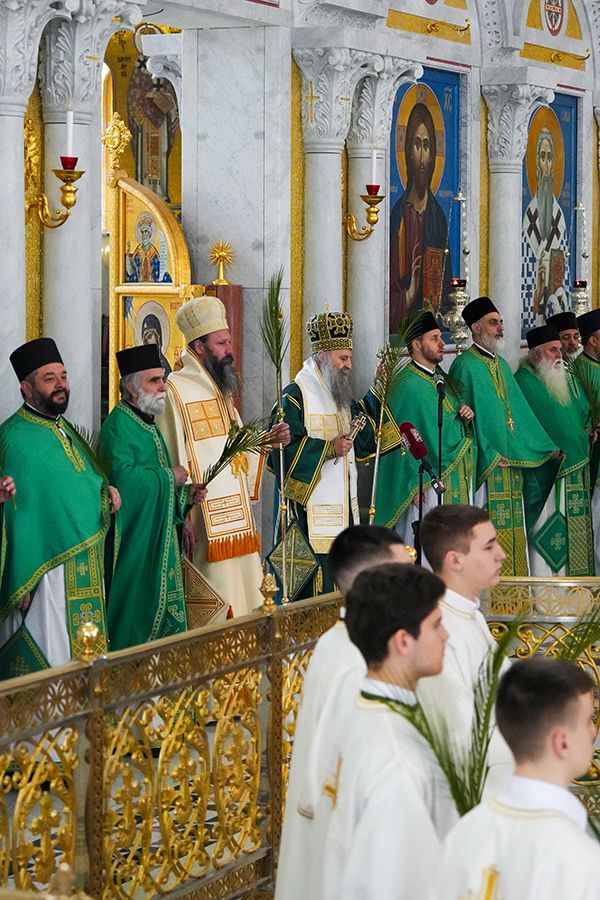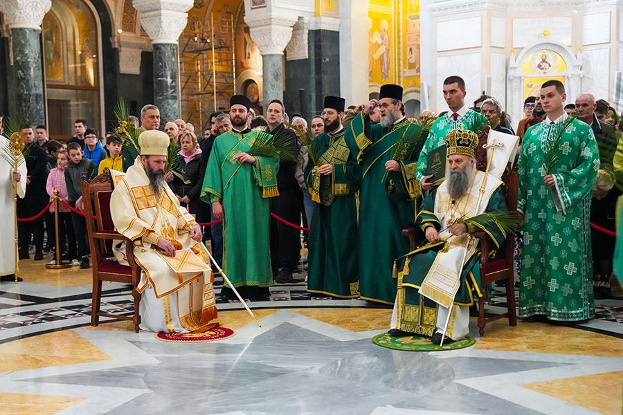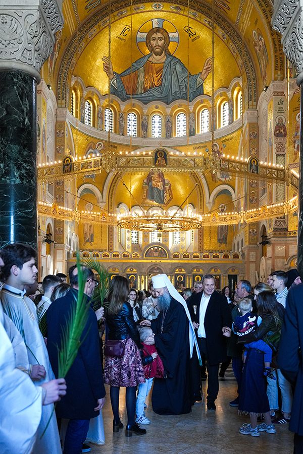 – Ево, праћен мноштвом људи Господ иде у свети град Јерусалим и то иде на магарету, хотећи да покаже да Његово царство није одавде, него да је то царство Божје, да је царство Његово царство одозго и оно силази међу нас да бисмо ми могли да постанемо грађани и житељи тог царства. Силази међу нас тако што је Господ постао све што ми јесмо, поистоветио се са нама у свему и по свему, осим у греху. Стога иде у Јерусалим да се са нама поистовети и у смрти, да би ту смрт разорио, да би уништио највећег и последњег нашег непријатеља, да би нам даровао живот вечни загрливши нас и чинећи да ми будемо део Његовог тела, део Његове Цркве, чинећи нас да будемо део Његовог Царства – део је литургијске беседе Његове Светости Патријарха српског г. Порфирија, одржане на Цвети у заветном храму српског народа на Врачару.
