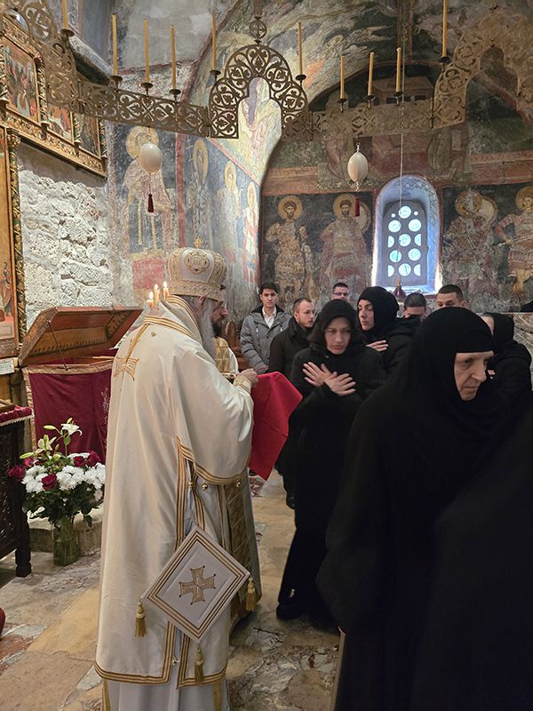 – Смрт Христова је истовремено повезана са грехом и са ђаволом. Зато је Господ, сишавши у Ад, сишао у сам центар нашег непријатеља и изнутра га победио не због тога што је то Њему било потребно – јер је Он Господар историје, Господар живота и смрти – него зато што је то било потребно нама, људима, сваком од нас, сваком човеку. Нека смо благословени и на здравље и спасење молитва – истакао је Патријарх српски г. Порфирије, који је јутрос началствовао светом Литургијом у древном седишту архиепископа и патријараха српских, уз молитвено учешће игуманије Харитине, сестринства и благоверног народа благодарне Метохије.