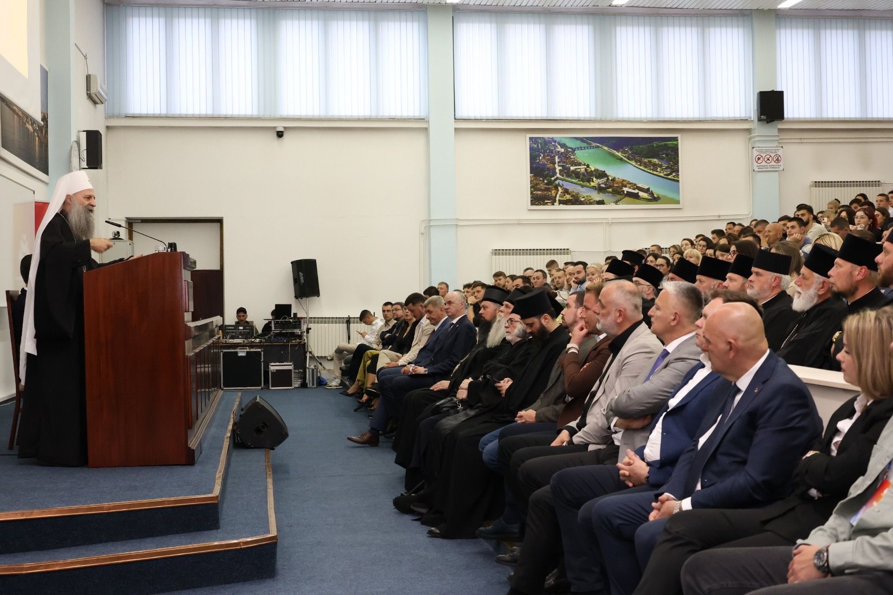 Предавање је одржано у оквиру обележавања празника Васкрсења Господњег и окупило је велики број младих људи, који су са пуном пажњом пратили излагање Патријарха српског Порфирија.