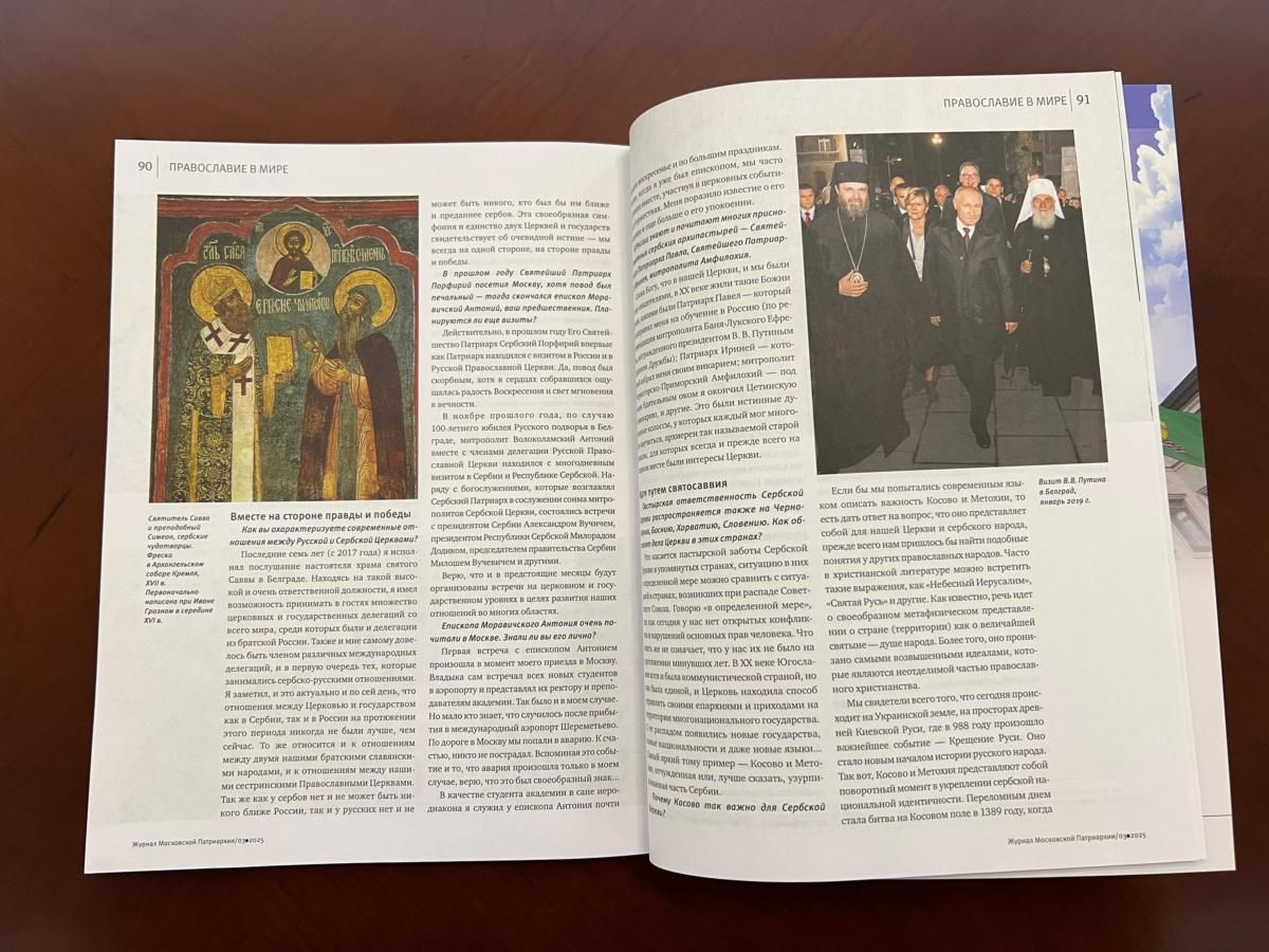 Најупечатљивији моменат у протеклих годину дана, колико се налазим на месту старешине Подворја Српске Православне Цркве у Москви, свакако је било опело и сахрана мог претходника, блаженопочившег Епископа моравичког Антонија (Пантелића). Чињеница да су служењем свете Литургије у храму Христа Спаситеља у Москви началствовала два патријарха, руски Кирило и српски Порфирије, много говори о брижним и племенитим односима наша два братска православна народа. Величанствени амбијент спомен-храма руске славе и херојског подвига, анђеоско појање Патријаршијског хора катедралног храма, искрене молитве окупљене пастве – све то ме је потакло да осетим сву красоту „Трећег Рима“. Оно што сам тада спознао, а у што сам чврсто и сада убеђен јесте да је Бог са нама, подједнако и у радости и у невољи. У томе се и огледа сва лепота Православља и јединство наших словенских народа.