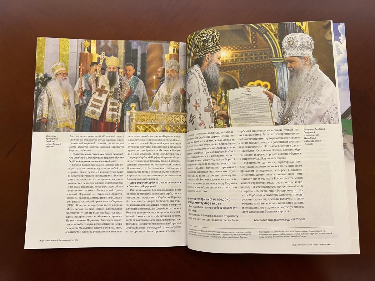 - Сваки раскол (шизма) у Цркви, као што и сама реч каже, представља цепање ризе Господње и, као такав, неминовно са собом носи катастрофалне последице. У историји хришћанства сусрећемо поприличан број раздора од којих многи никада нису били превазиђени. Када је у питању, сада већ зацељени раскол са Македонском Православном Црквом – Охридском Архиепископијом важно је напоменути како он није био исти, па ни сличан расколу до ког је дошло на тлу Украјине („ПЦУ“). Па ипак, без обзира на то што су клирици Македонске Православне Цркве поседовали апостолско прејемство, то им није дало за право да слободно могу остварити евхаристијско јединство са другим Православним Црквама. Захваљујући одважности нашег Патријарха, као и трезвености клира у Северној Македонији, након више од пет деценија напокон је било успостављено канонско јединство, чиме је Македонска Православна Црква уписана у диптих канонских помесних Православних Цркава. Врхунац јединства било је служење Литургије помирења у Саборном храму Светог архангела Михаила у Београду 5. јуна 2022. године, када је Његова Светост Патријарх српски Порфирије уручио Митрополиту скопском Стефану томос којим се потврђује аутокефалност Македонске Православне Цркве. Присећајући се поменутог богослужења, слободно могу да кажем како сам се осећао као да сам у неком другом, паралелном свету, испуњеном блаженством, миром и спокојем.