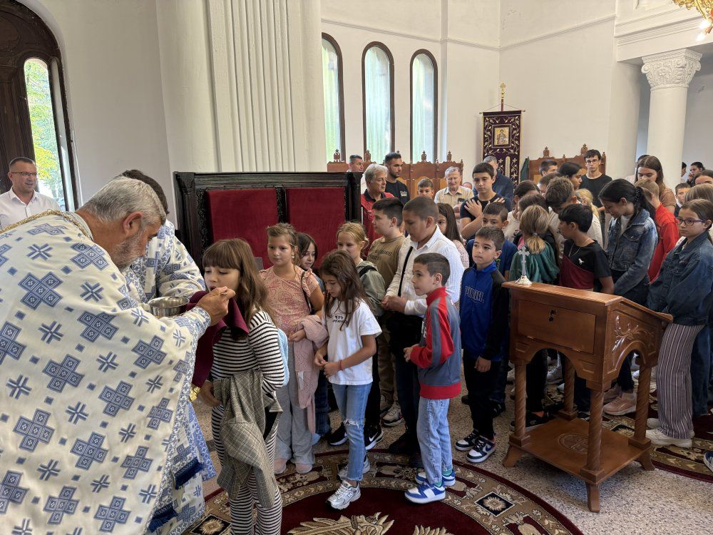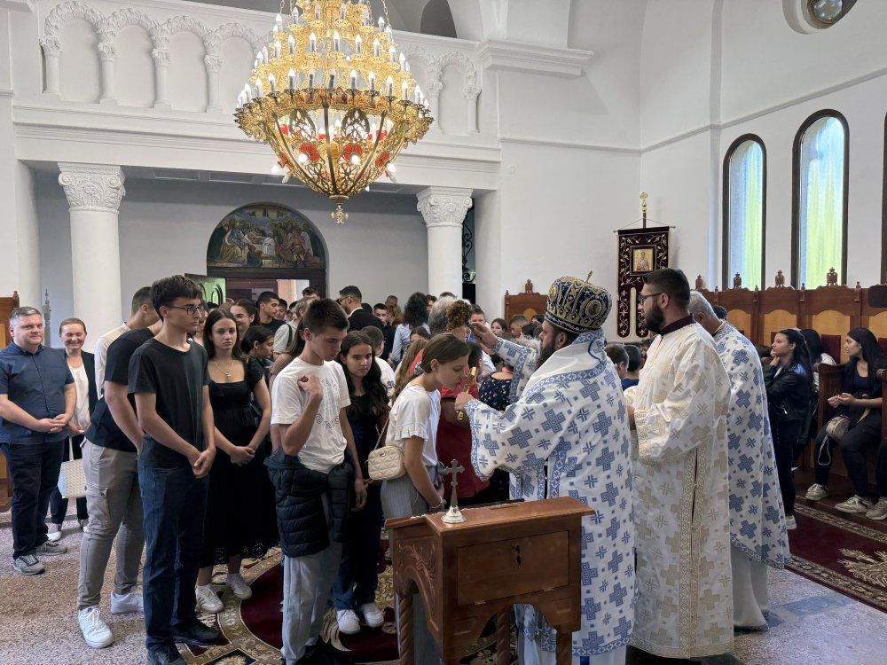 На крају свете Литургије призвали смо благодат Светог Духа за почетак новог школског лета, молећи се да Господ свима вама подари мудрост у стицању знања које вас неће надимати него усавршавати у науци и духовном животу. Молимо се и молићемо се да увек будете добри људи, да се изграђујете на добро, што и треба бити основни задатак образовања. Кроз учионицу пролазимо да бисмо научили да поштујемо једни друге, да волимо једни друге и да поштујемо своје родитеље и наставнике. Тако се гради једно друштво, заједница се гради у духу поштовања. Видимо ово још од старине, откако је нашег народа, кад год је школа образовала такве генерације које ће поштовати своју школу, родитеље и своје наставнике, онда је то било благословено друштво и благословена заједница. То је Светосавска заједница која је знала да на првом месту треба бити Бог, а онда све друго на том темељу.