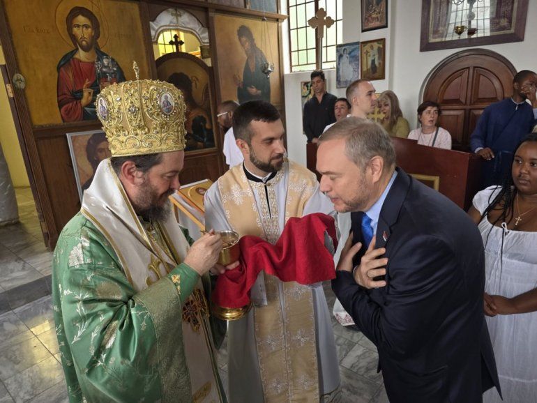 На позив Његове г. Саше Марта, ванредног и опуномоћеног амбасадора Републике Србије у Јужноафричкој Републици, Његово Преосвештенство Епископ липљански г. Доситеј, изасланик Његове Светости Патријарха српског Порфирија, присуствовао је 18. октобра 2025. године пријему у Амбасади Републике Србије у Преторији, који је приређен поводом предаје акредитива председнику Јужноафричке Републике г. Сирилу Рамафоси. Том приликом владика Доситеј је разговарао са знаменитим Србима који живе и раде у тој земљи.