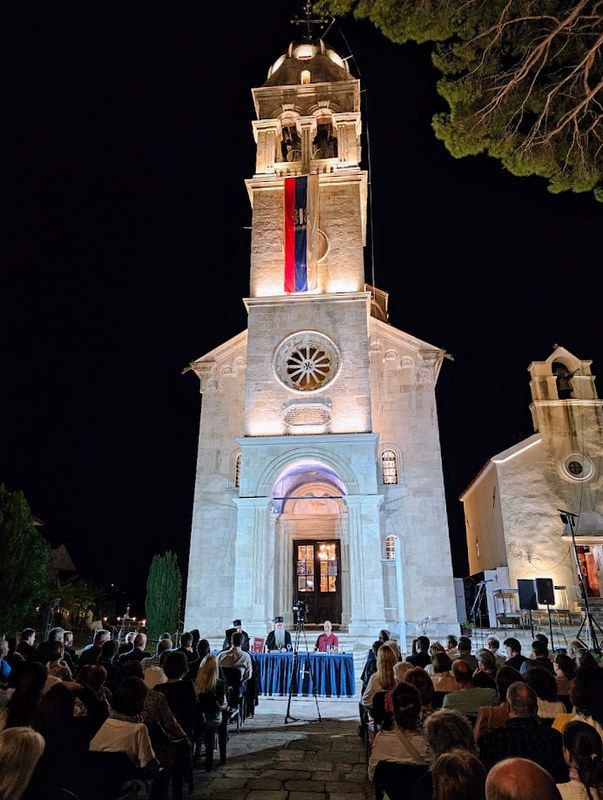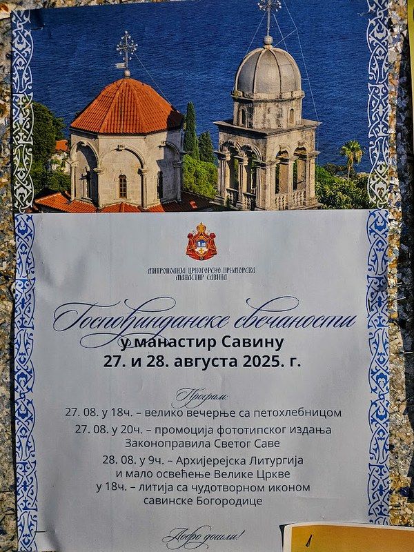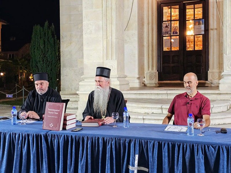 Његово Високопреосвештенство Митрополит црногорско-приморски г. Јоаникије је говорио 27. августа 2025. године, у навечерје Велике Госпојине, на представљању фототипског издања „Законоправила Светог Саве - тврдошко-савински препис“ у порти манастира Савине.